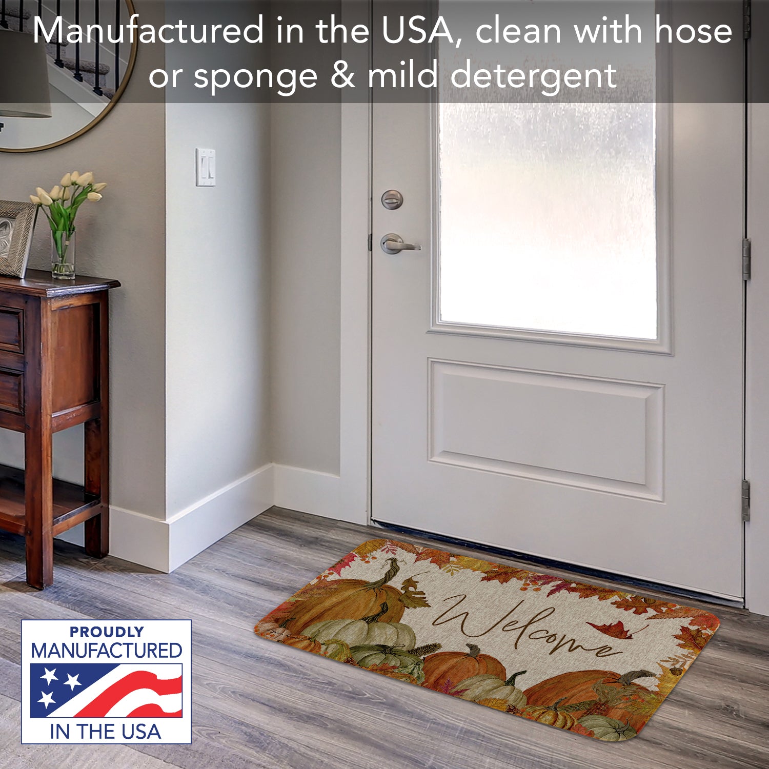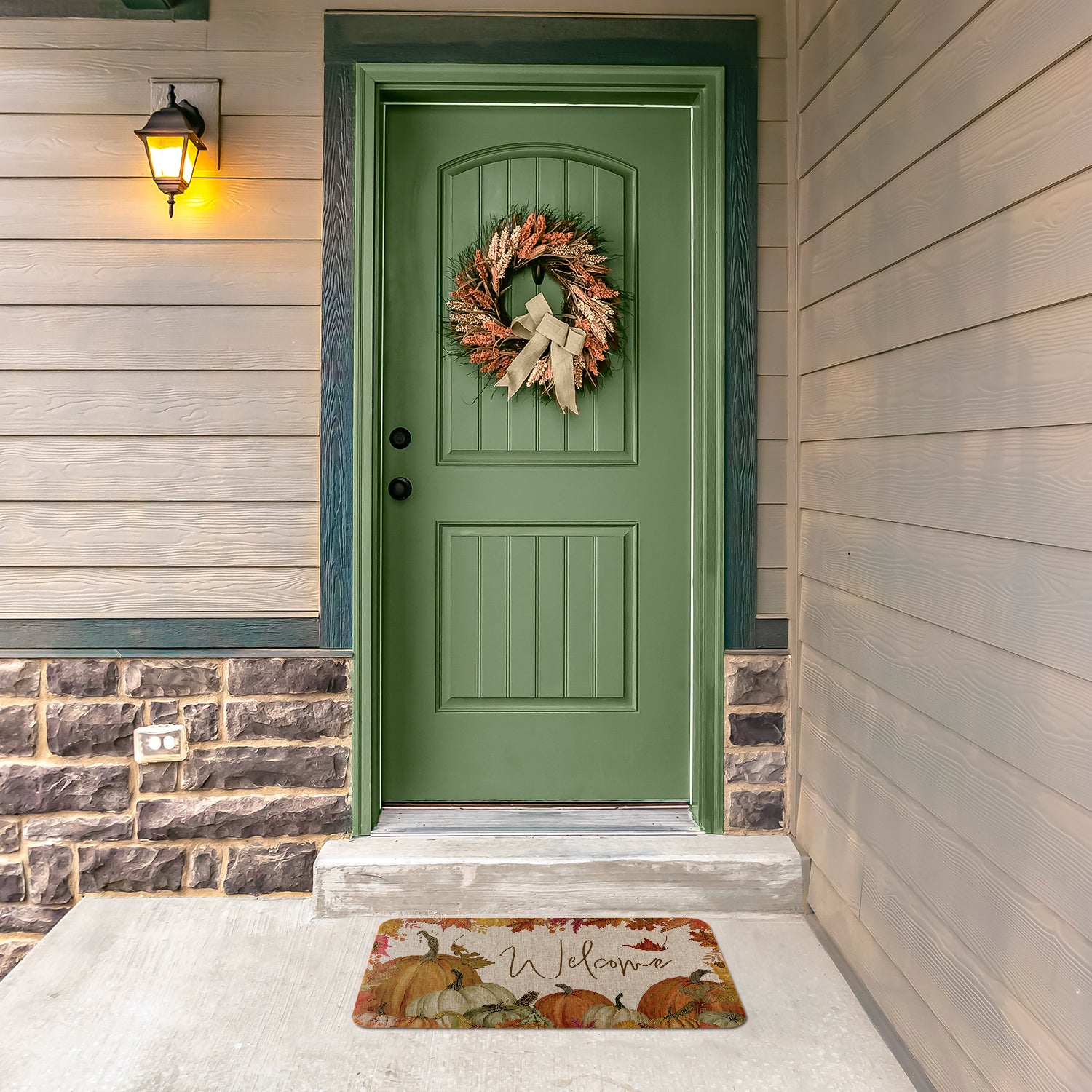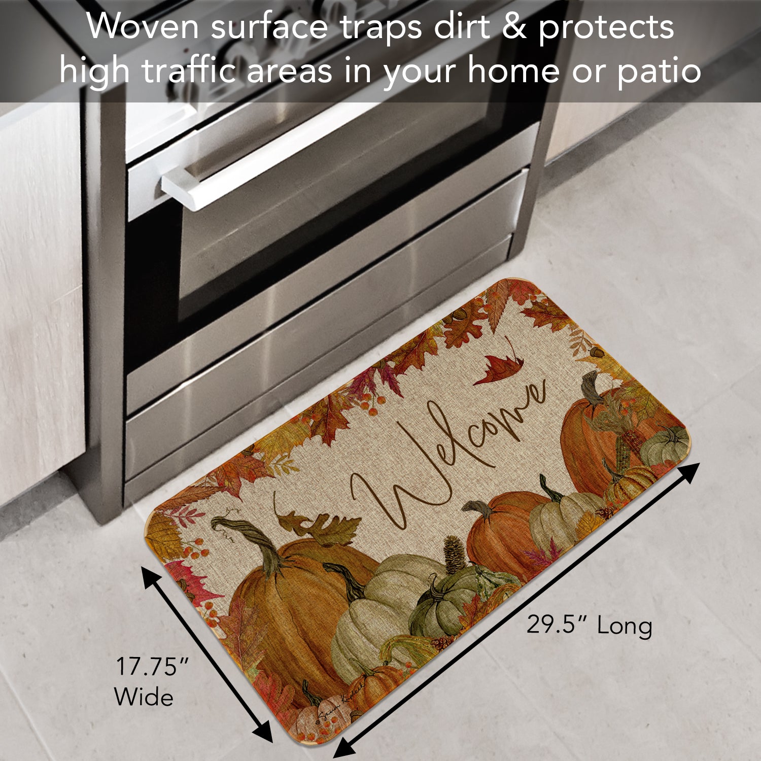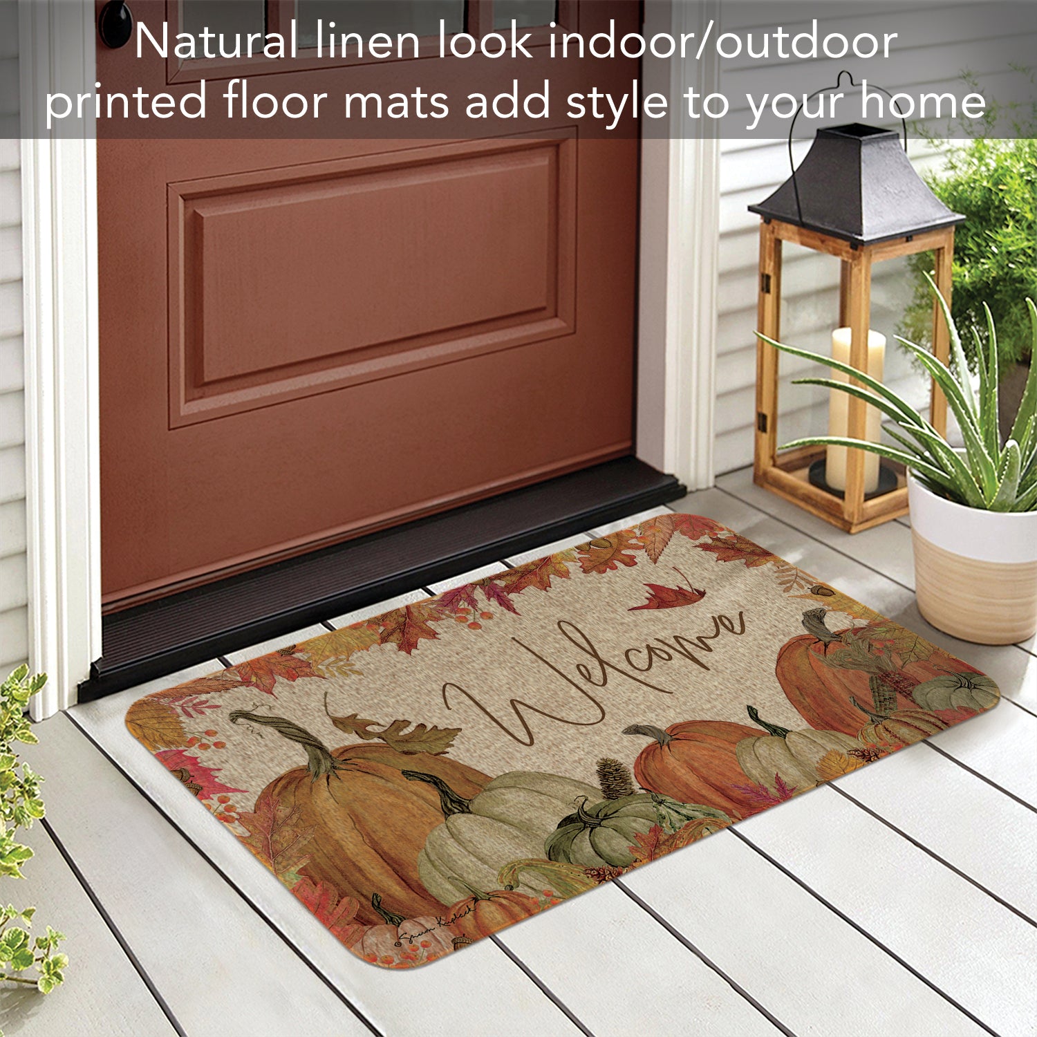 Fall Pumpkin Welcome Decorative Indoor/Outdoor Natural Linen Look Floor Mat 29.5” x 17.75”