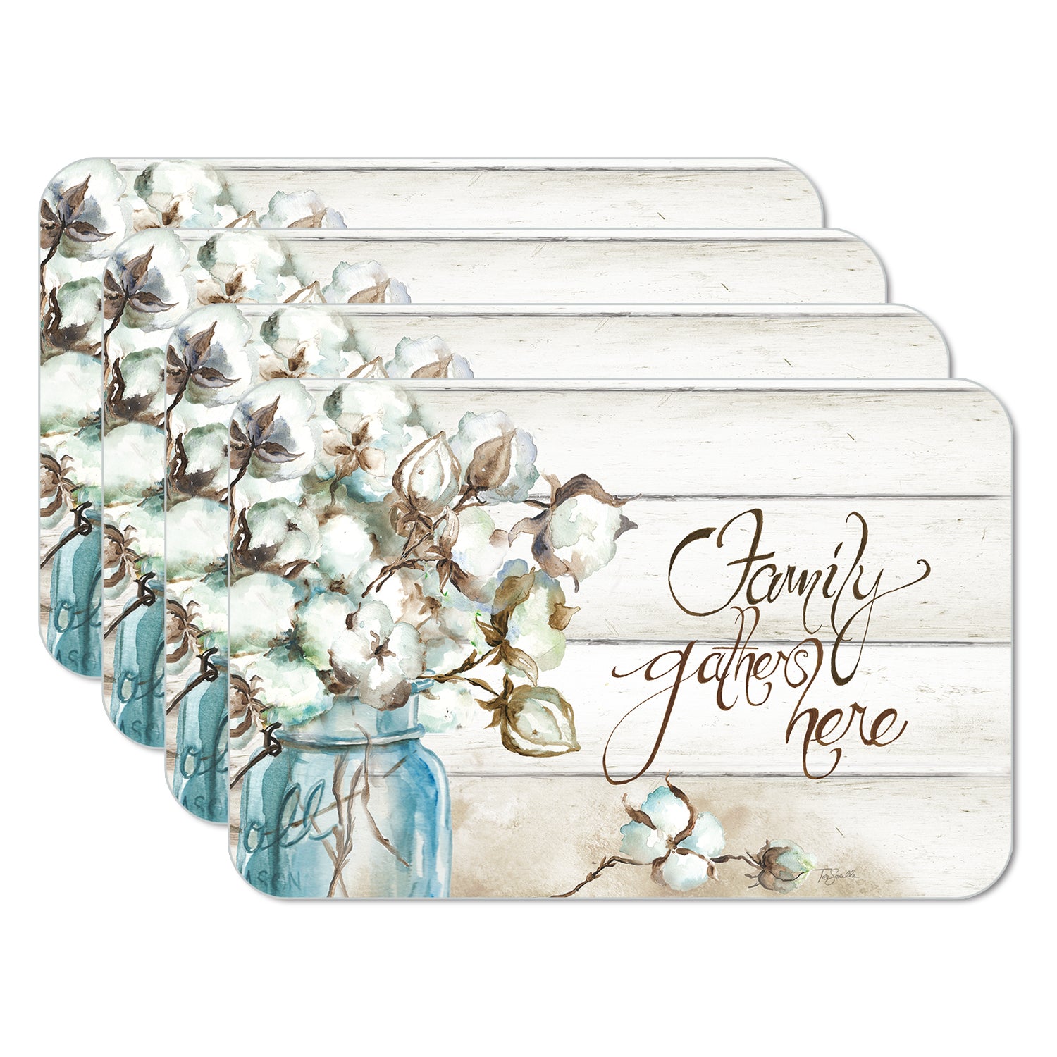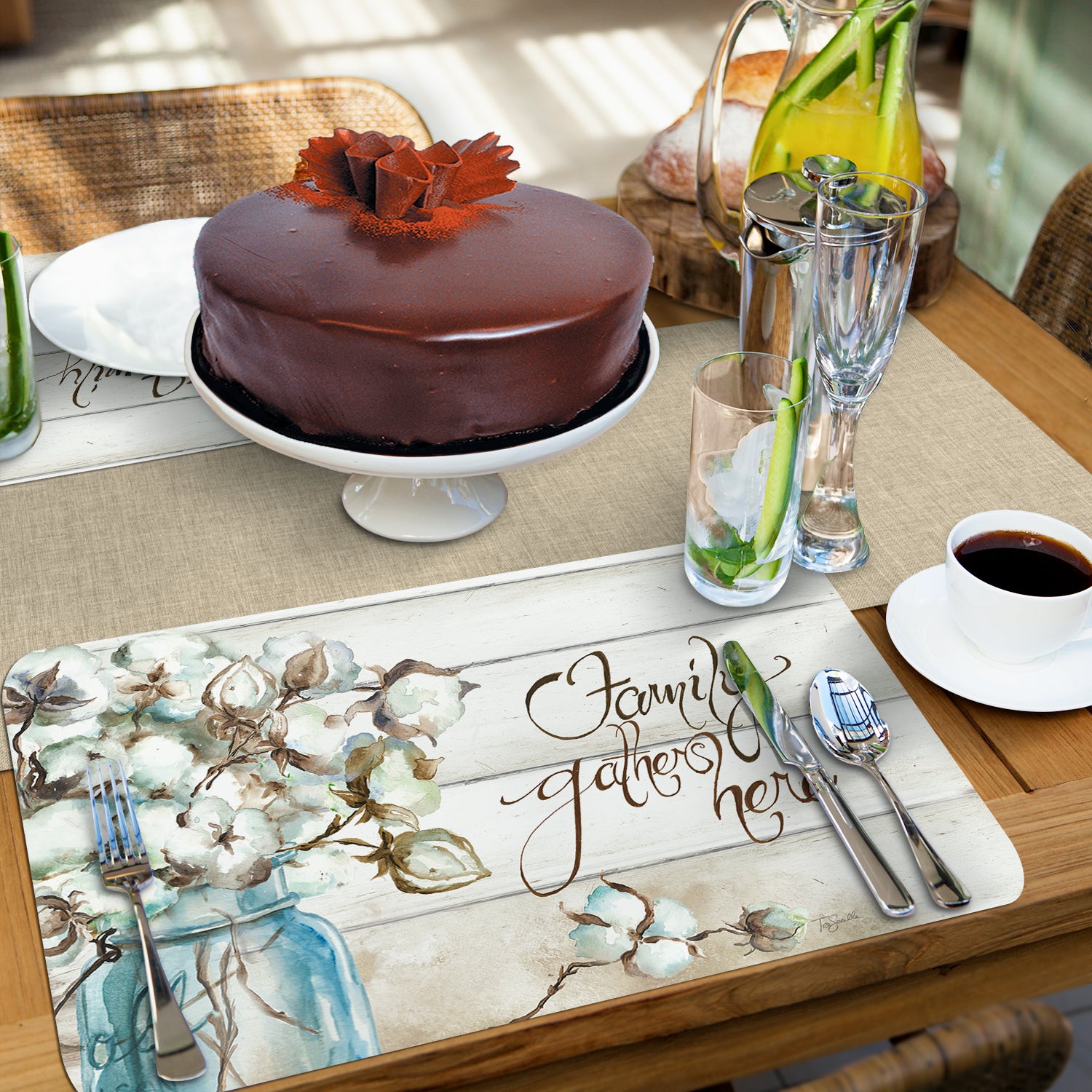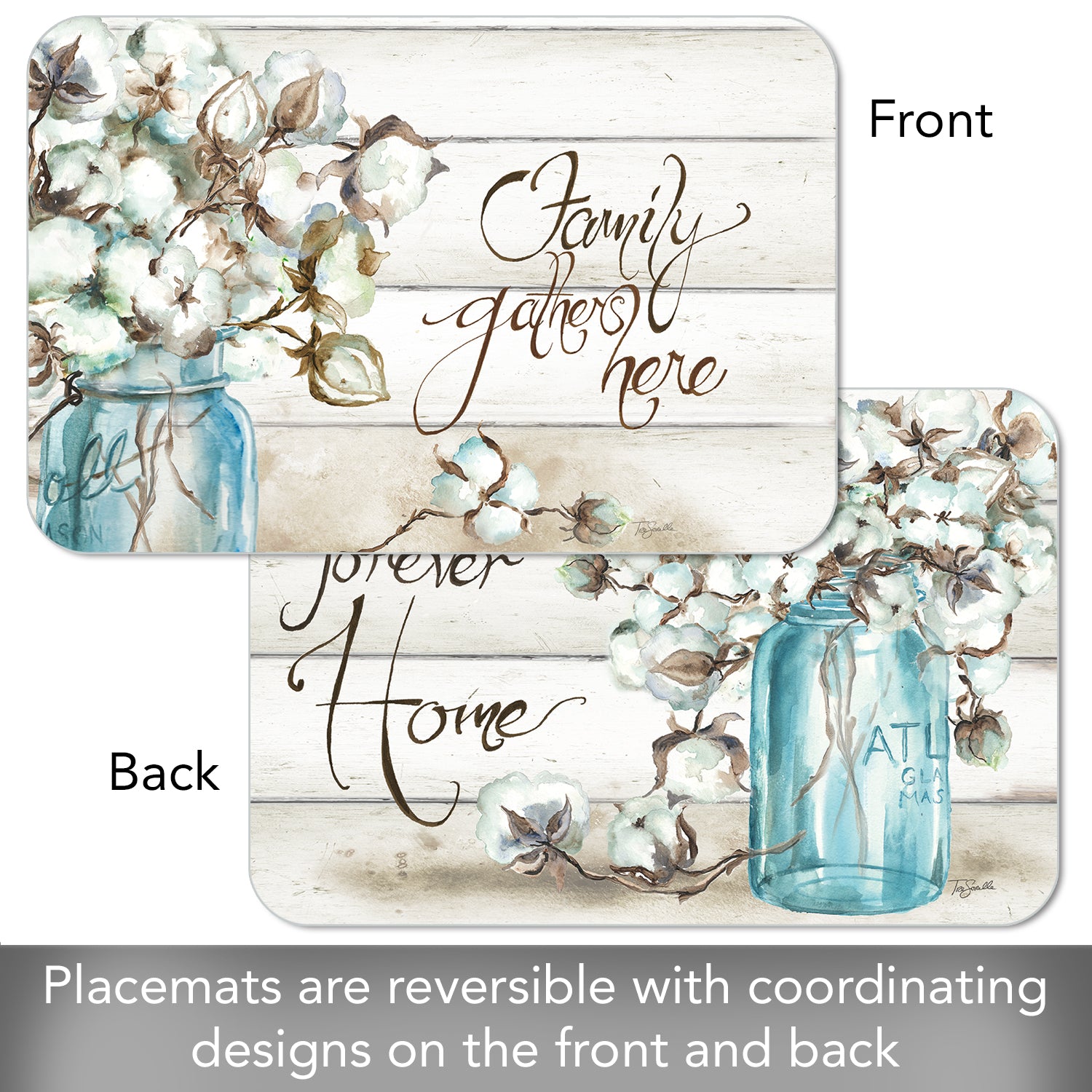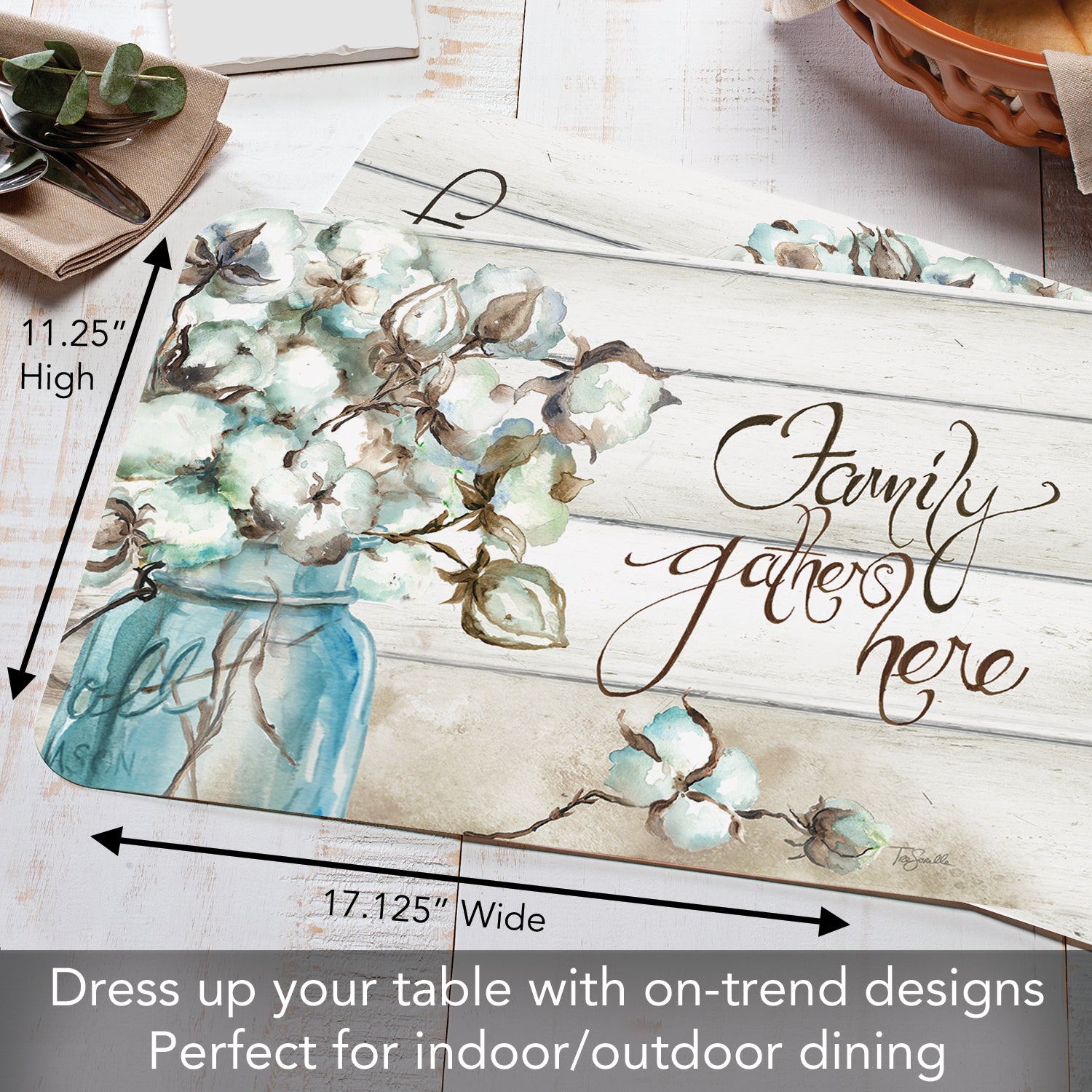 CounterArt Family Gathers Here 4 Pack Reversible Easy Care Flexible Placemats Made in the USA