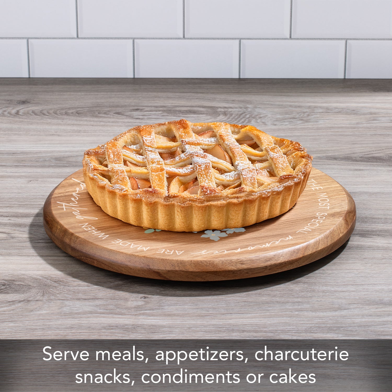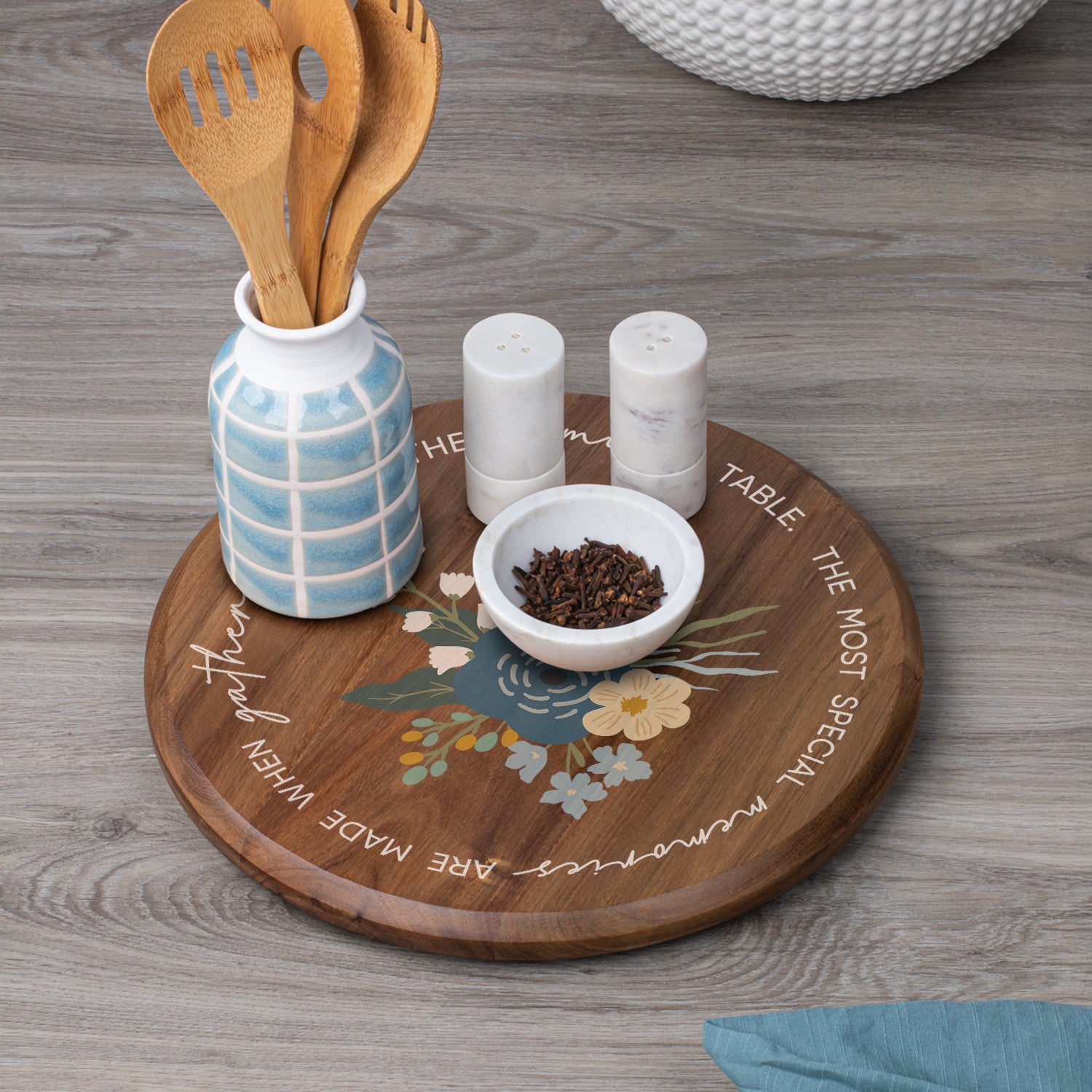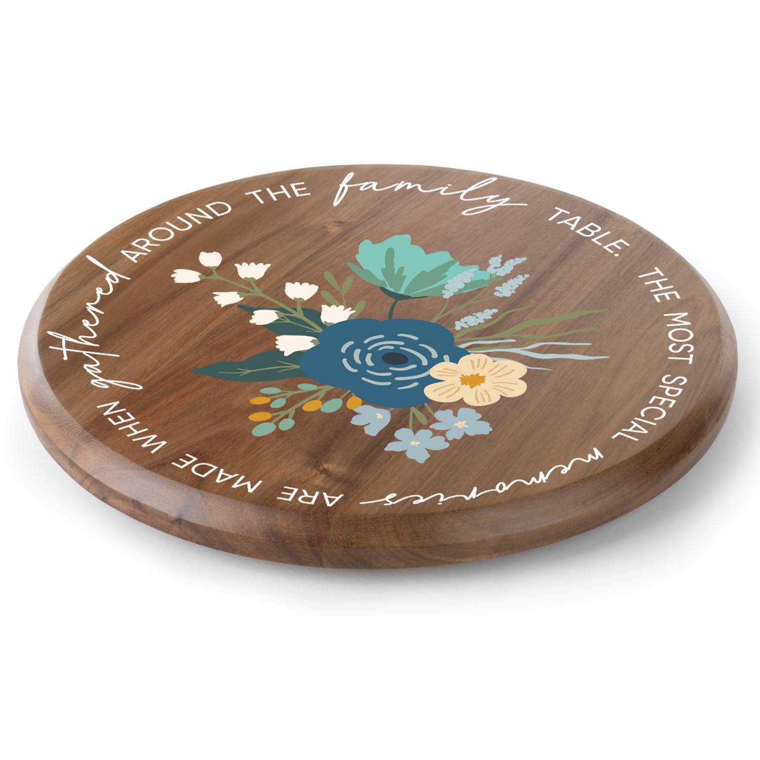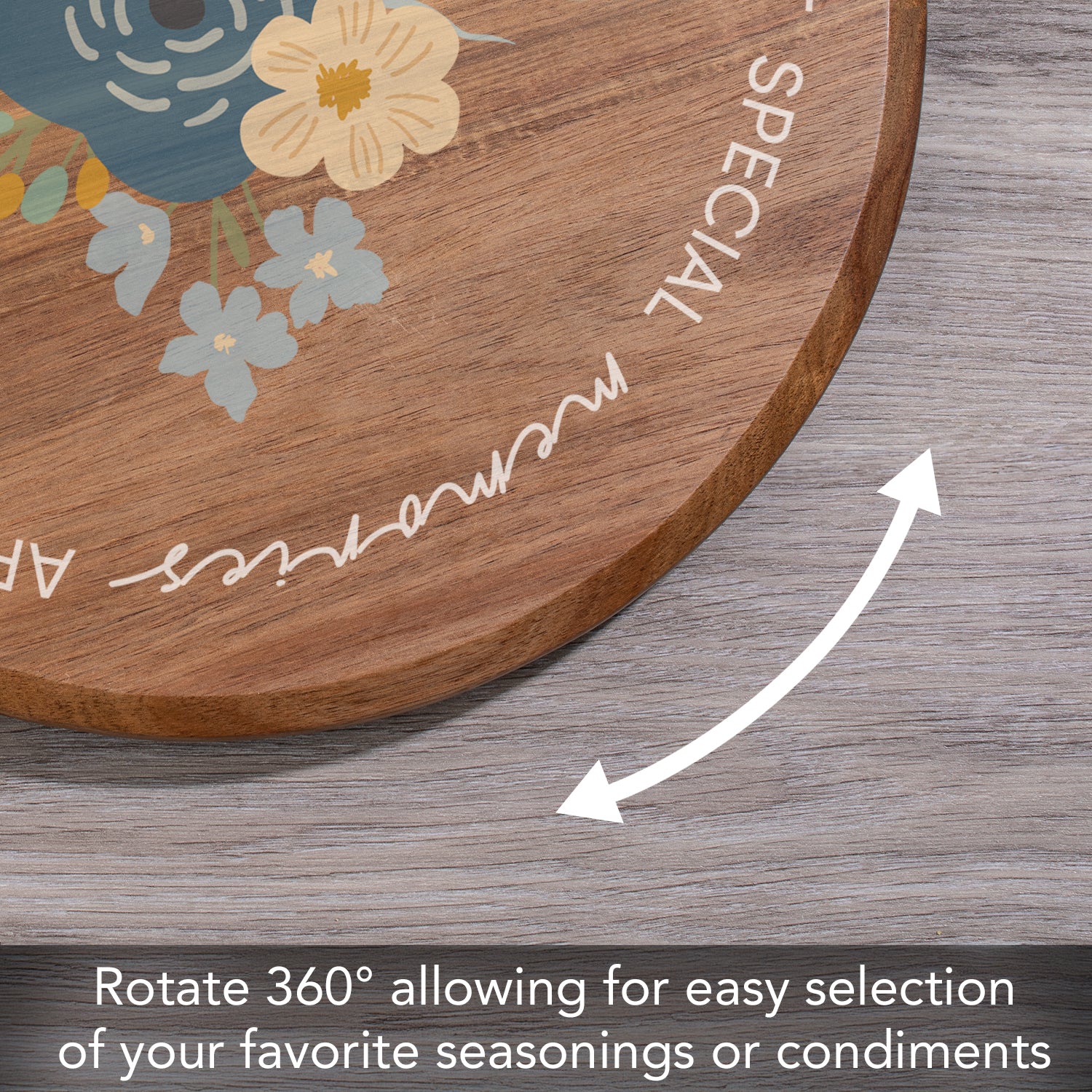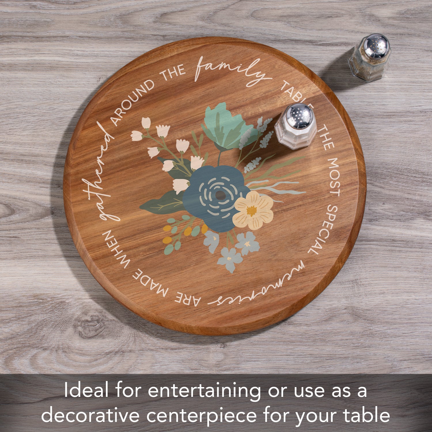 Family Table Floral Round Acacia Wood Lazy Susan Turntable 14" Diameter for Serving Kitchen Organization Condiment Caddy