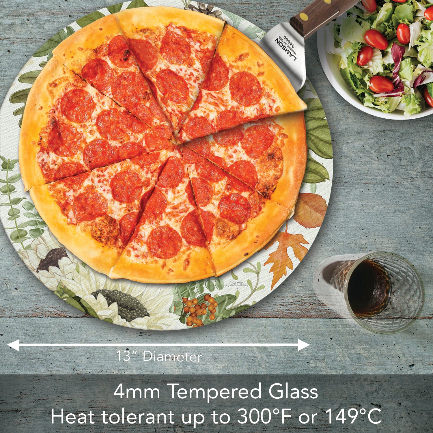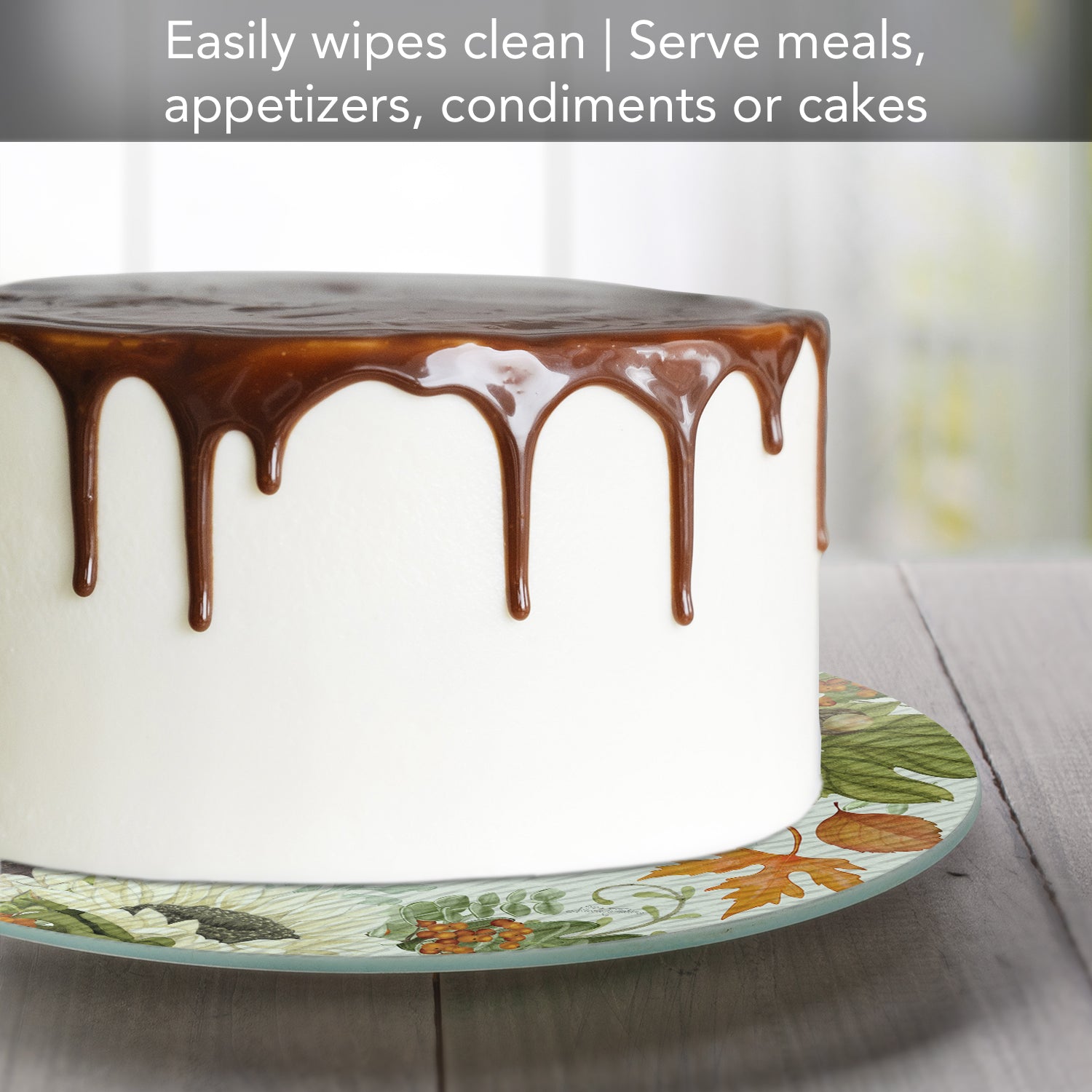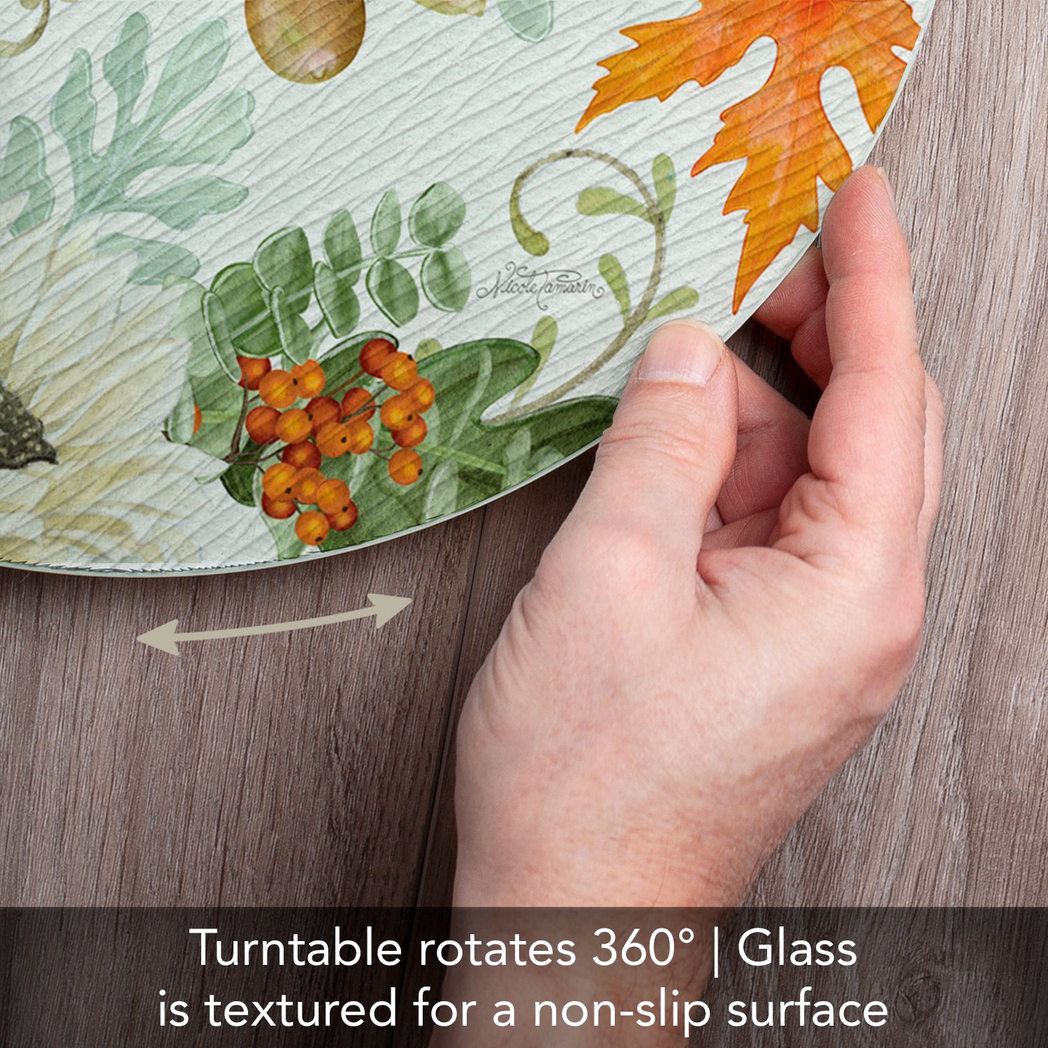 CounterArt Farmhouse Fall 4mm Tempered Glass Lazy Susan Turntable 13" Diameter