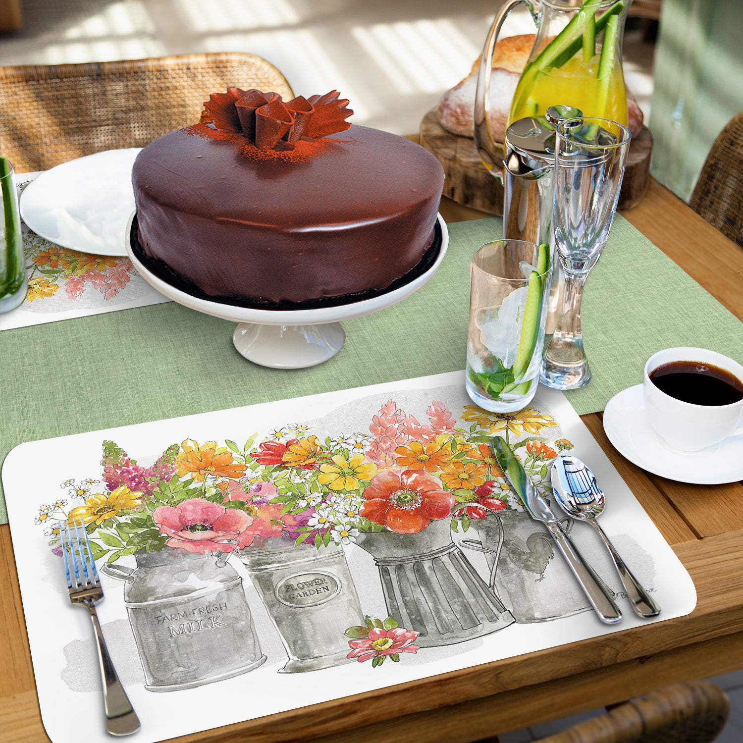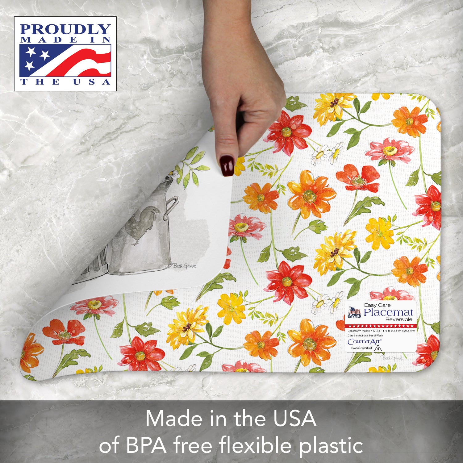 CounterArt Farmhouse Floral 4 Pack Reversible Easy Care Flexible Placemats Made in the USA