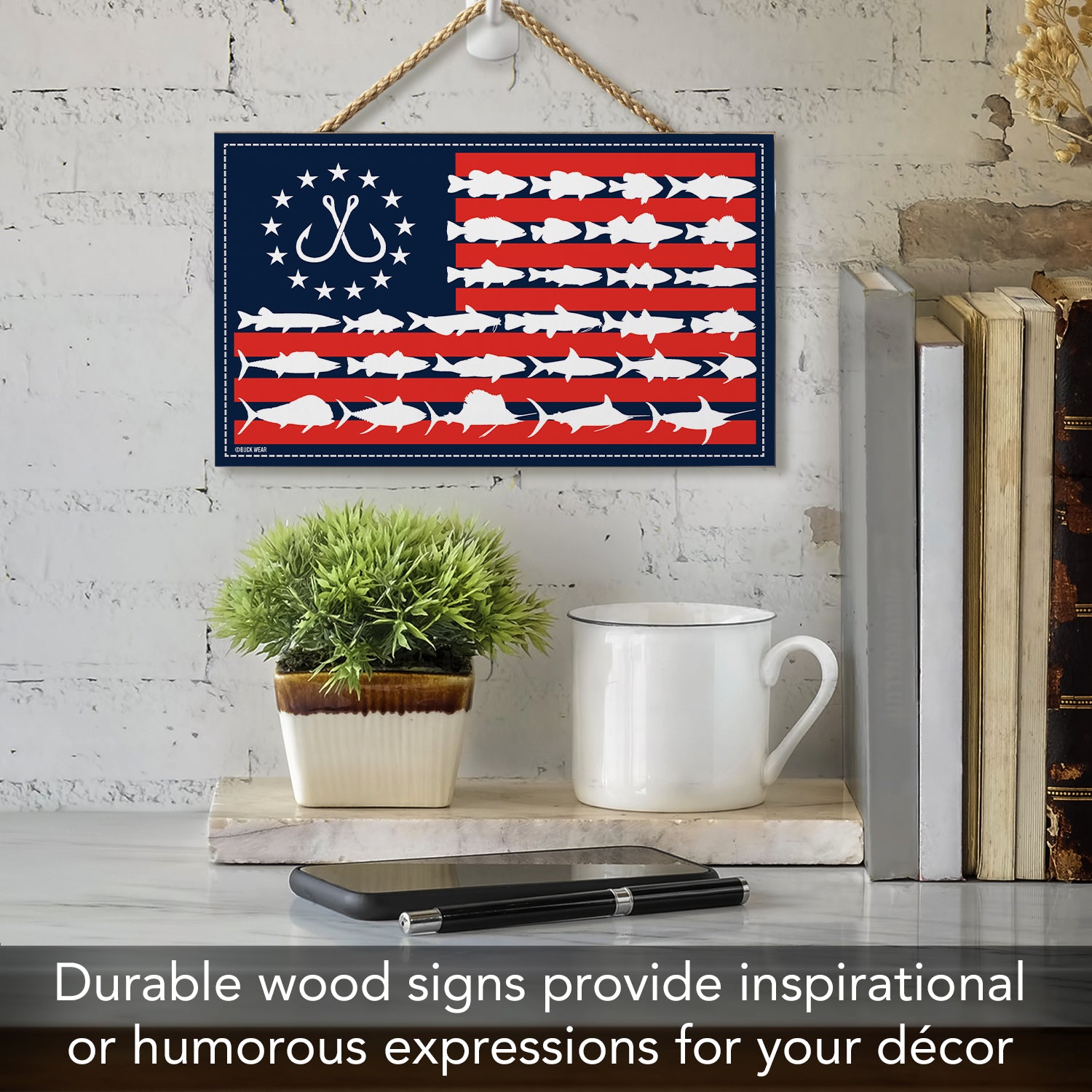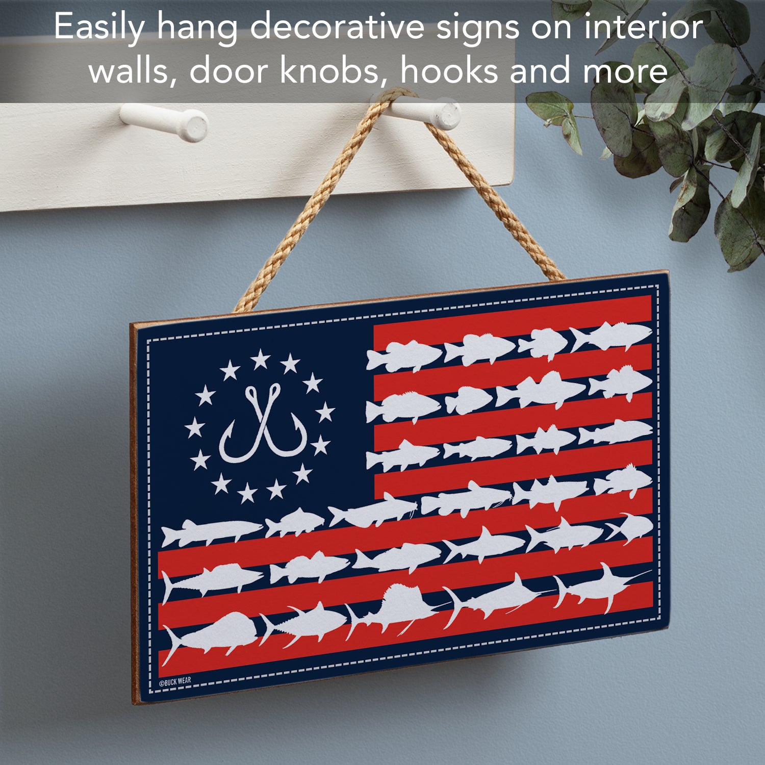 Fish Flag Decorative Hanging Wood Sign 9.5” by 5.75” Made in the USA