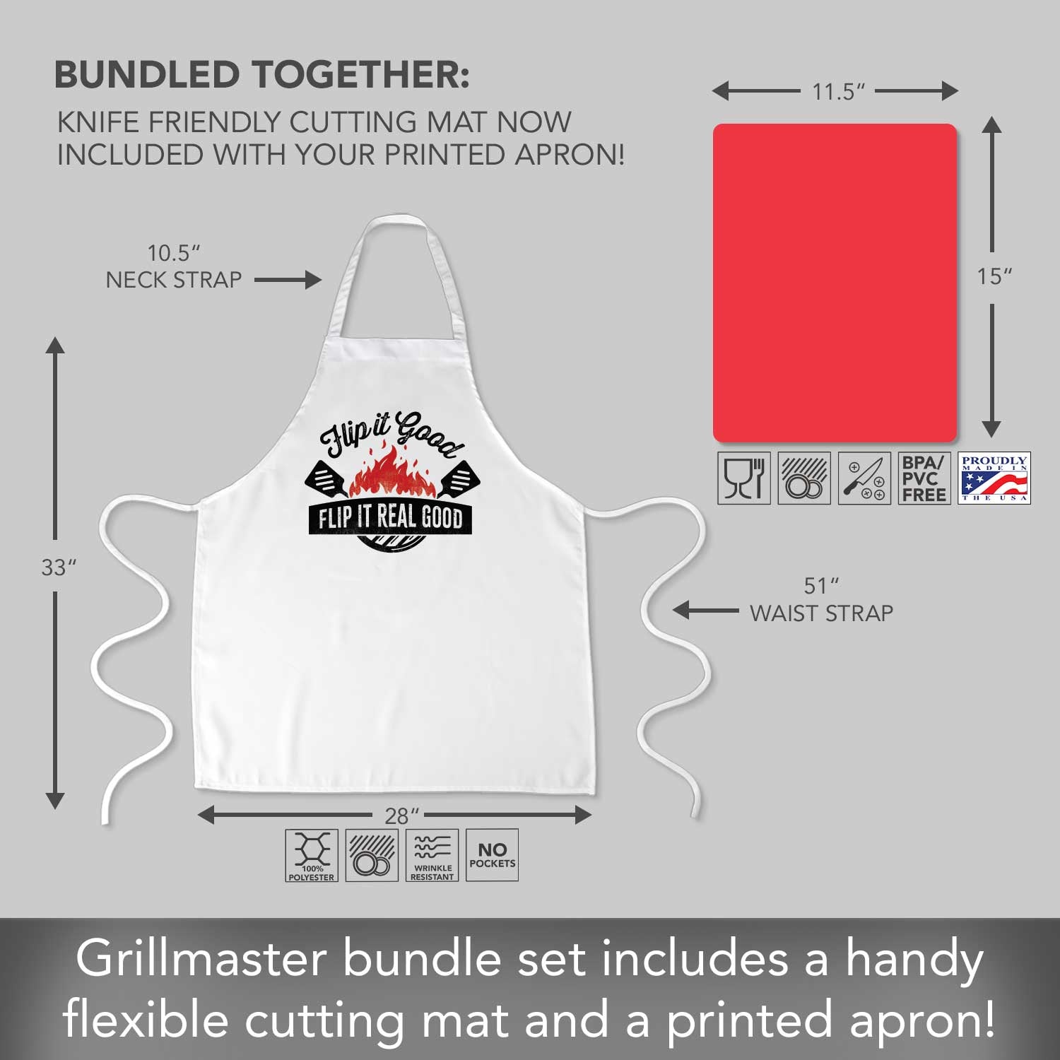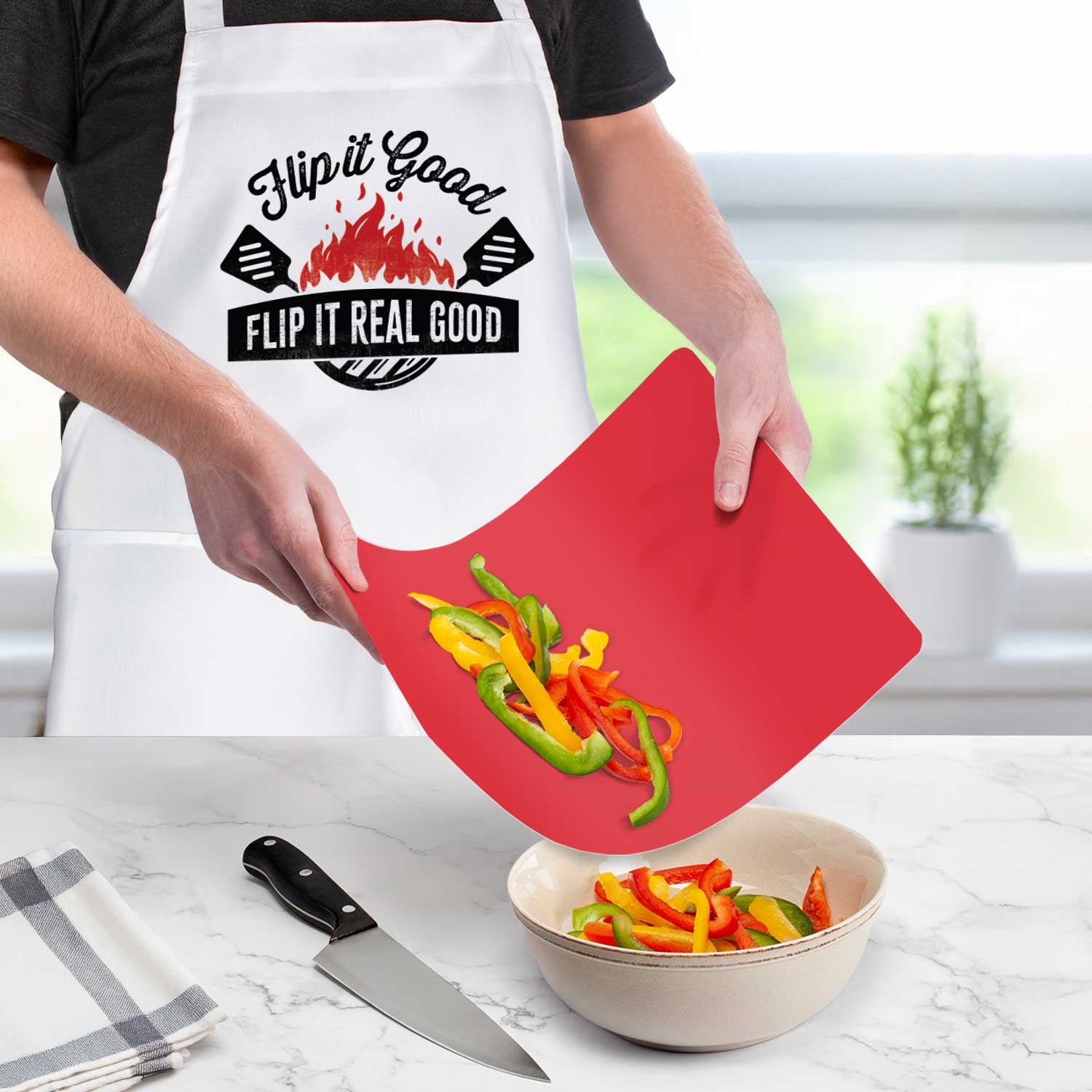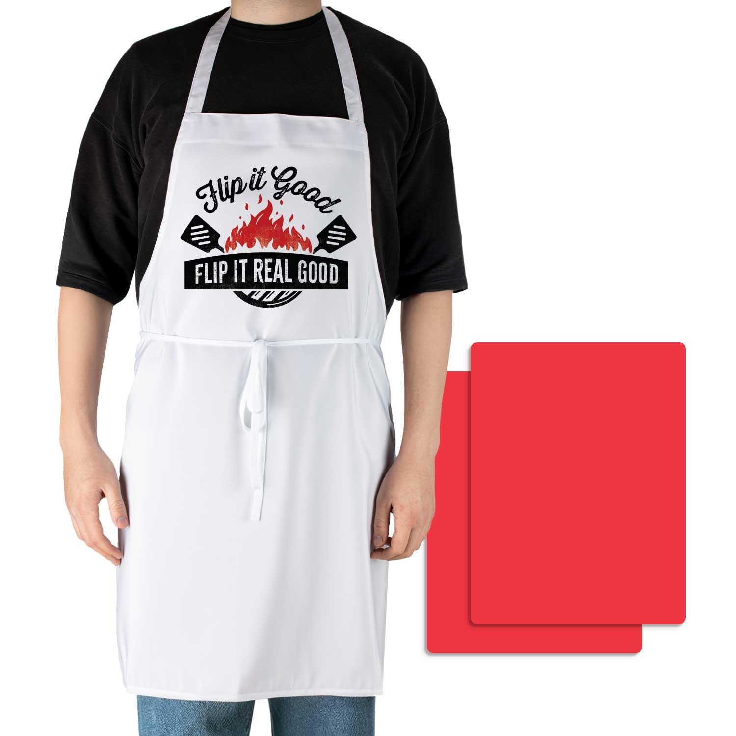 Chef Apron with 2 Pack Red Flex Mats-Flip It Real Good Chef Apron with 2-Pack Red Cutting Board Mats