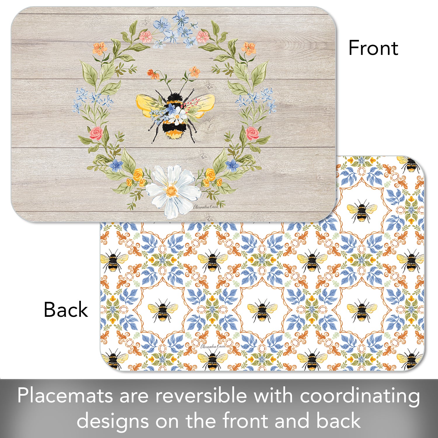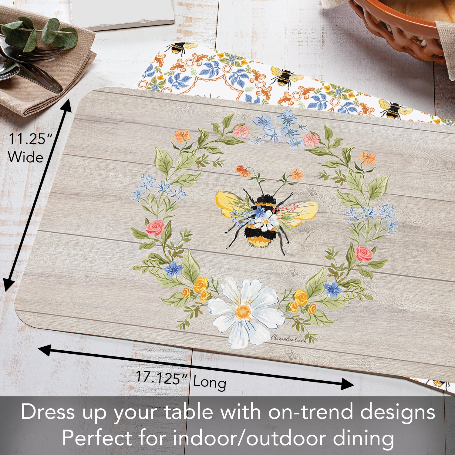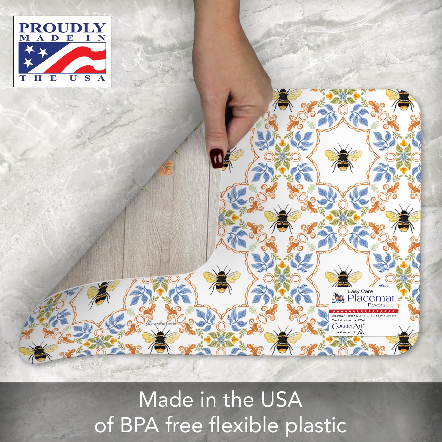 CounterArt Floral Bee 4 Pack Reversible Easy Care Flexible Placemats Made in the USA