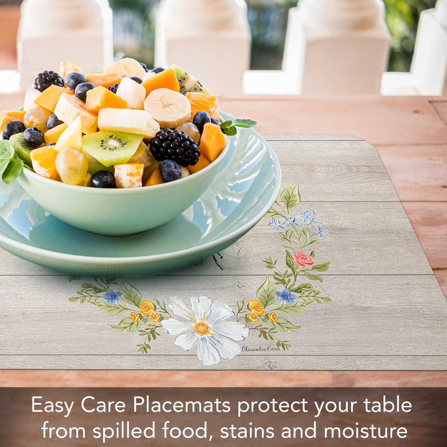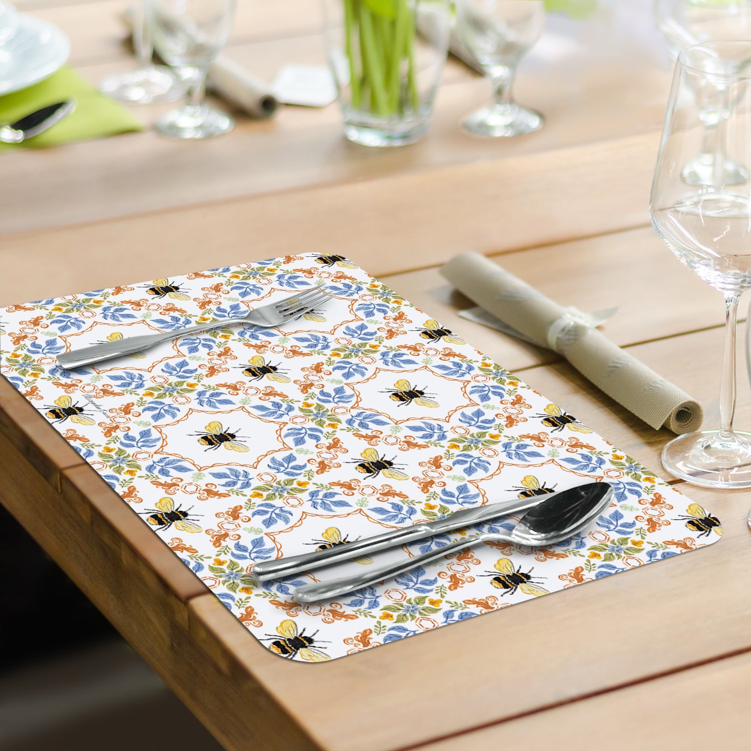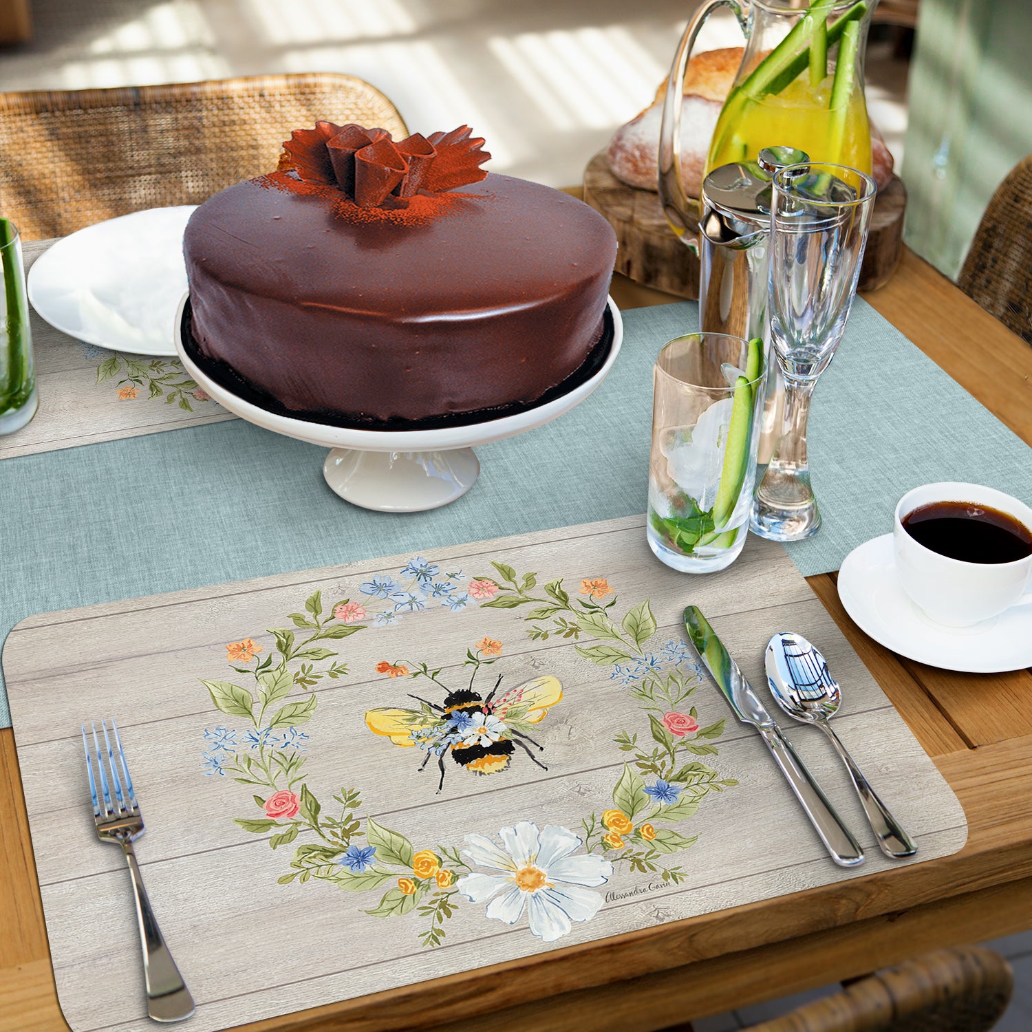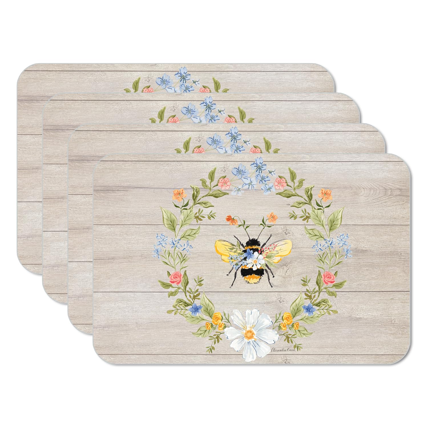 CounterArt Floral Bee 4 Pack Reversible Easy Care Flexible Placemats Made in the USA