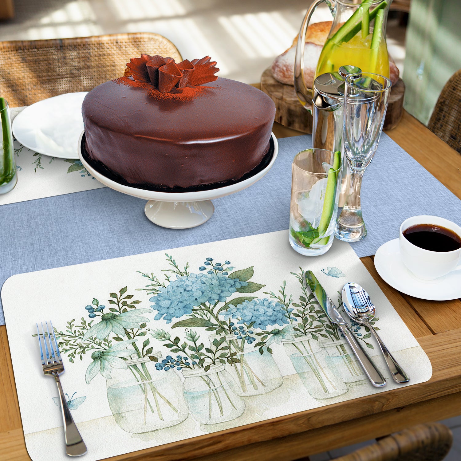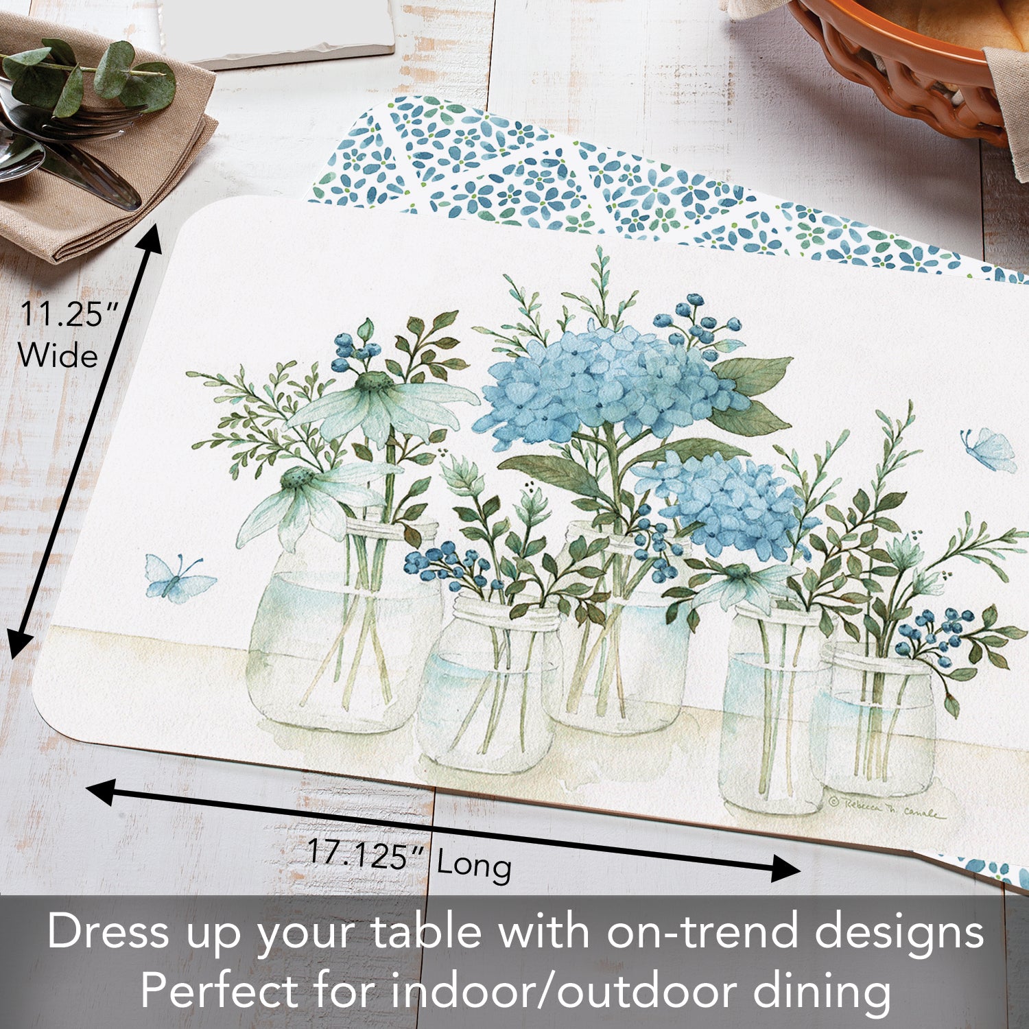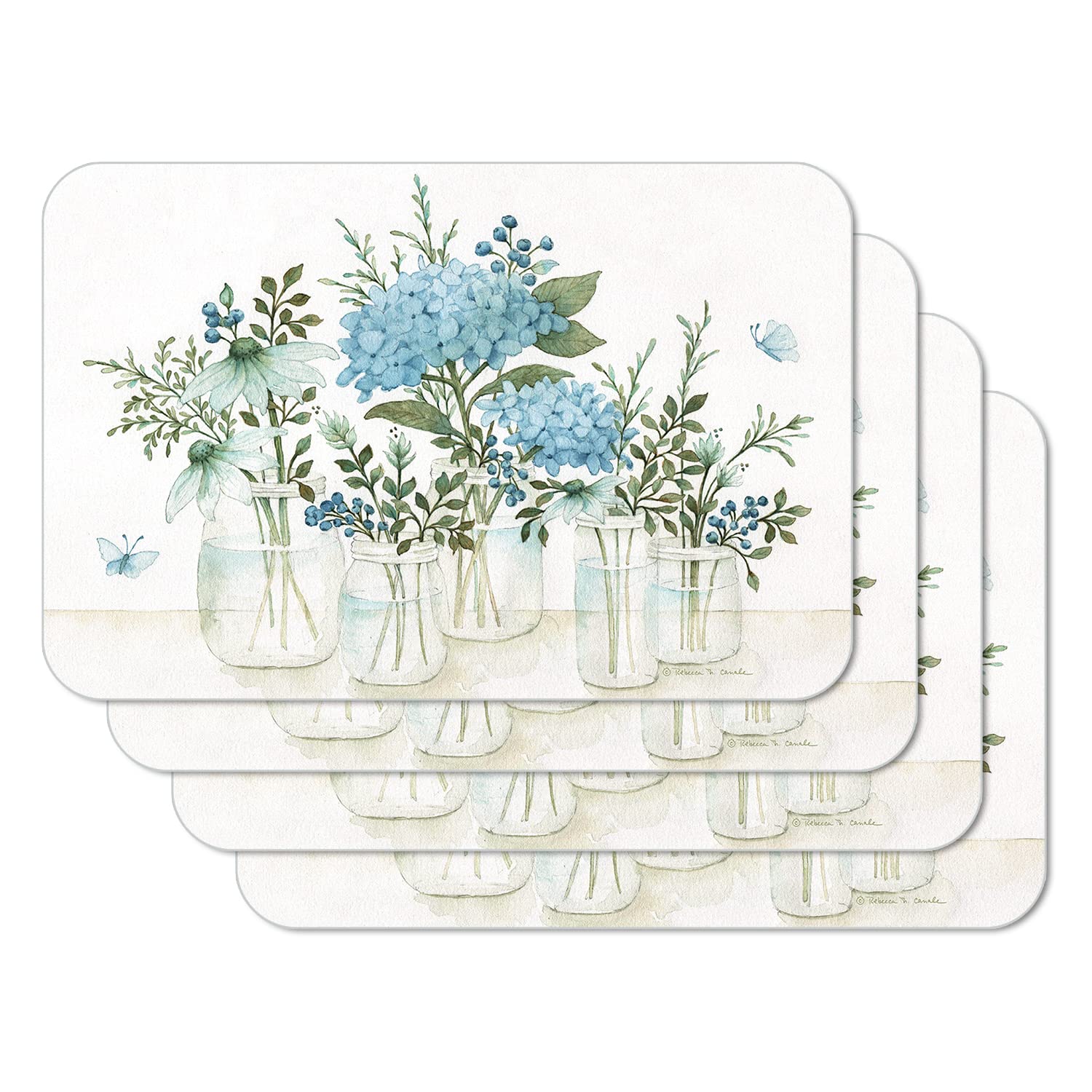CounterArt Floral Mason Jars 4 Pack Reversible Easy Care Flexible Placemats Made in the USA