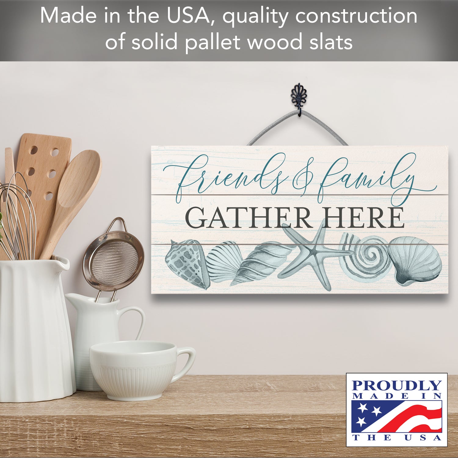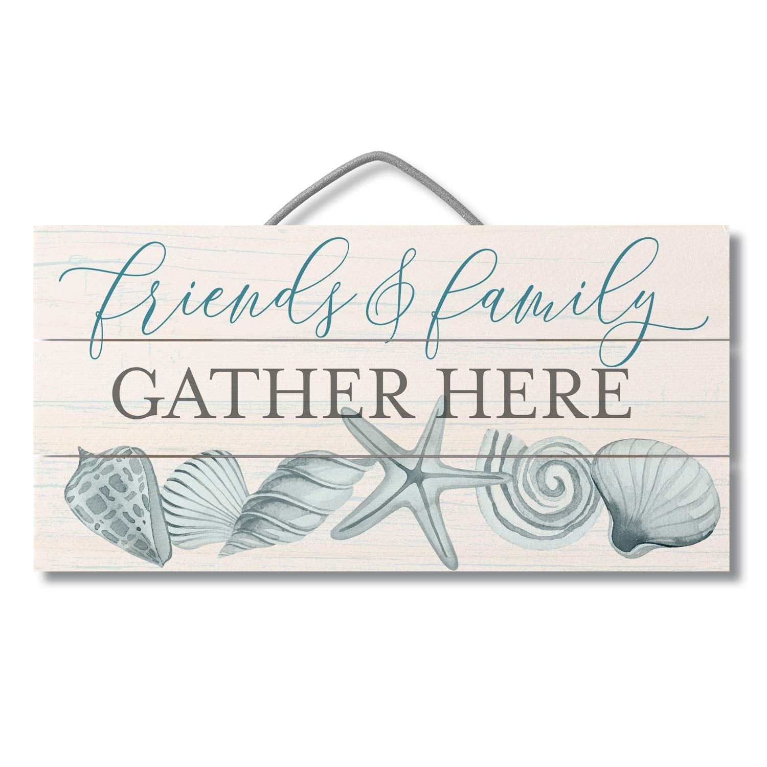 Friends & Family Decorative Slatted Pallet Wood Beach Sign 12" x 6" Made in the USA Wire Hanger Doubles as an Easel