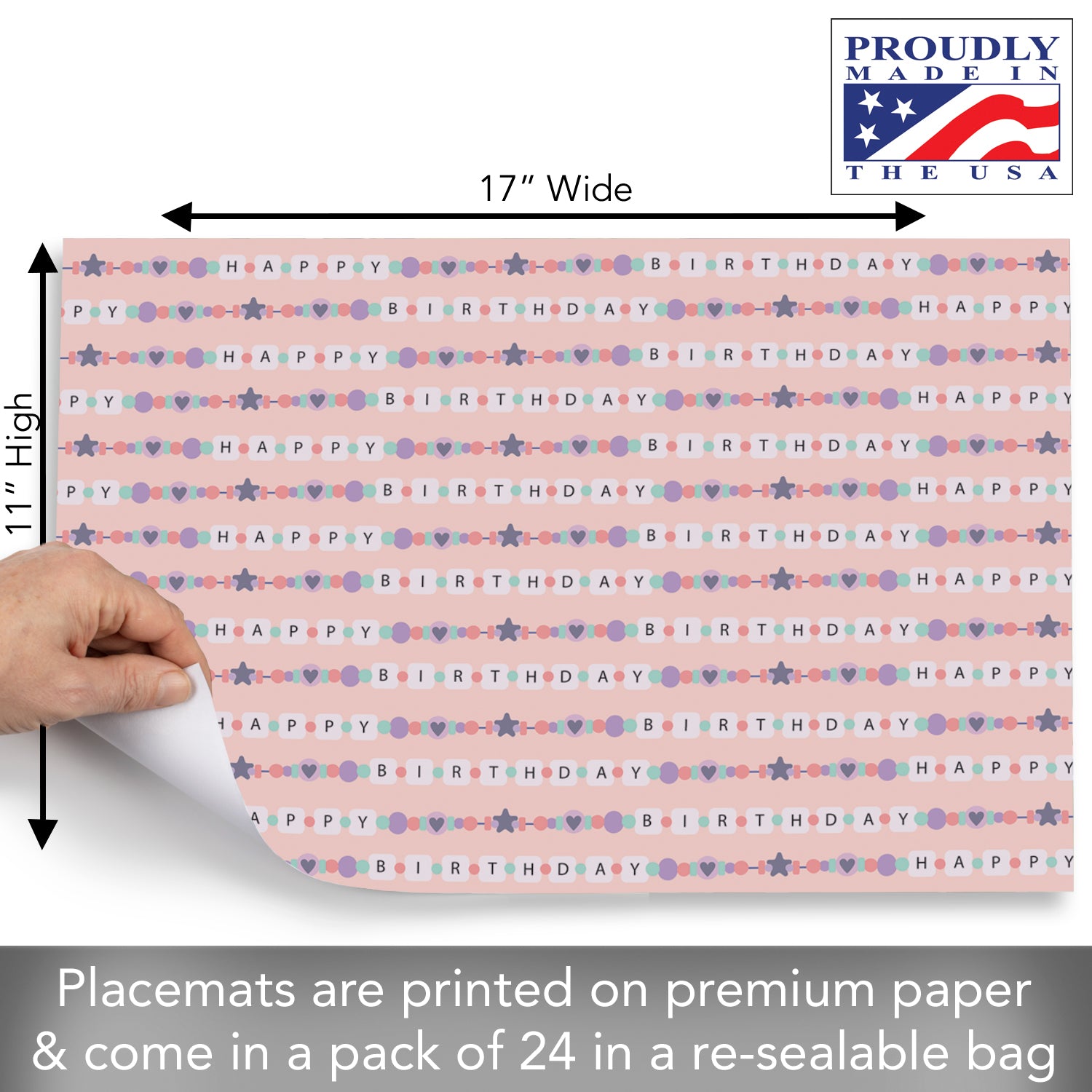 Friendship Bracelet Birthday 24 Sheet Reusable Premium Paper Stock Placemats in Resealable Storage Bag Made in The USA 17" x 11"