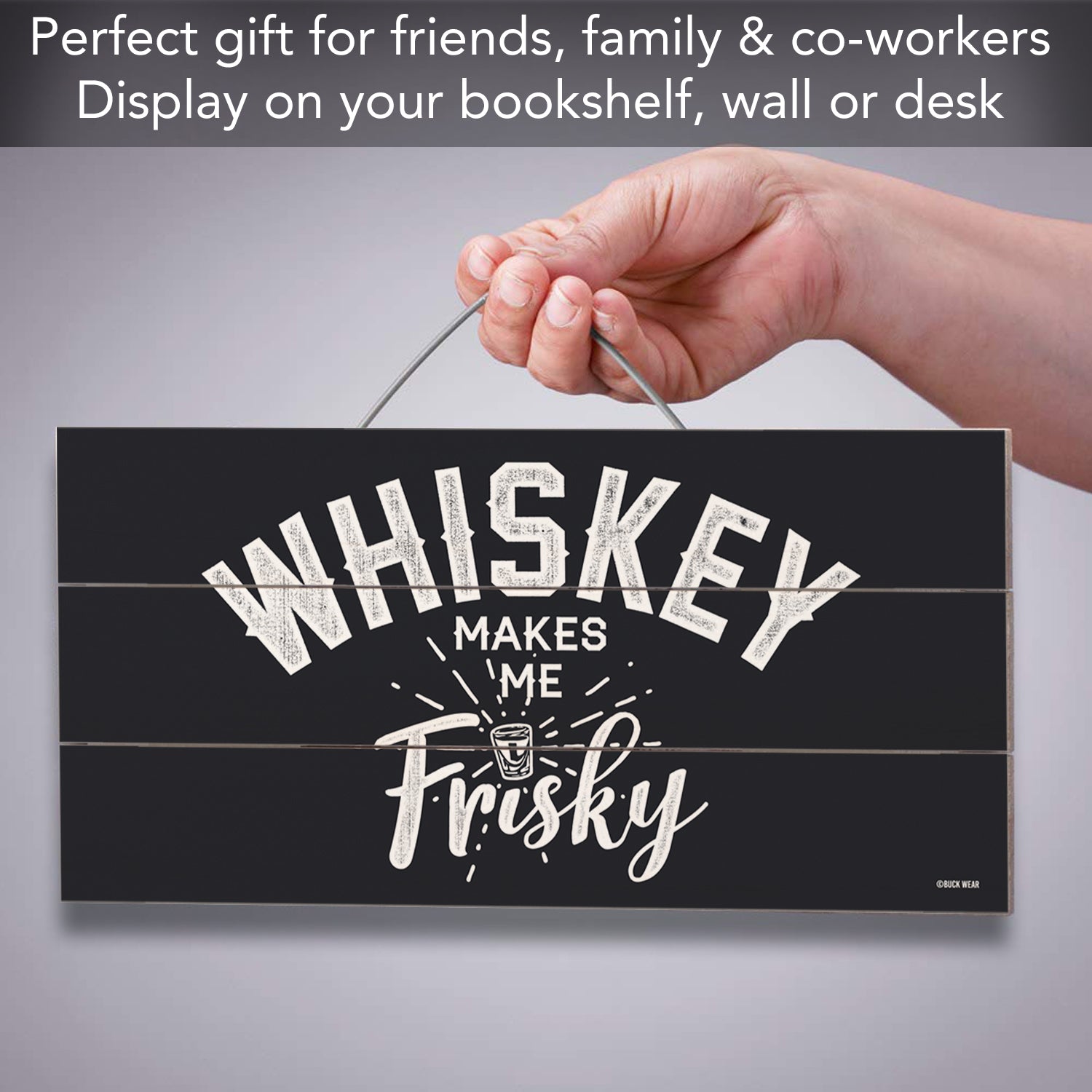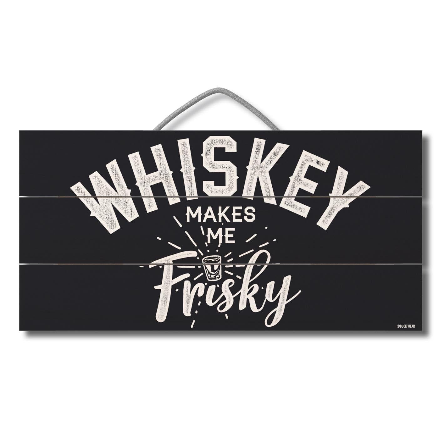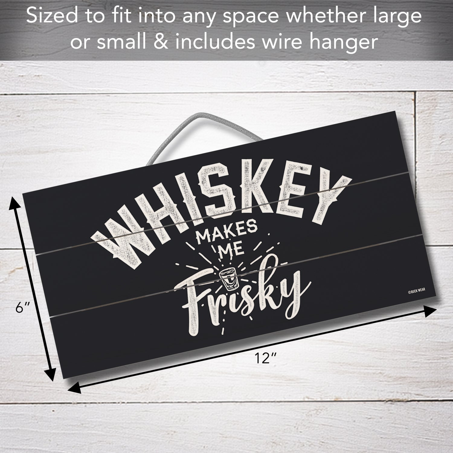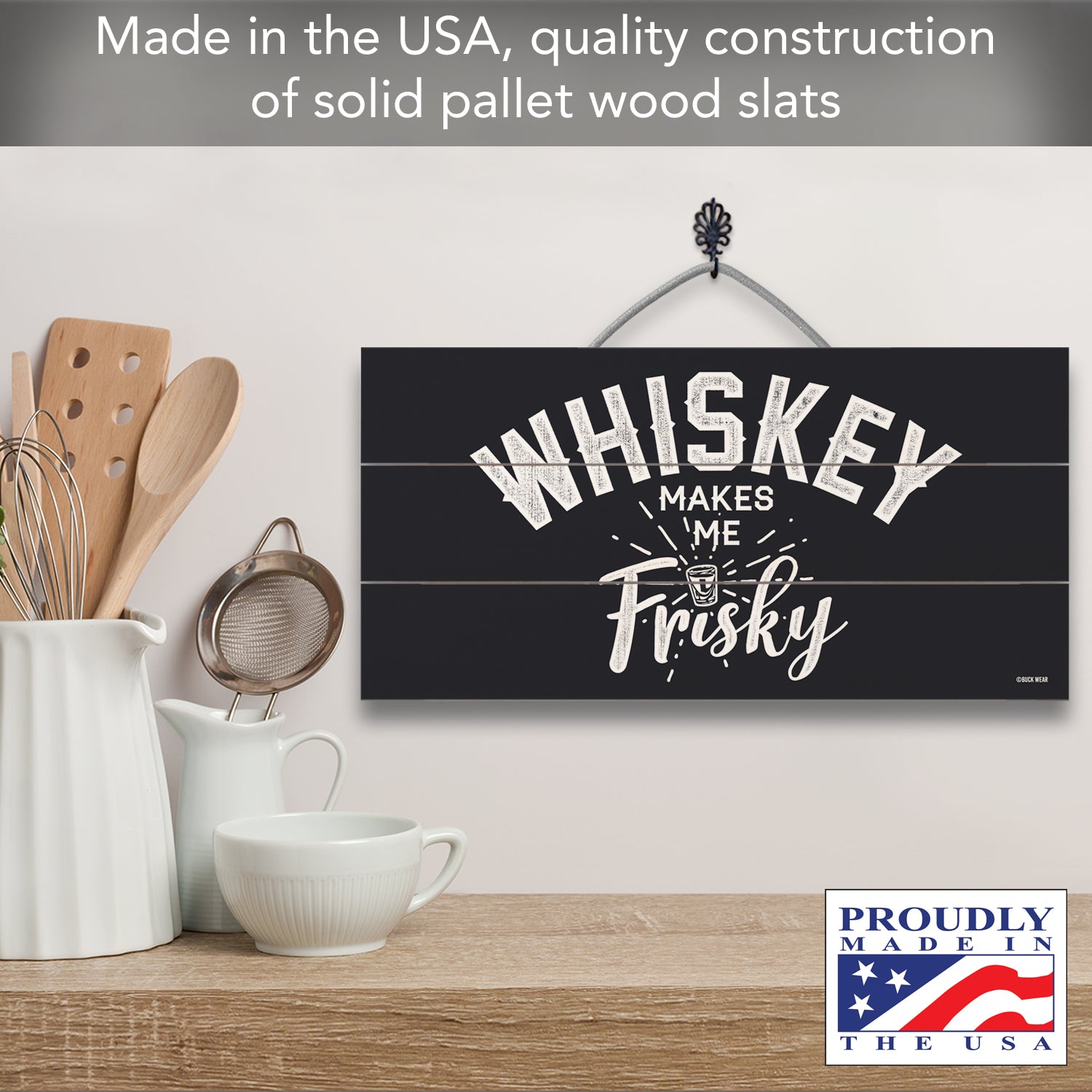 Frisky Decorative Slatted Pallet Wood Sign 12" by 6" Made in the USA Wire Hanger Doubles As An Easel
