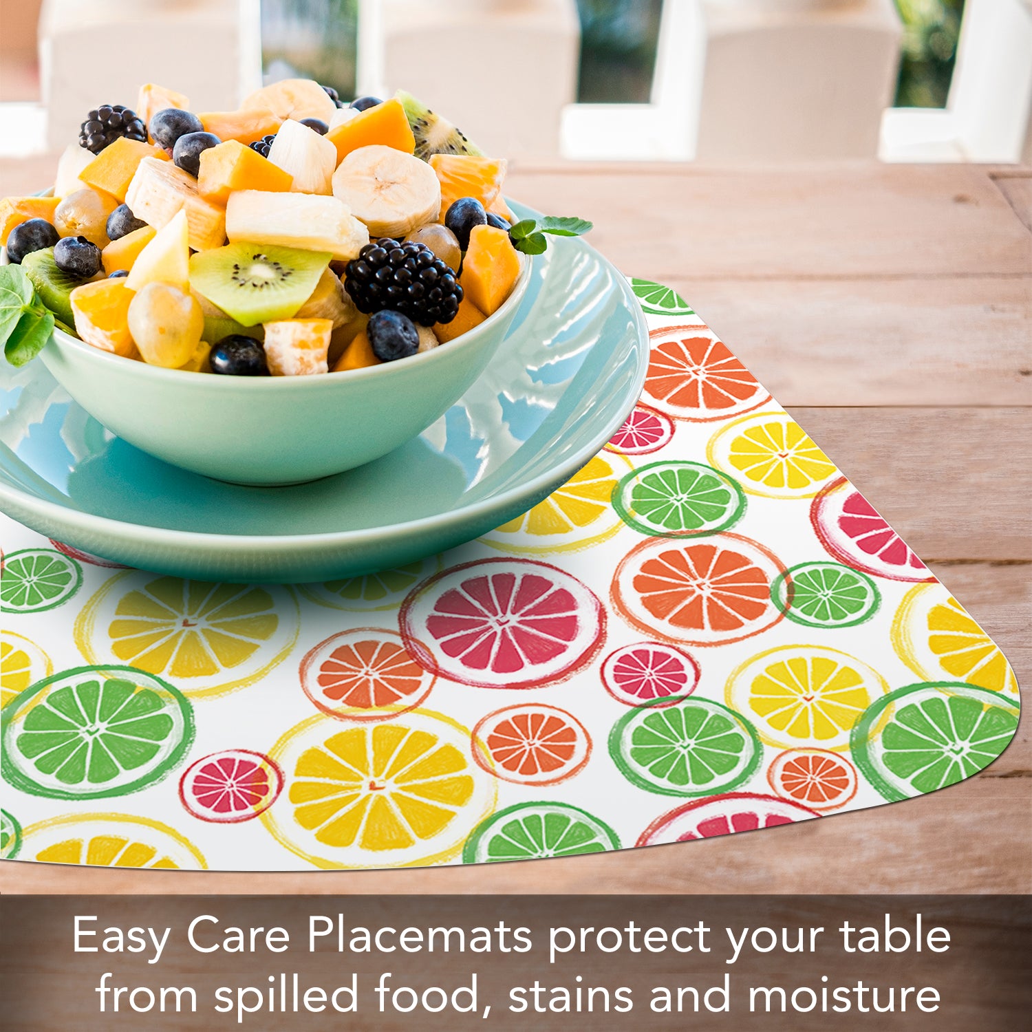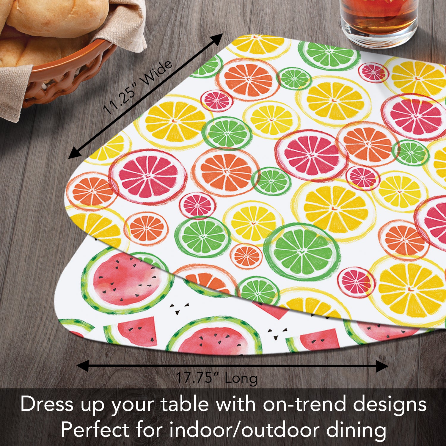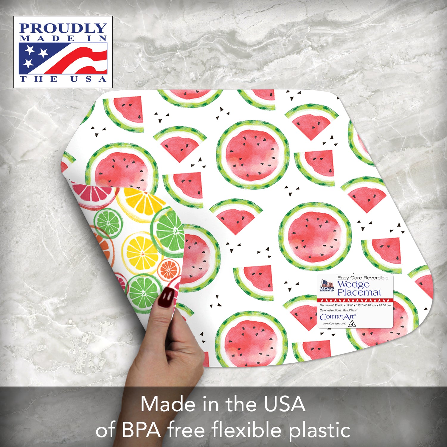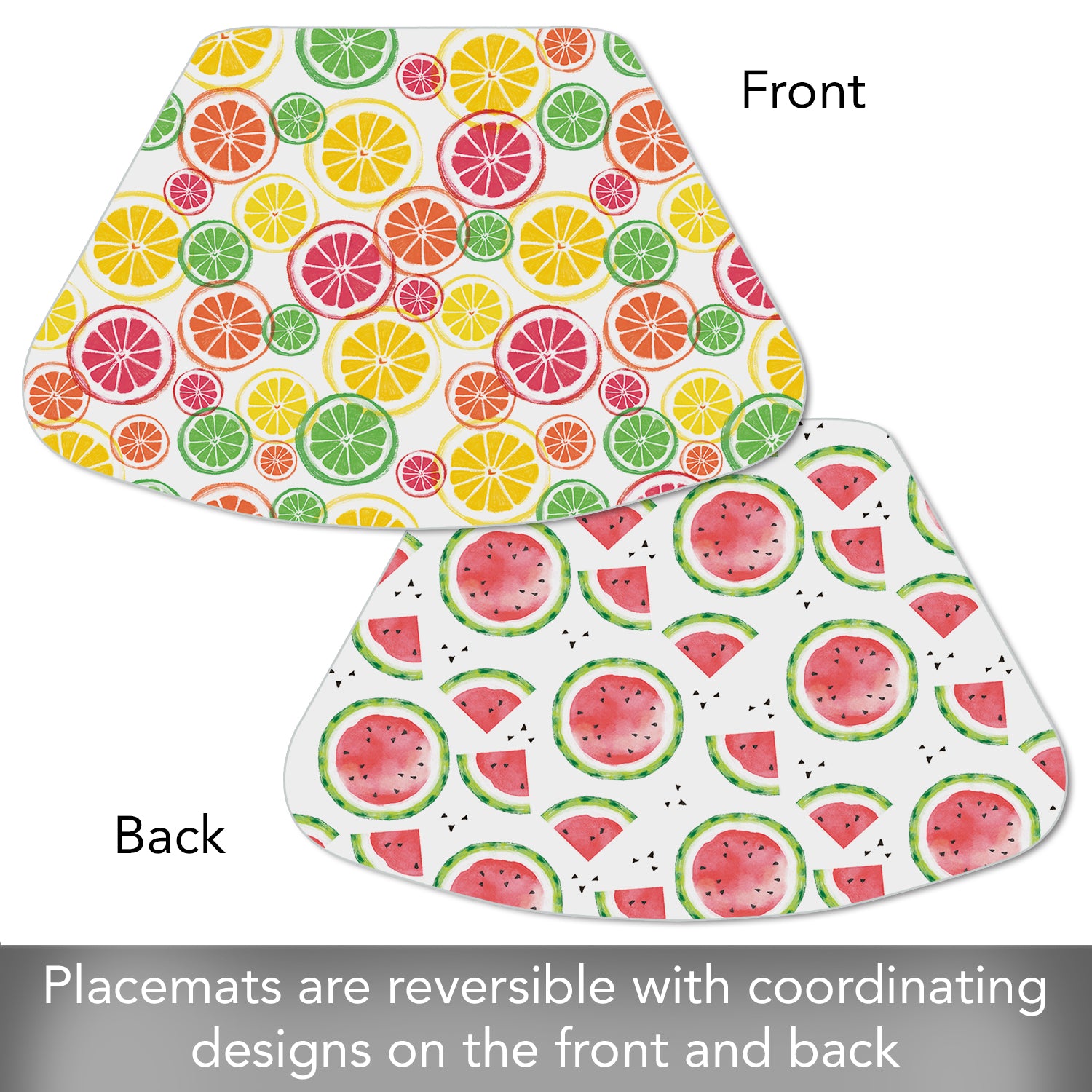 CounterArt Fruity Summer 4 Pack Wedge Shaped Reversible Easy Care Placemats Made in the USA