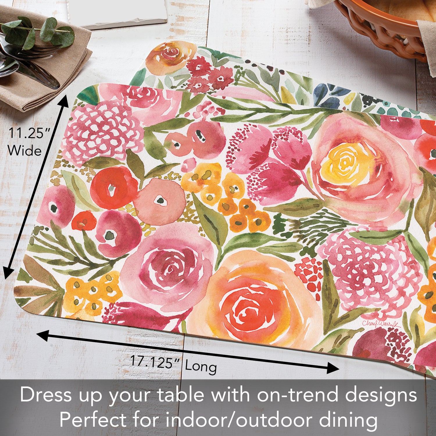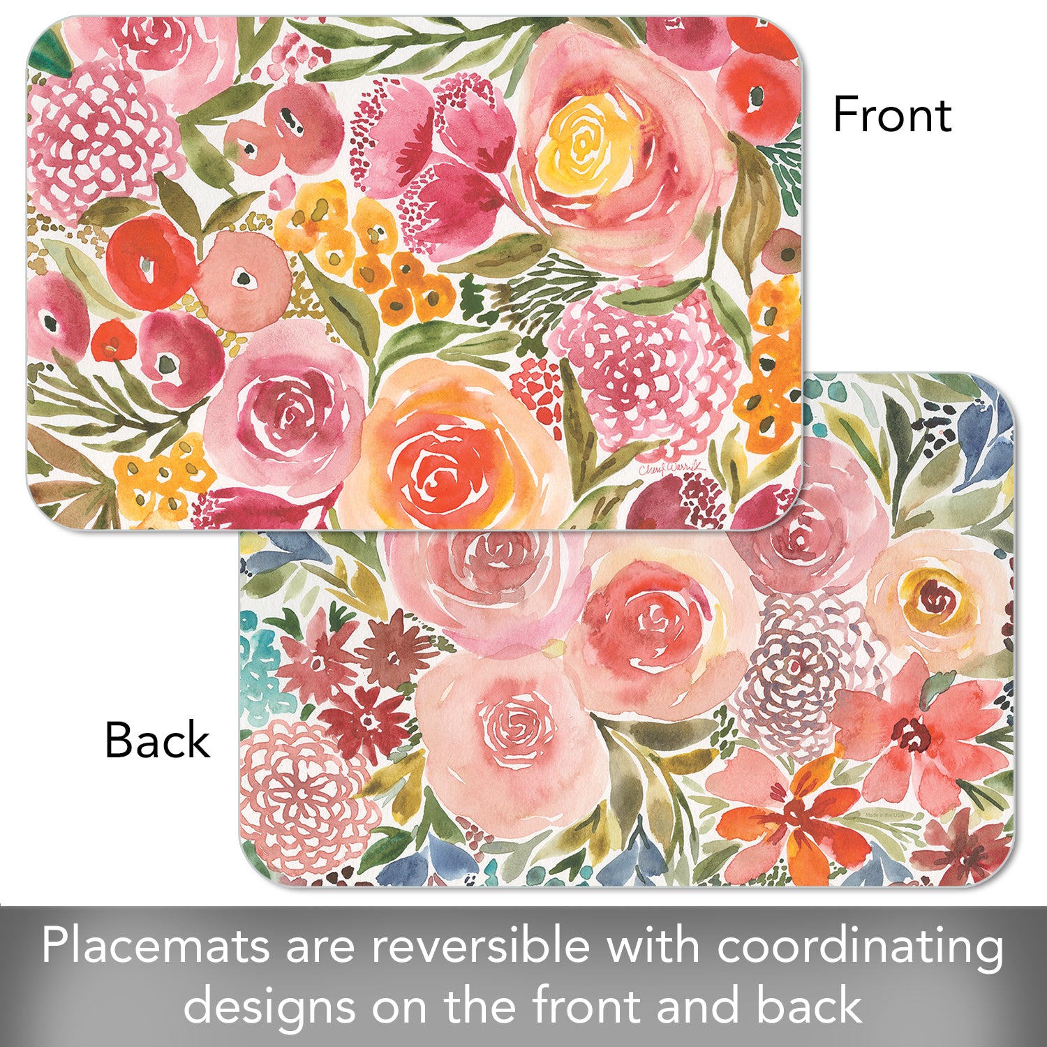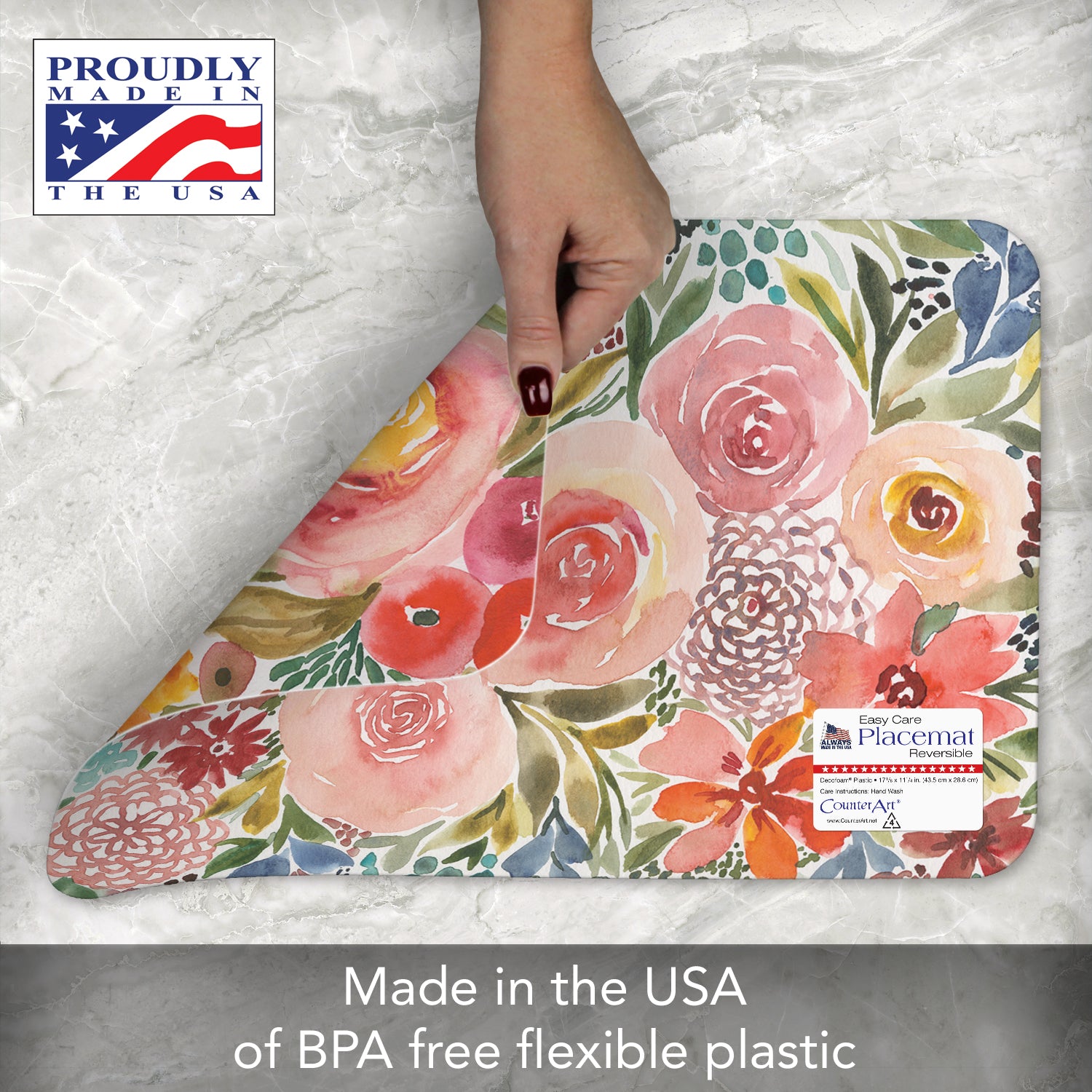 CounterArt Full Bloom 4 Pack Reversible Easy Care Flexible Placemats Made in the USA