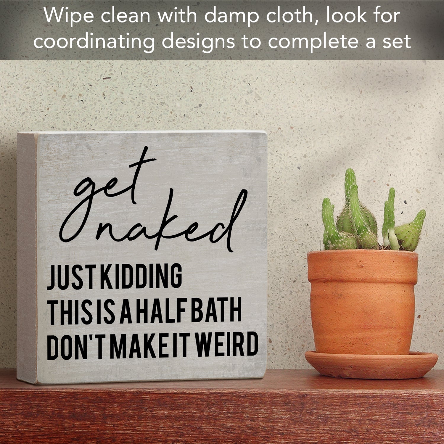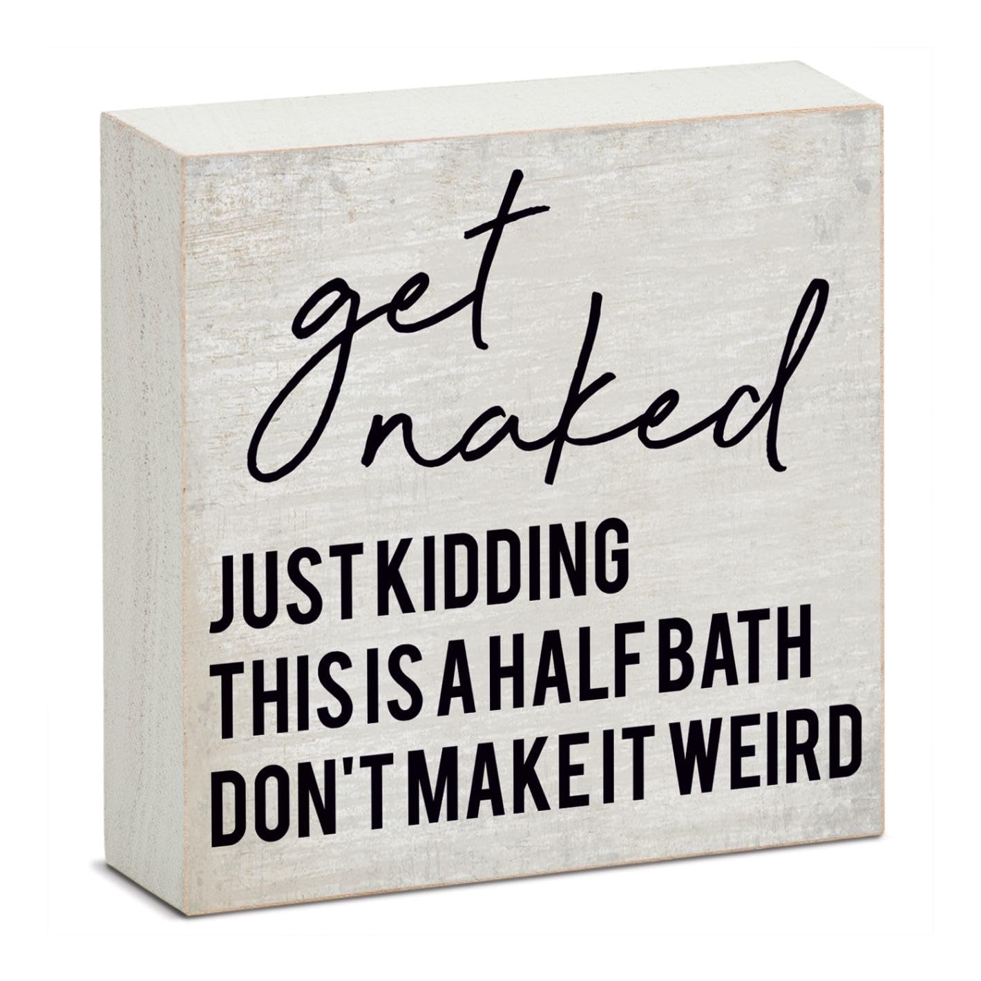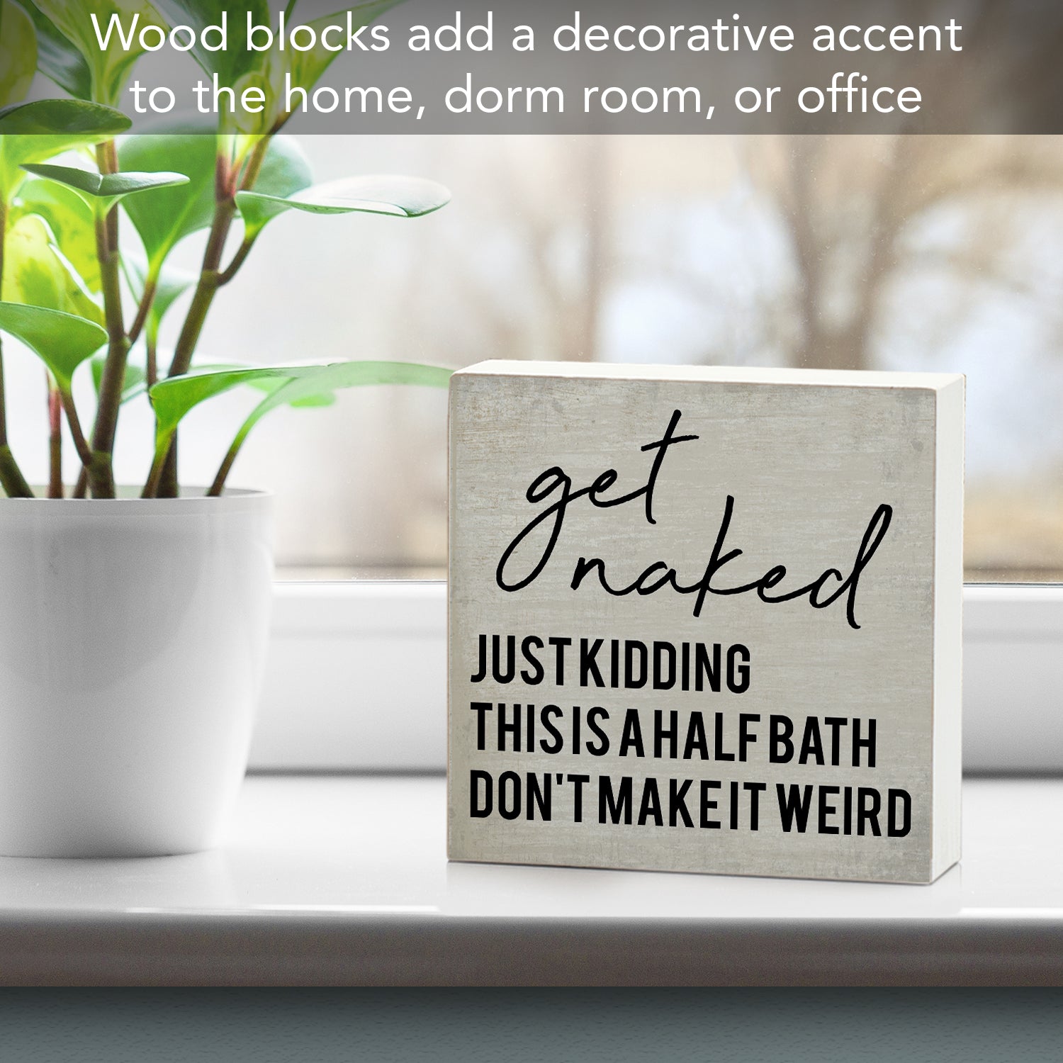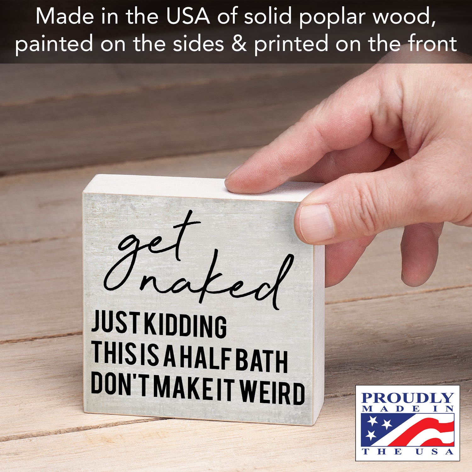 Get Naked Humorous Freestanding Solid Wood Block Sign Made in the USA 3.75” Square