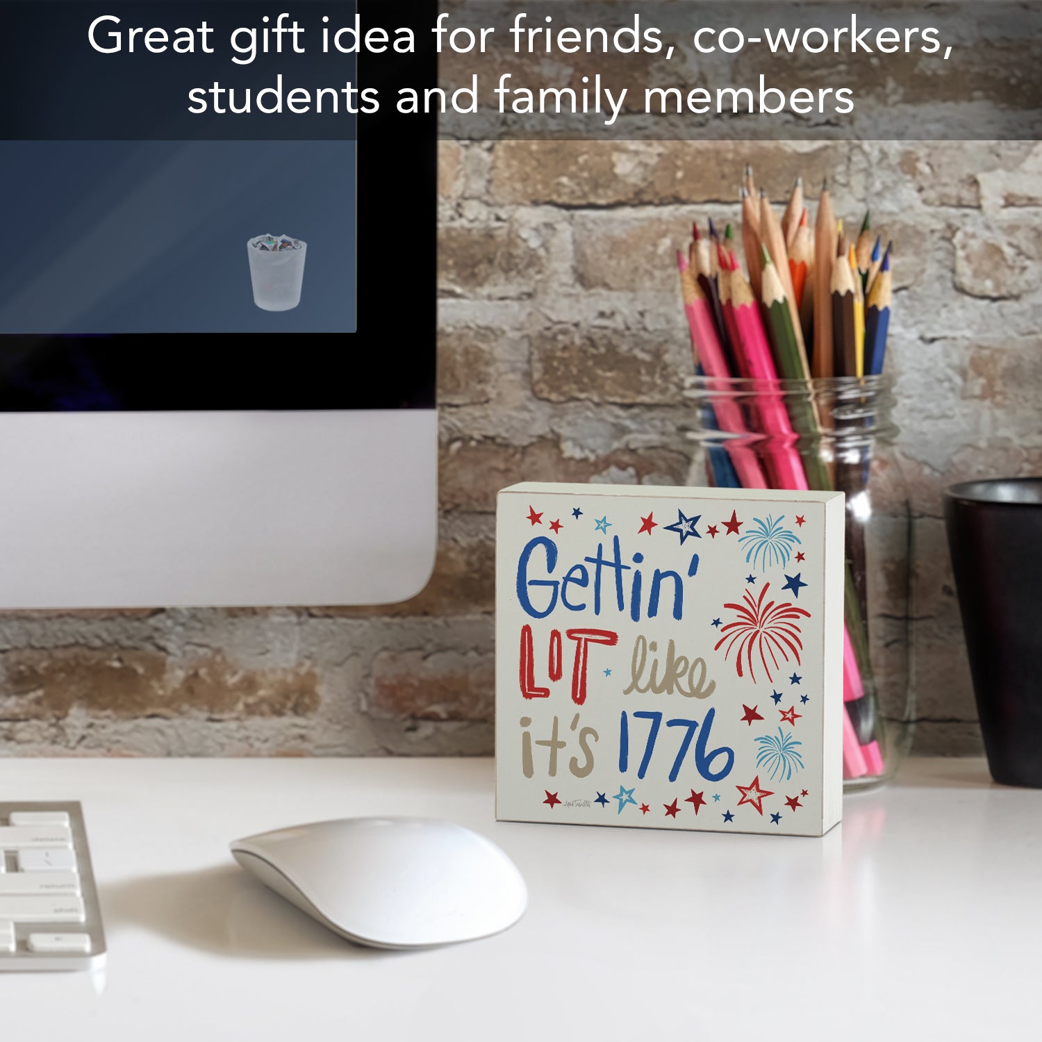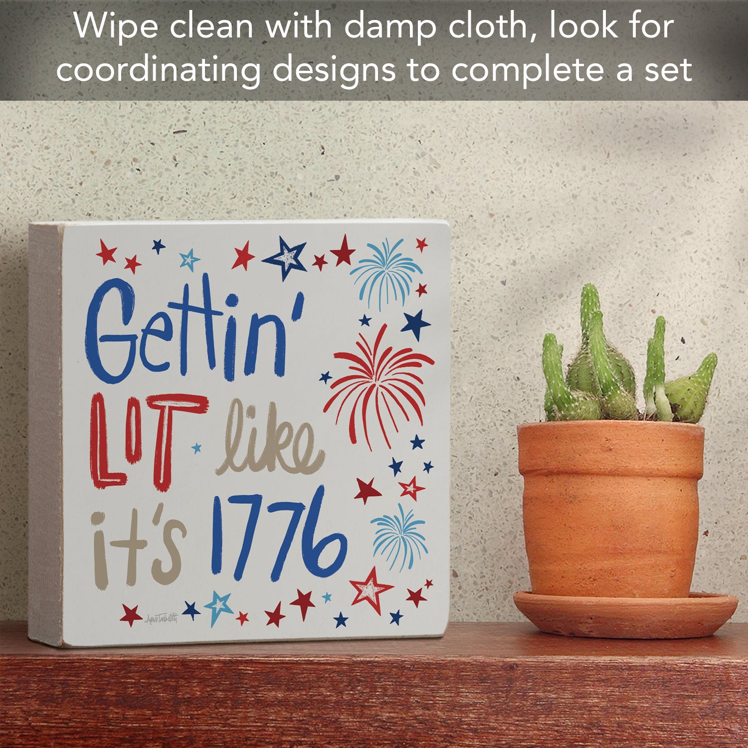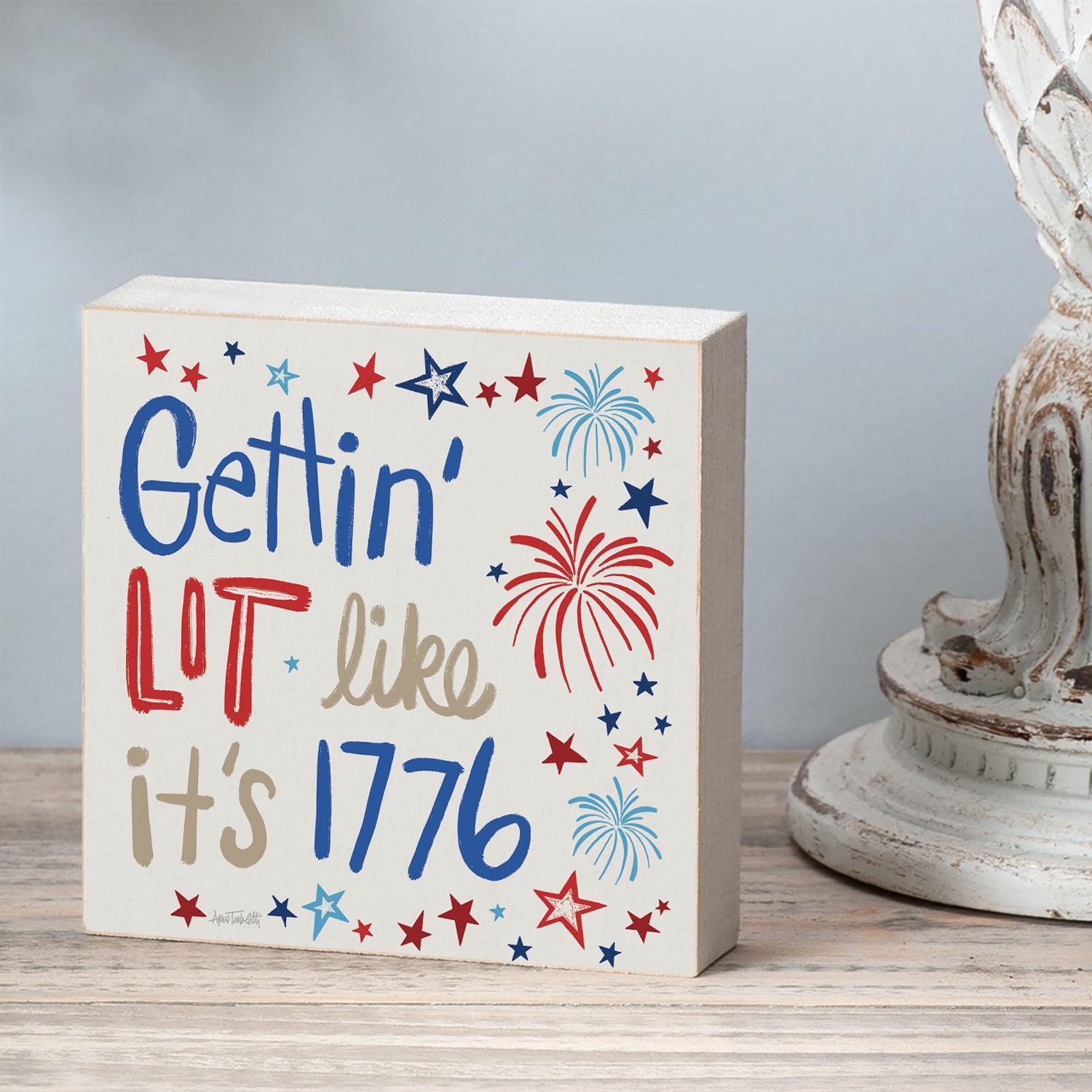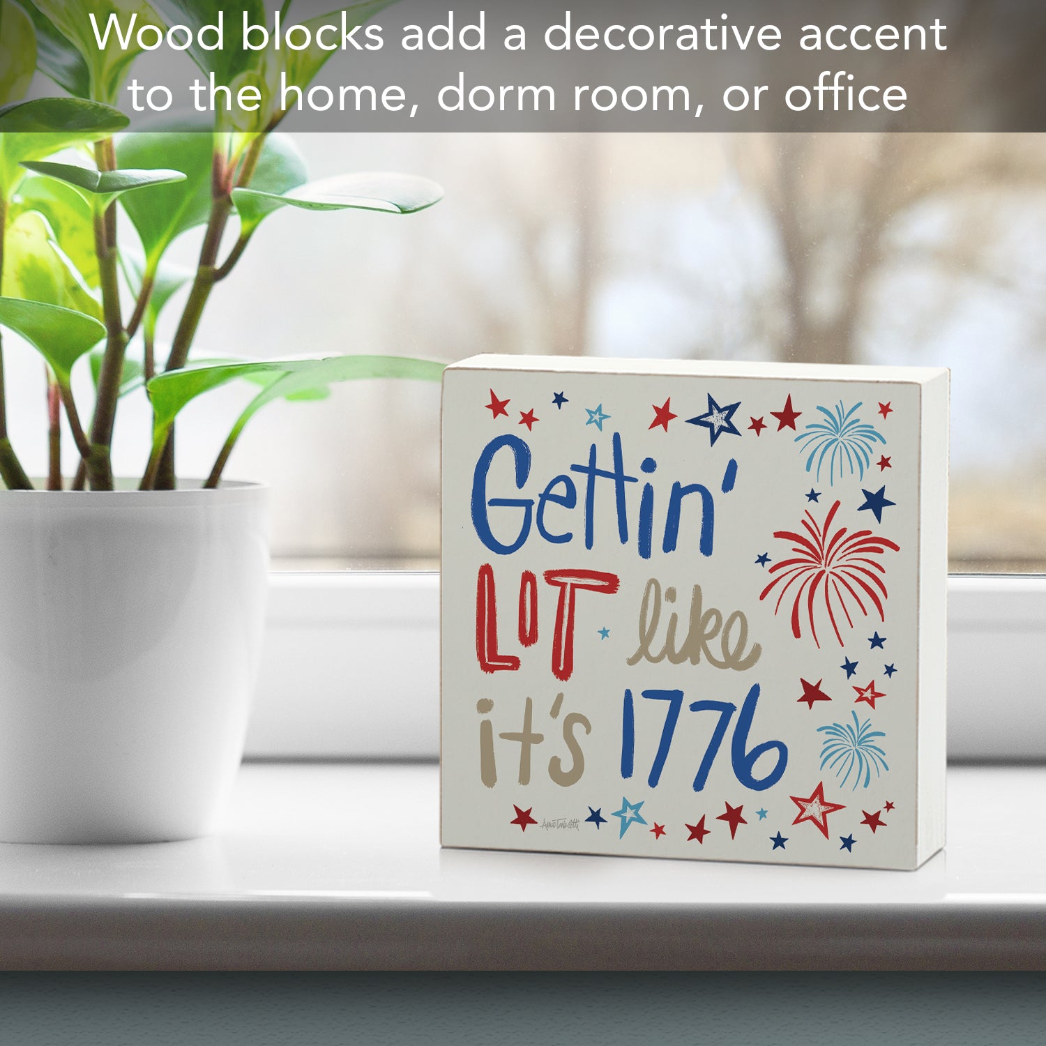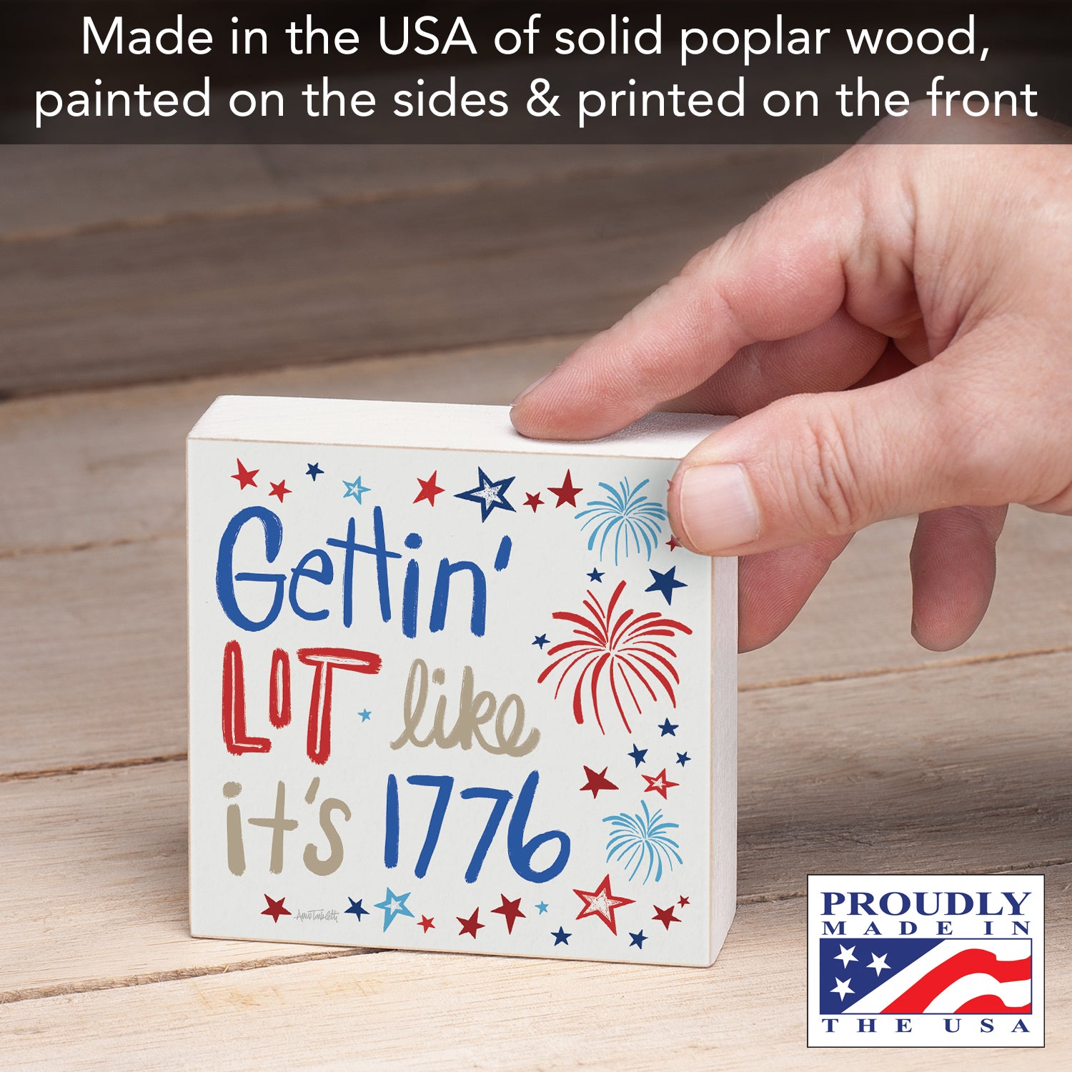Getting Lit Artistic Freestanding Solid Wood Block Sign Made in the USA 3.75” Square