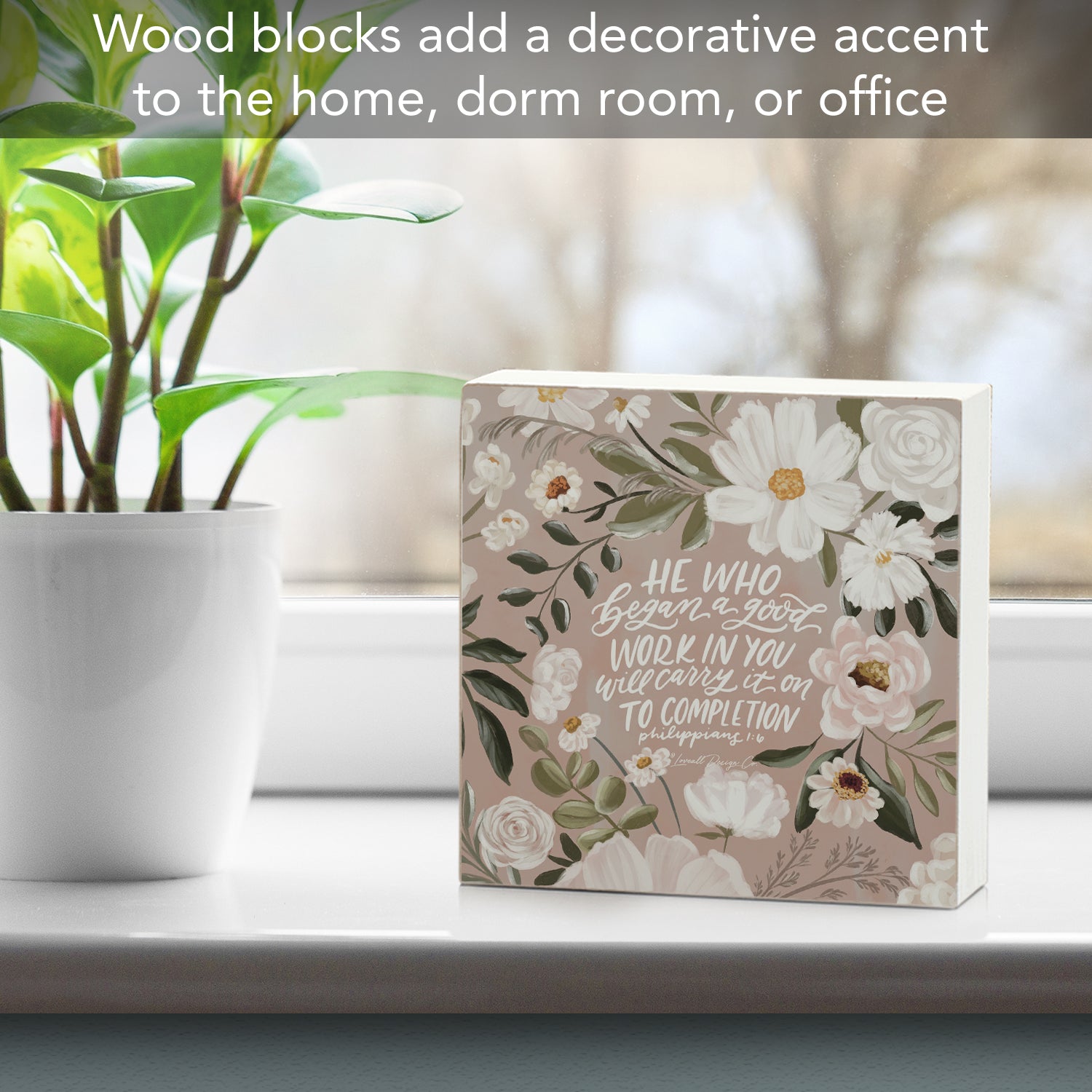 DURABLE-Our Wood Blocks are constructed of solid Poplar Wood. Artistic design and quotes are printed on the front with painted sides and a natural wood back.