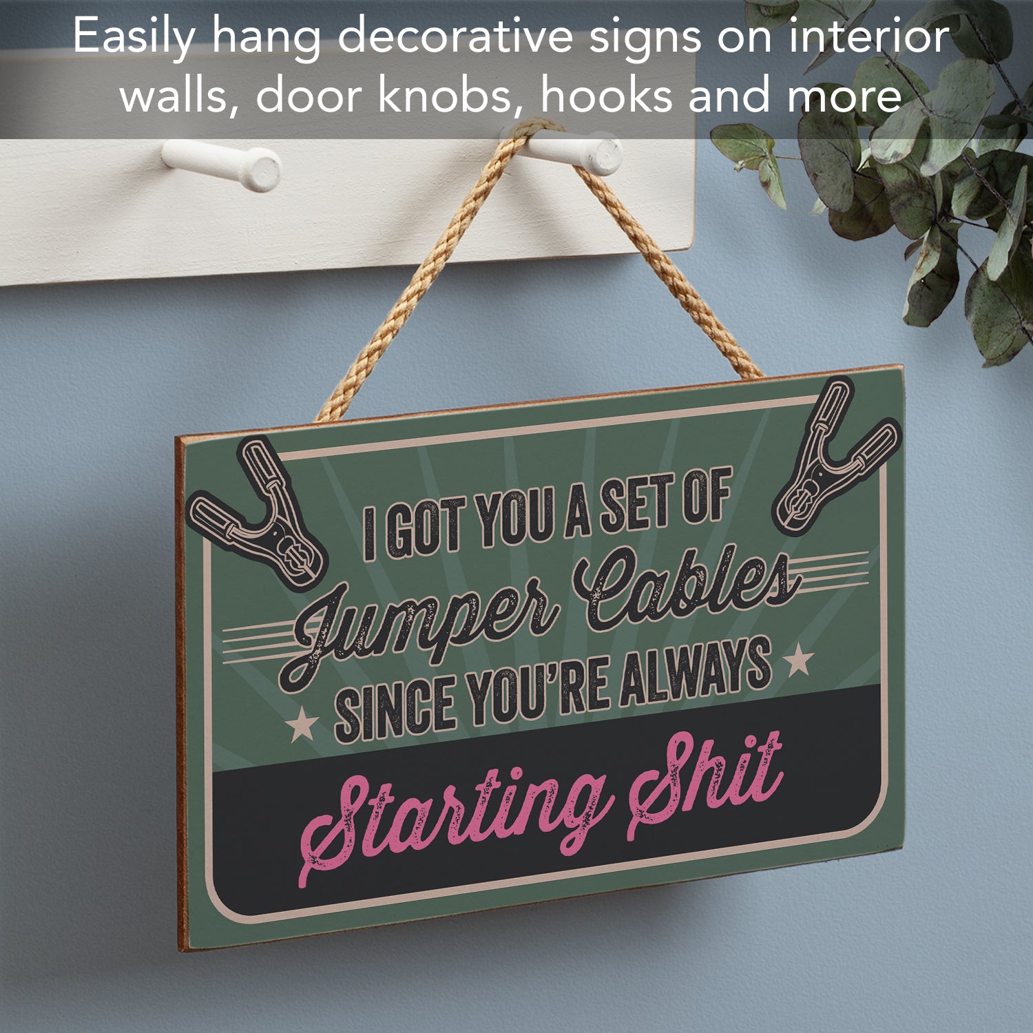 Got You Jumper Cables Decorative Hanging Wood Wall Sign 9.5” by 5.75” Made in the USA