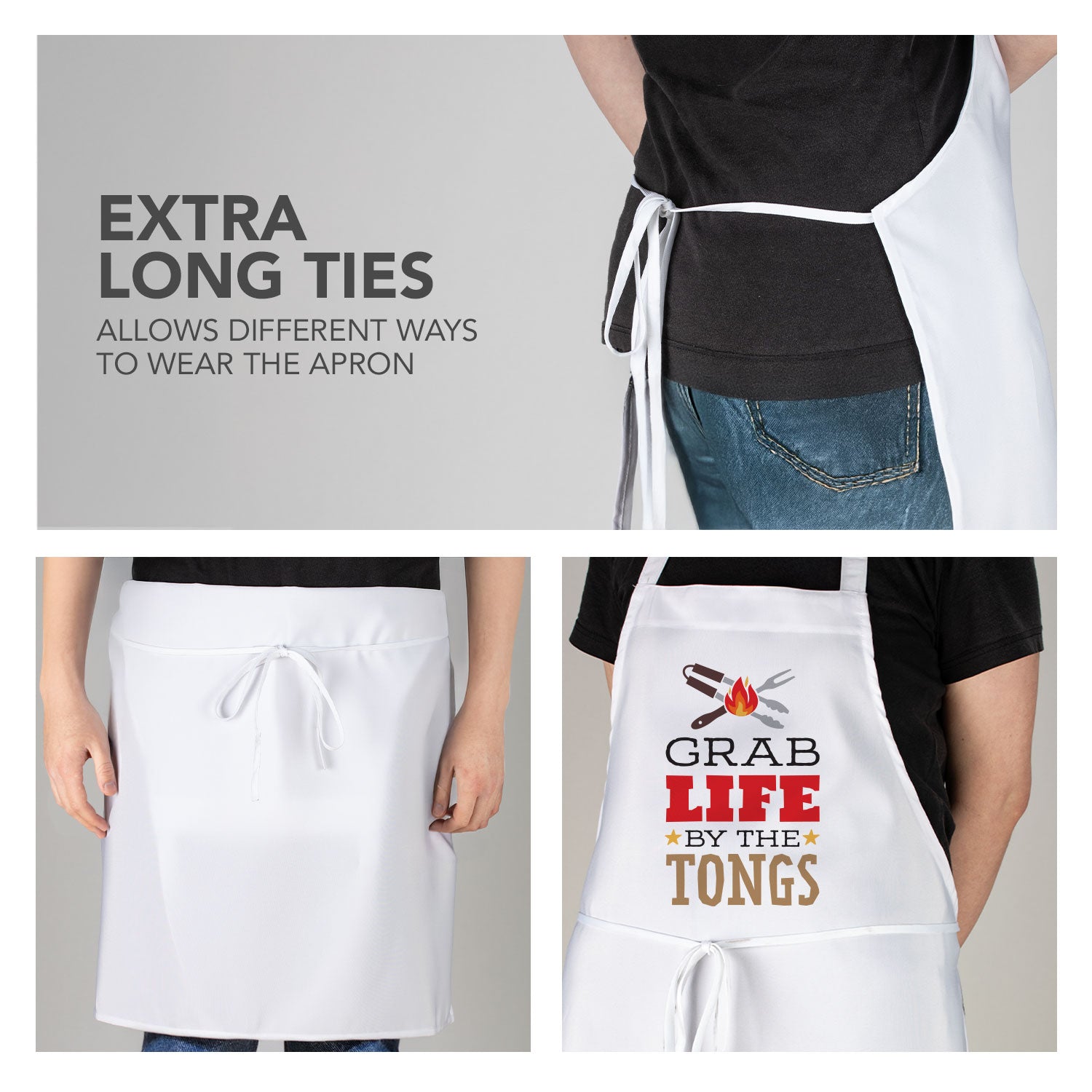 EXTRA LONG TIES-Extra-long ties allow the apron to be worn multiple ways. You can wear the strap around your neck or tie the apron to only cover your mid-section. Material is lightweight so it can be worn on hot days outside.