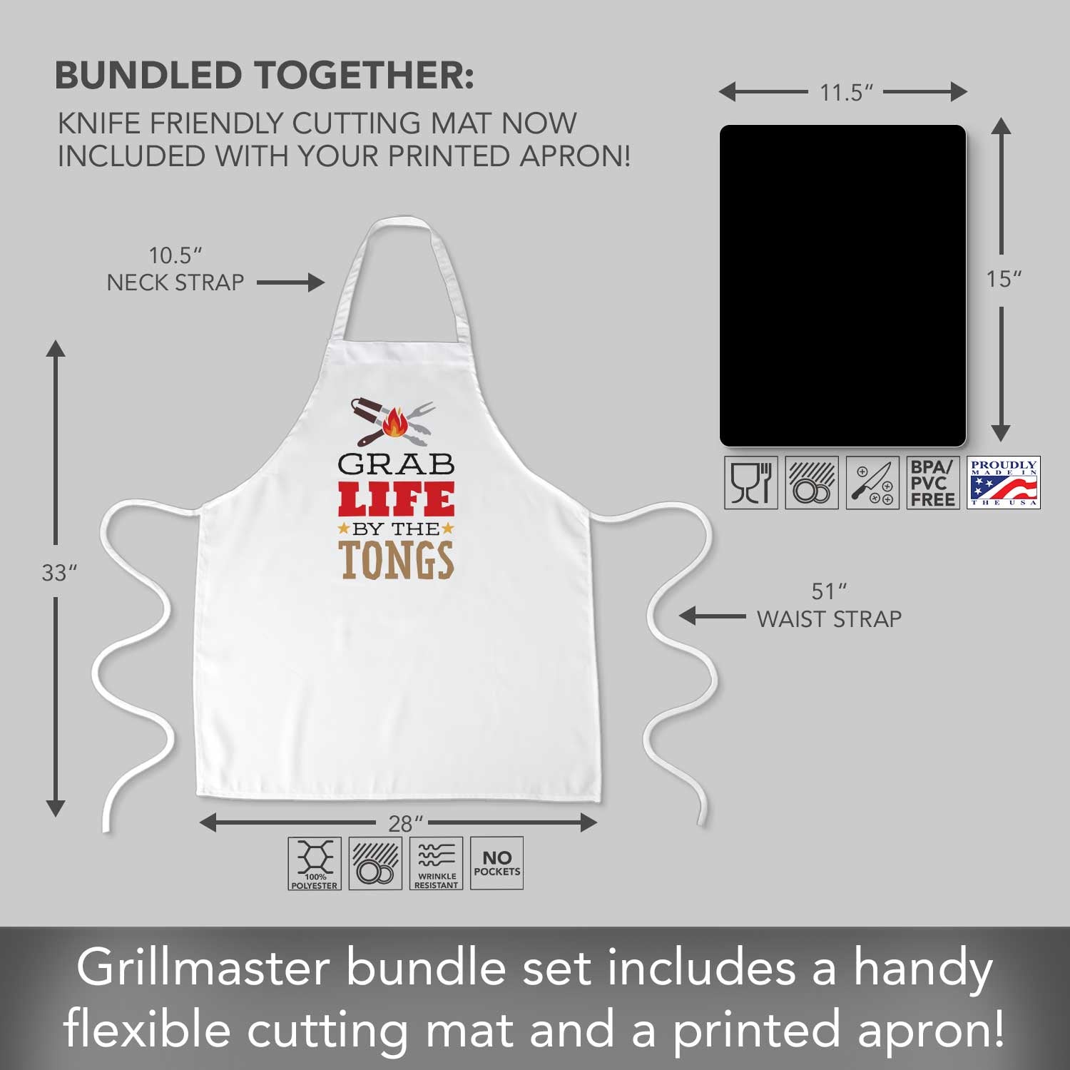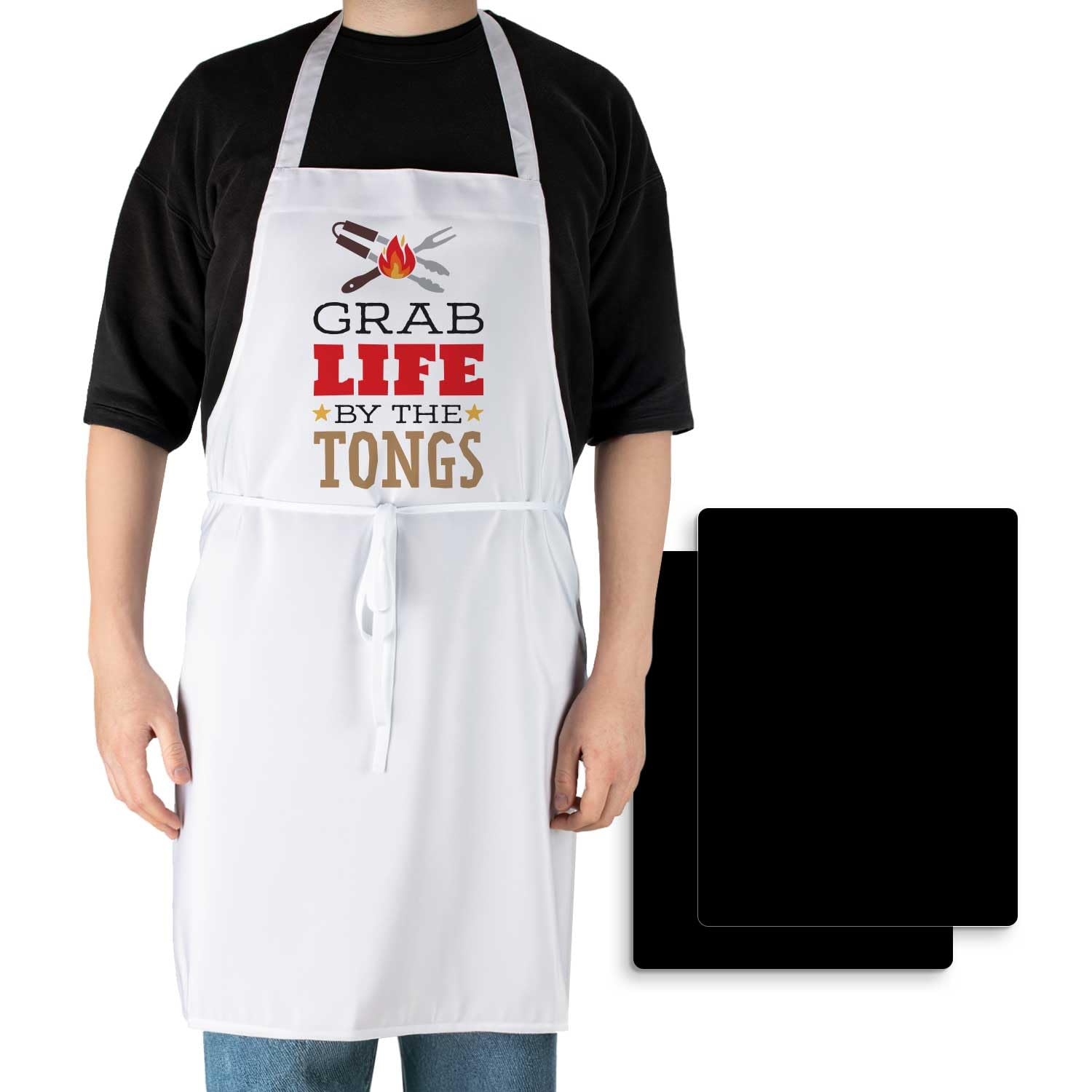 Chef Apron with 2 Pack Black Flex Mats-Grab Life Chef Apron with 2-Pack Black Cutting Board Mats
