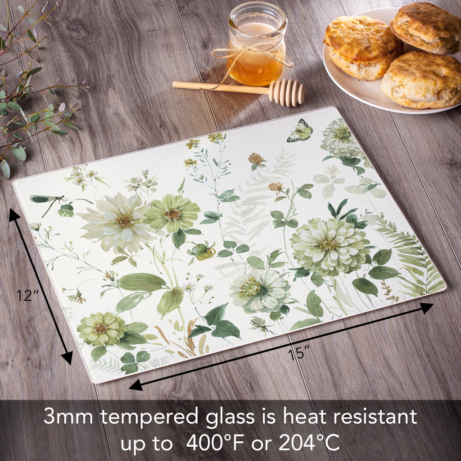 CounterArt Green Fields 3mm Tempered Glass Cutting Board 15" x 12" Manufactured in the USA