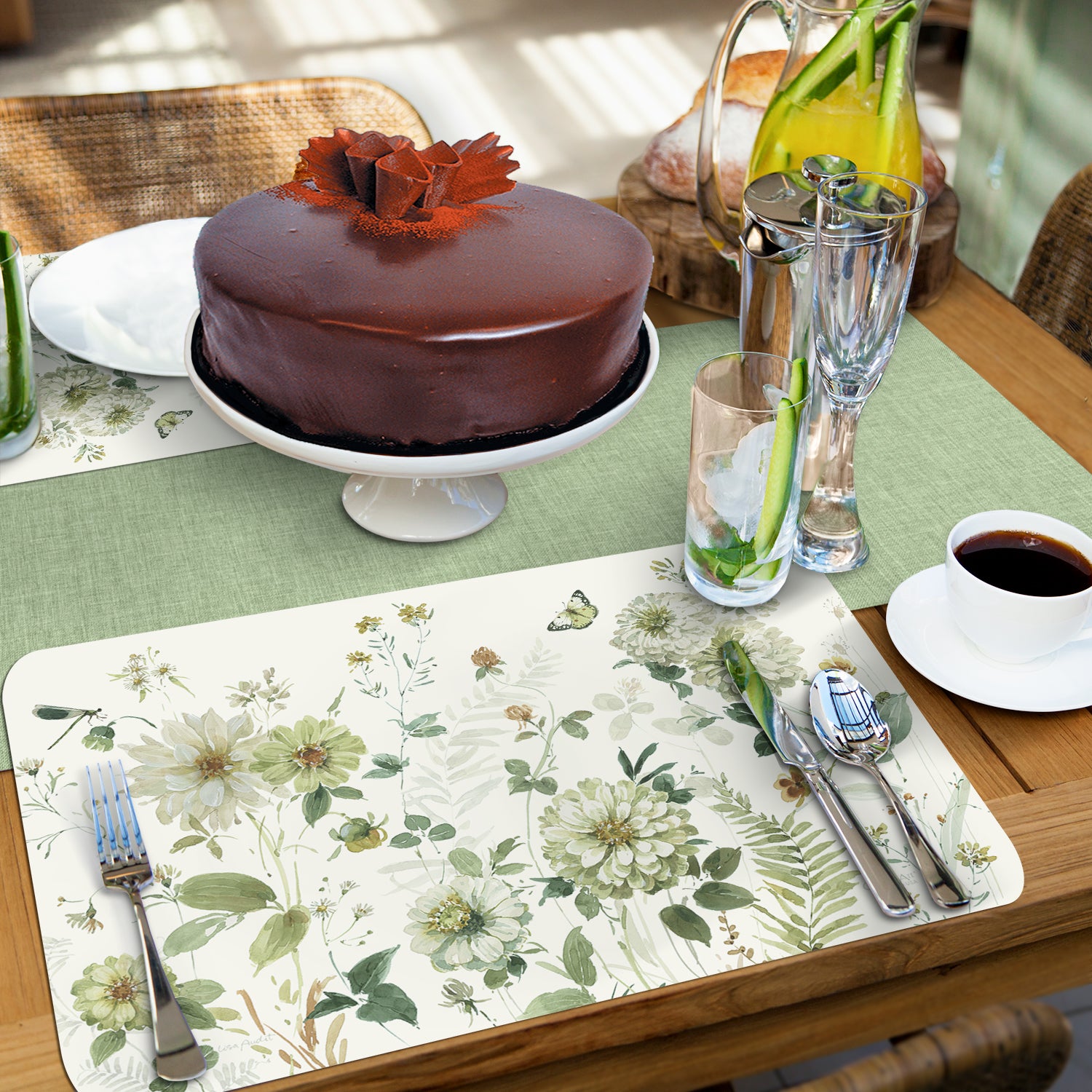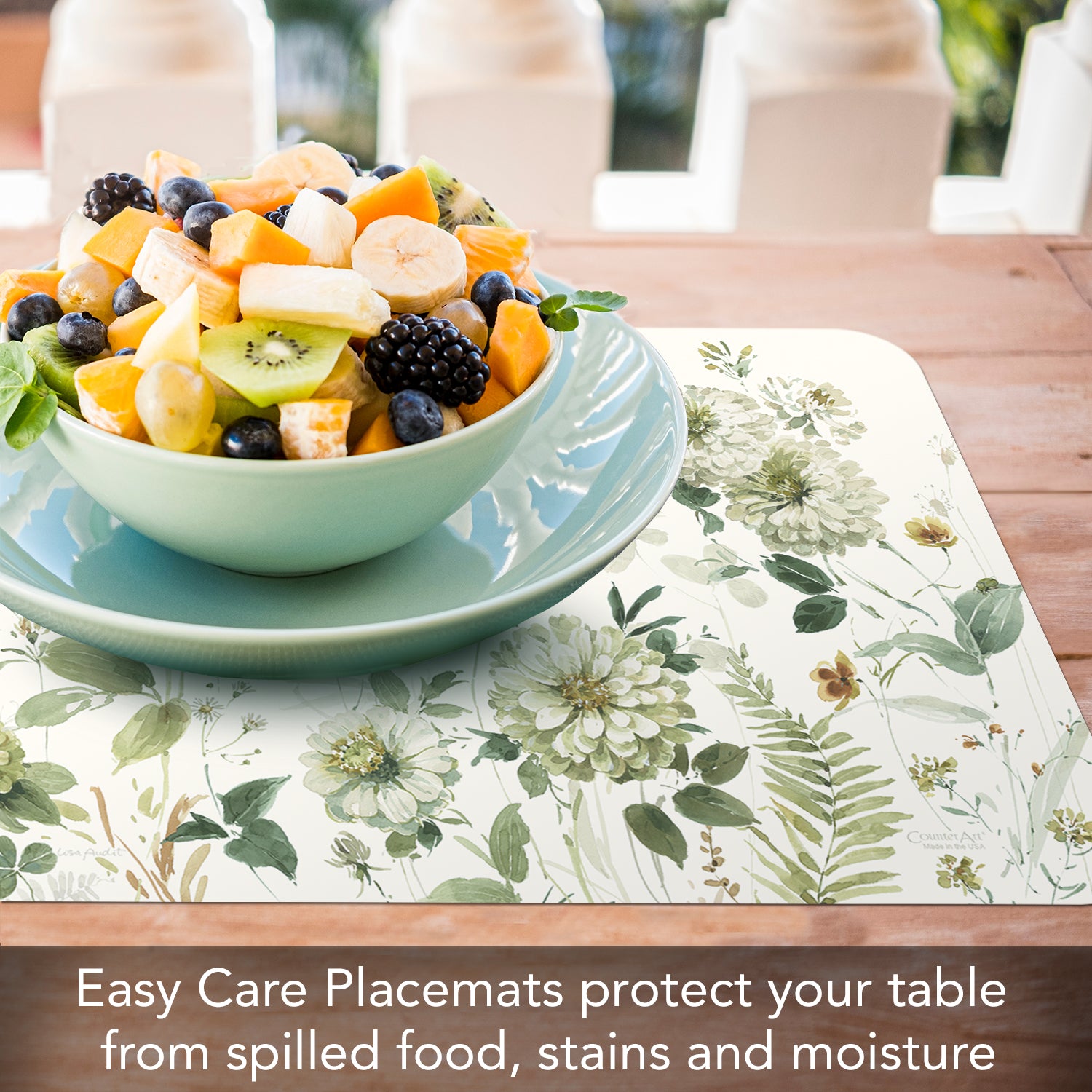 PROTECTS SURFACES-Placemats protect your table or countertop from spilled food, scratches, or stains. Placemat material prevents liquids from soaking through to your surfaces which may cause water rings or damage.