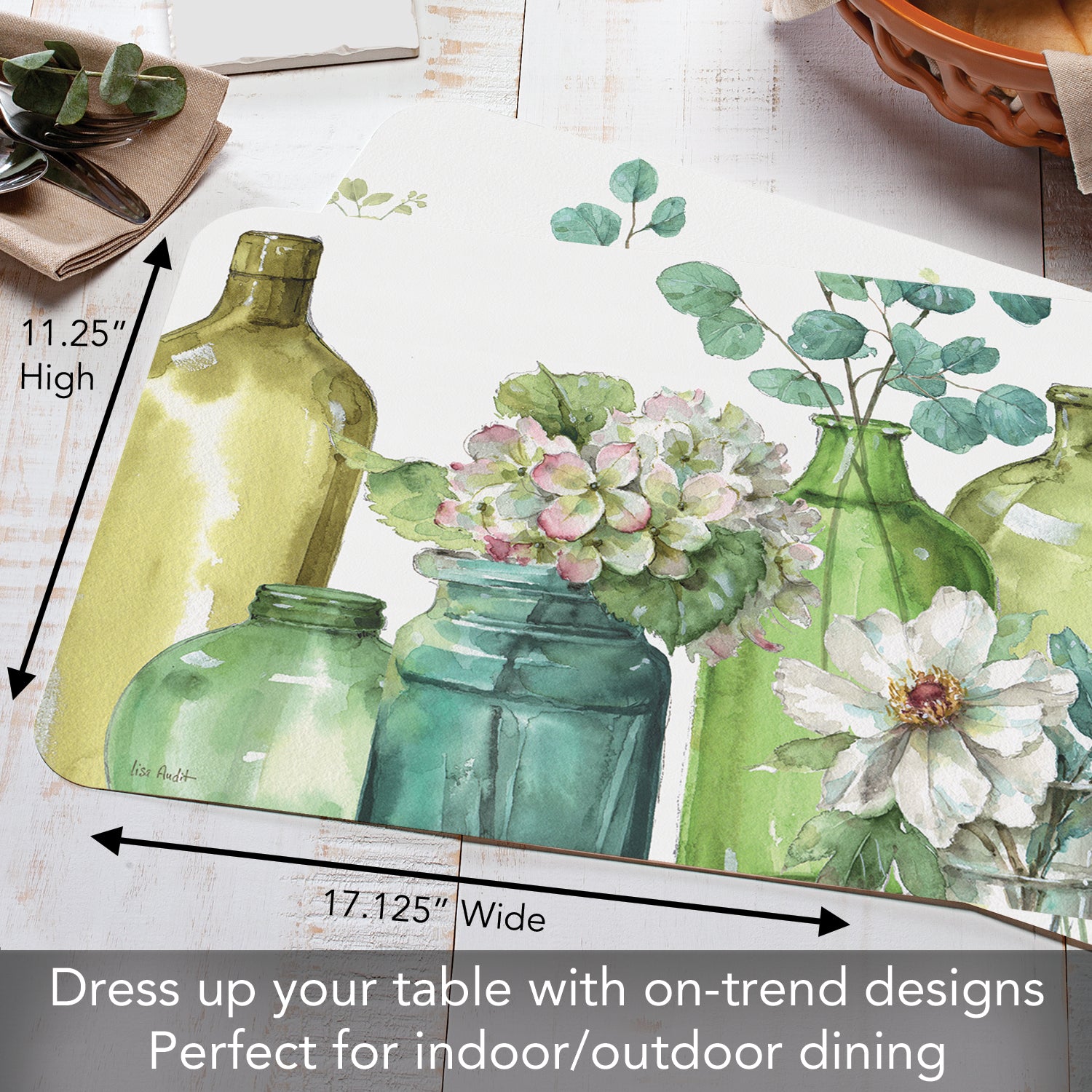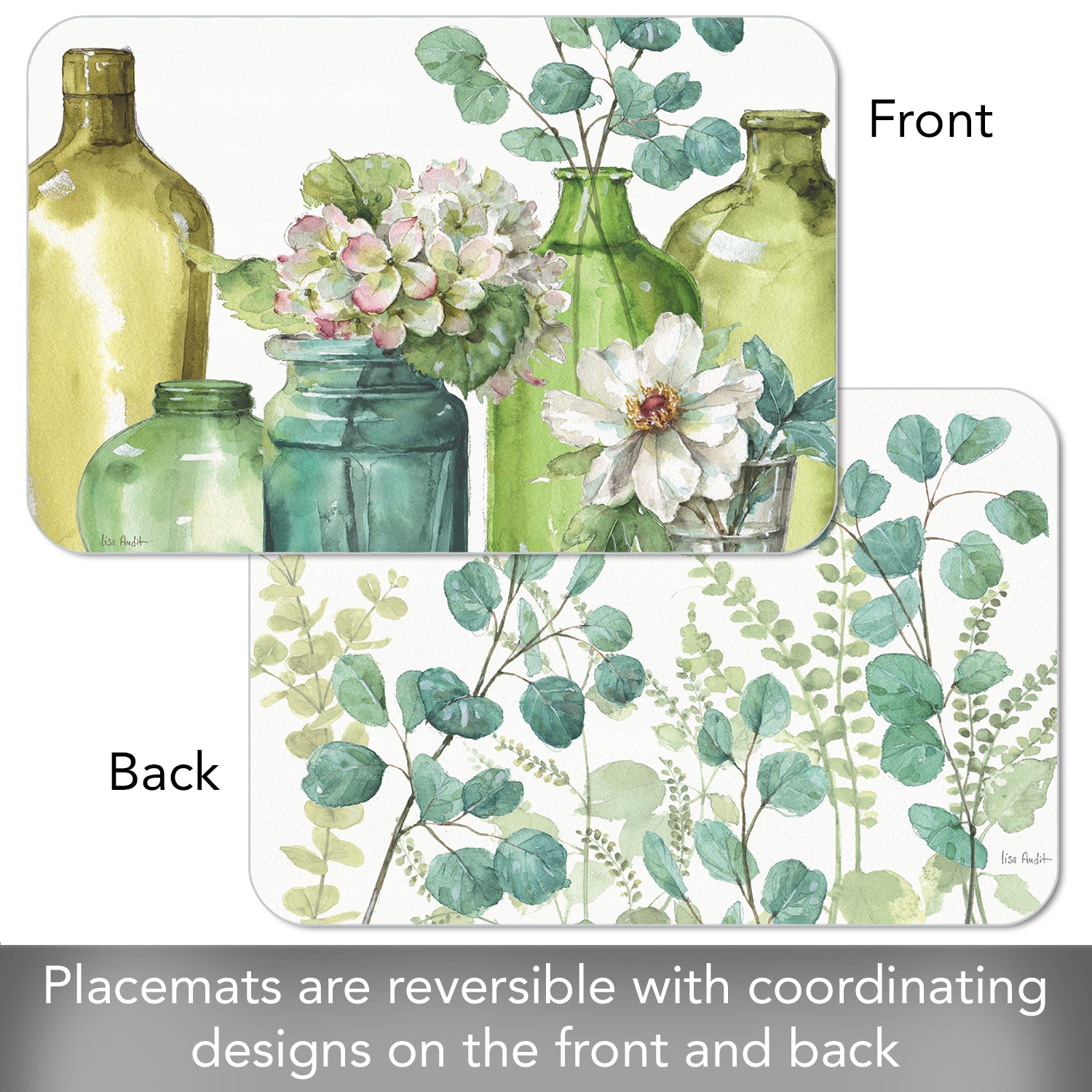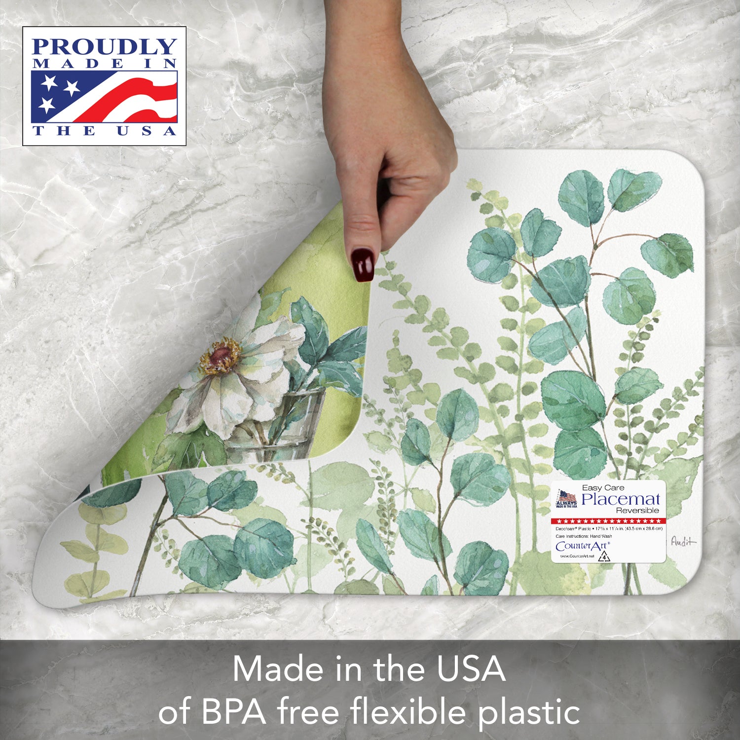 CounterArt Greenery 4 Pack Reversible Easy Care Flexible Placemats Made in the USA