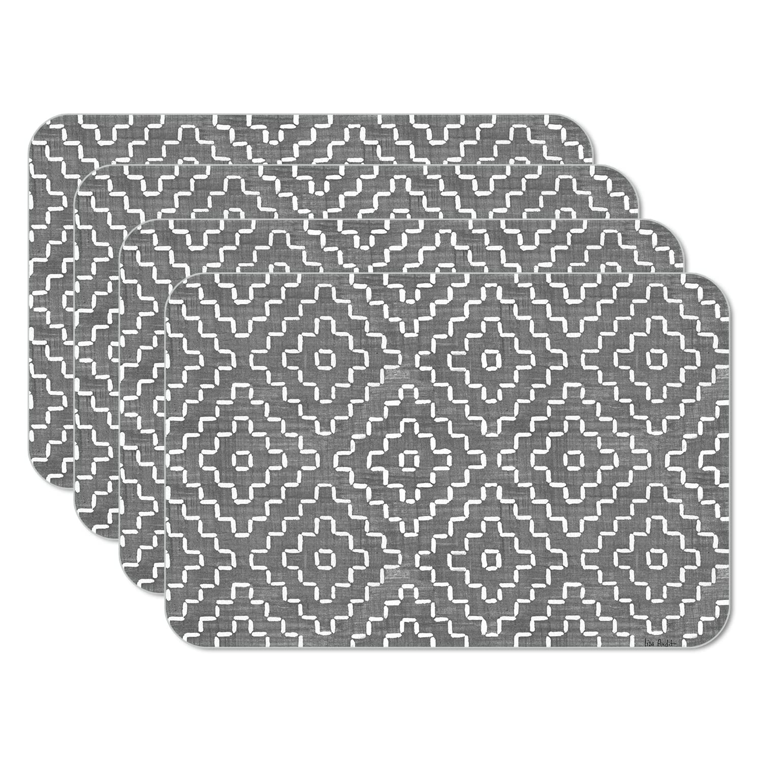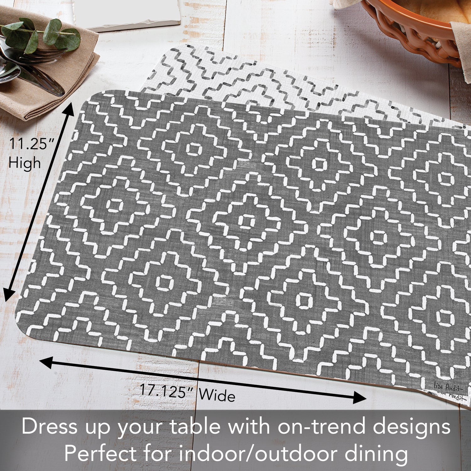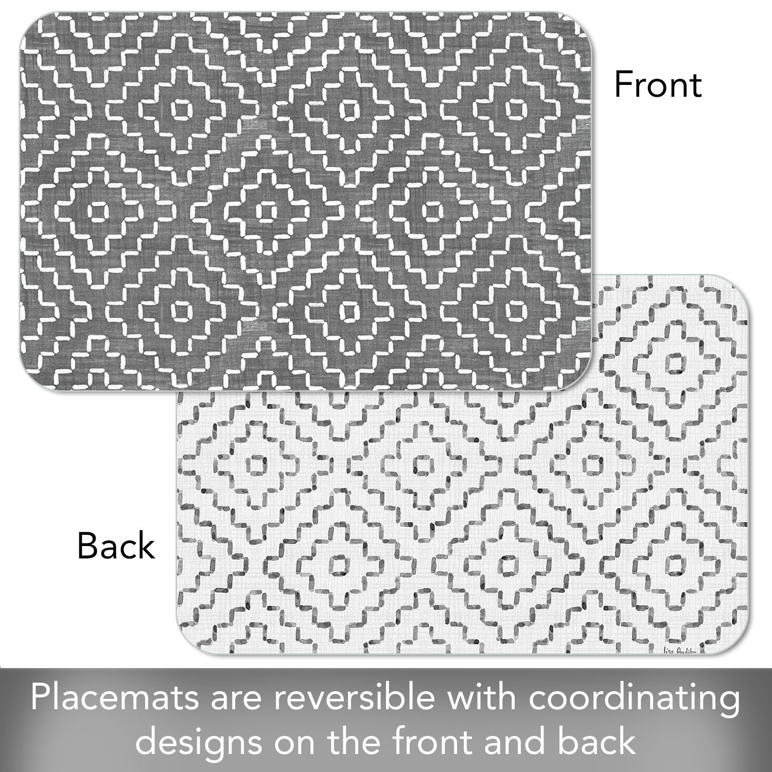 CounterArt Grey Flannel Design 4 Pack Reversible Easy Care Flexible Placemats Made in the USA