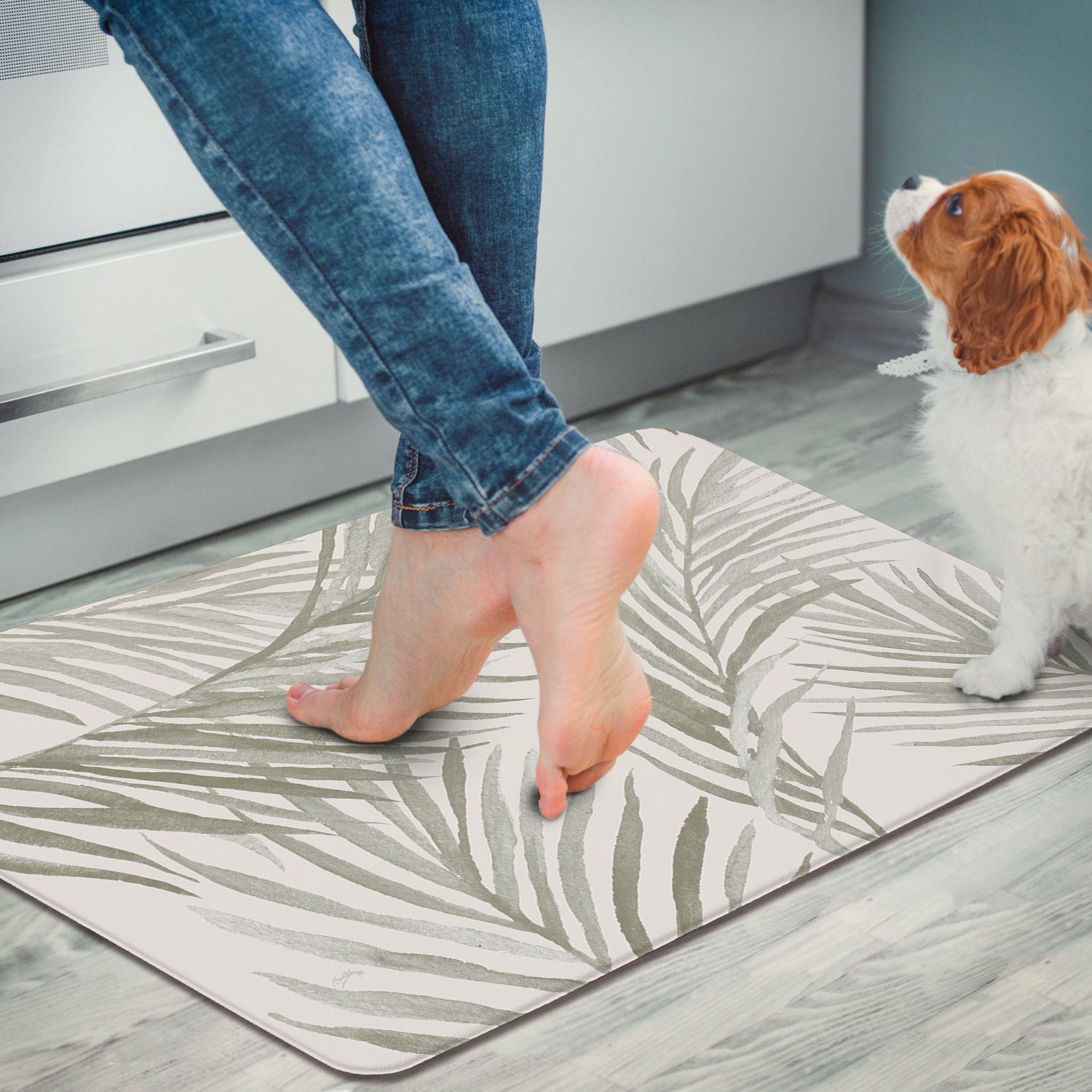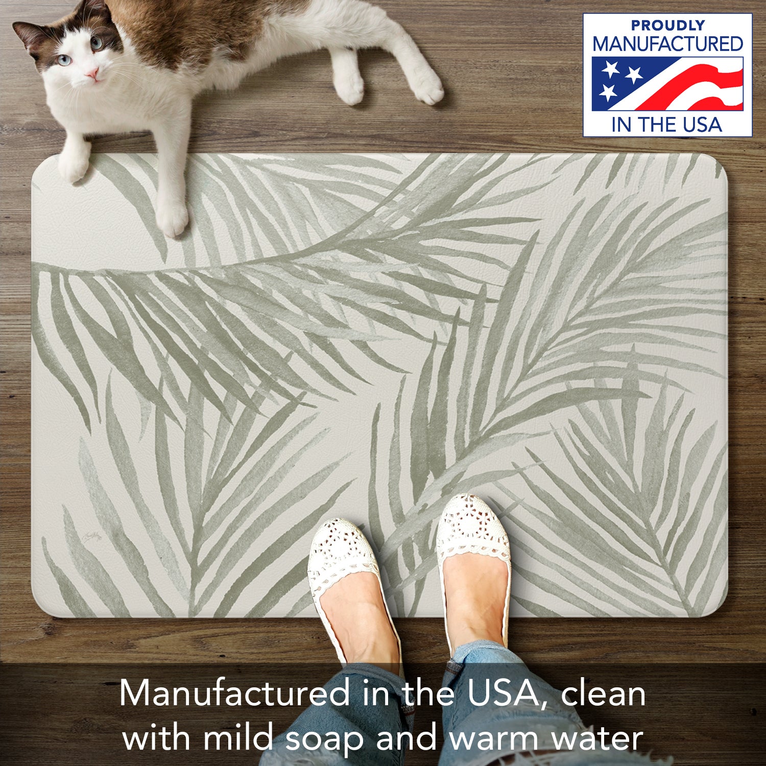 Grey Palm Fronds 30” x 20” Decorative Vinyl Comfort Floor Mat Manufactured in the USA