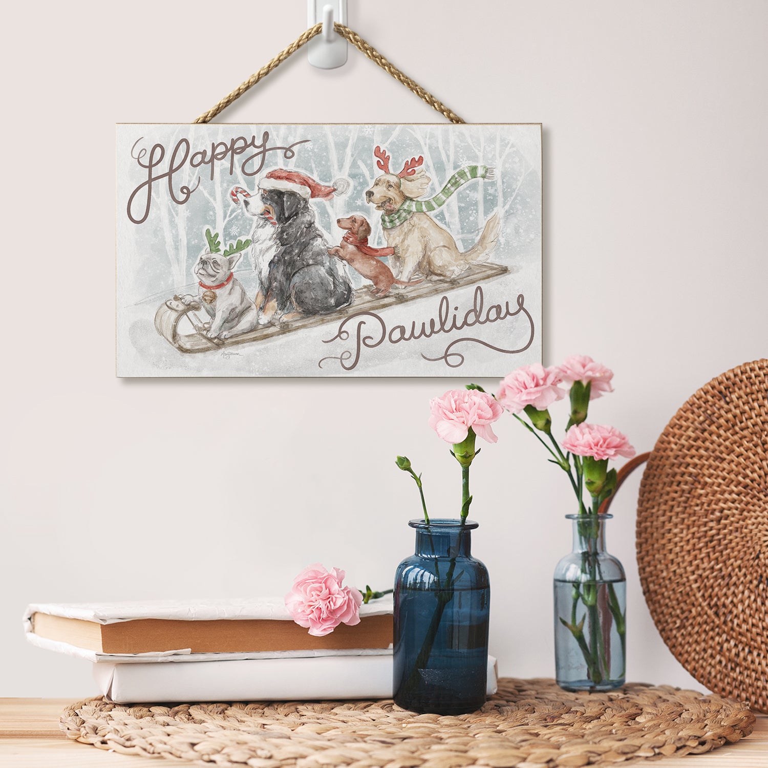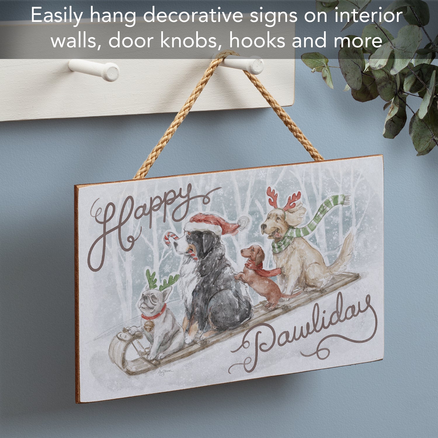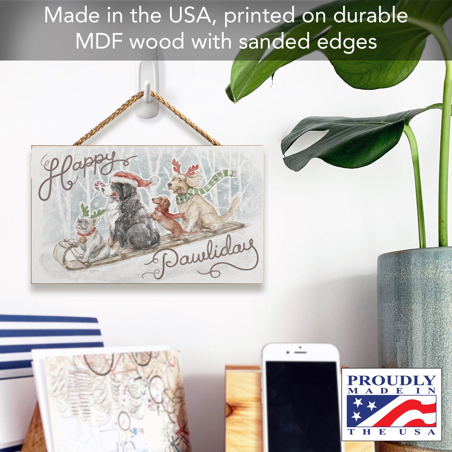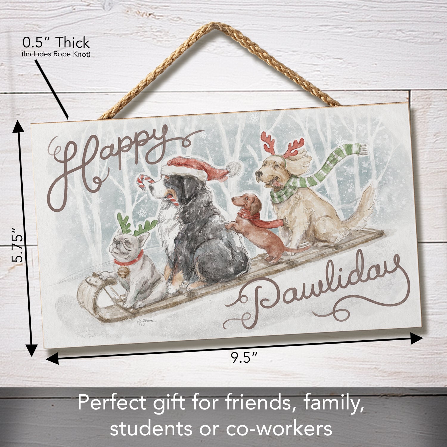 Happy Pawliday Decorative Hanging Wood Sign 9.5” by 5.75” Made in the USA
