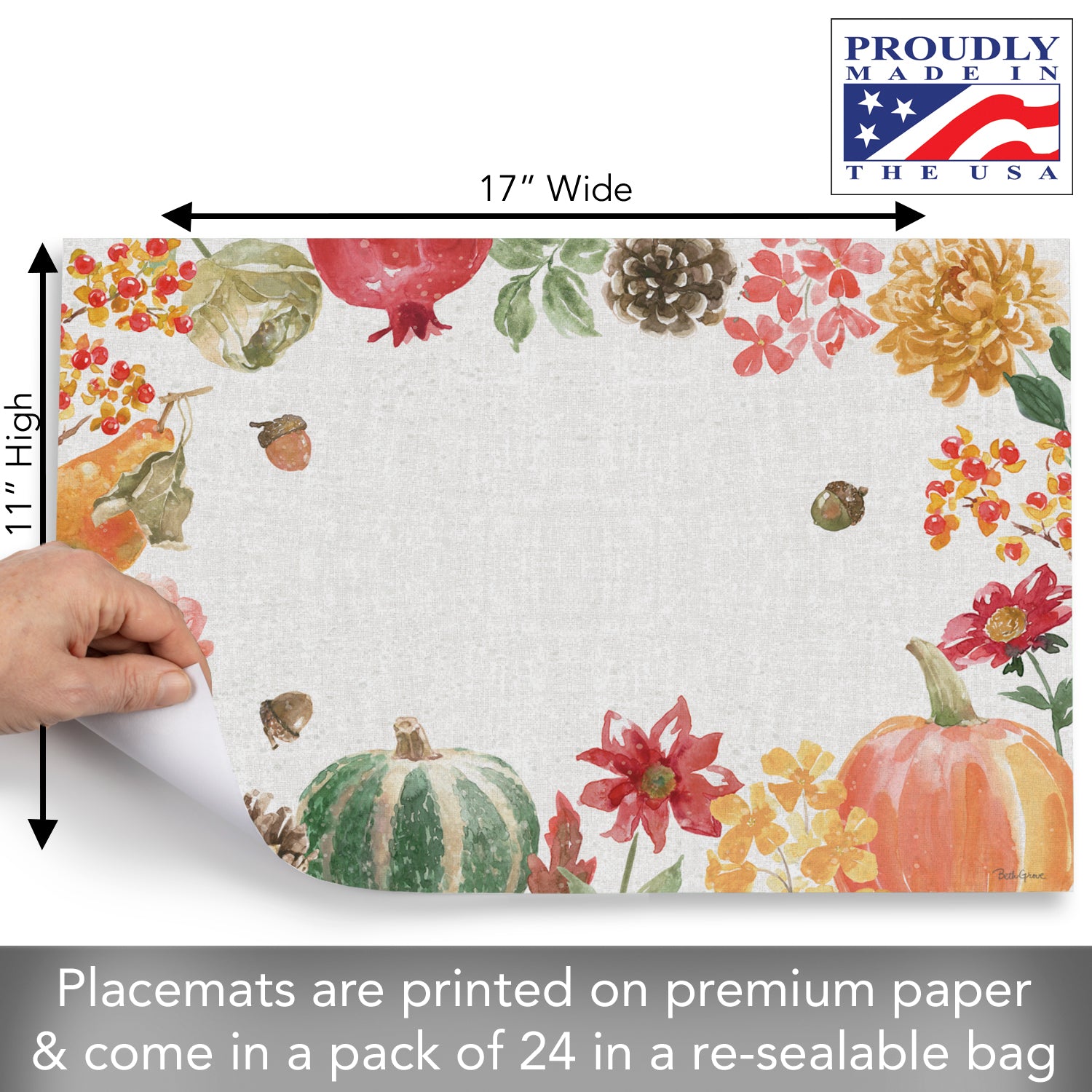 Harvest 24 Premium Paper Placemats in Resealable Storage Bag Made in the USA 17" x 11"