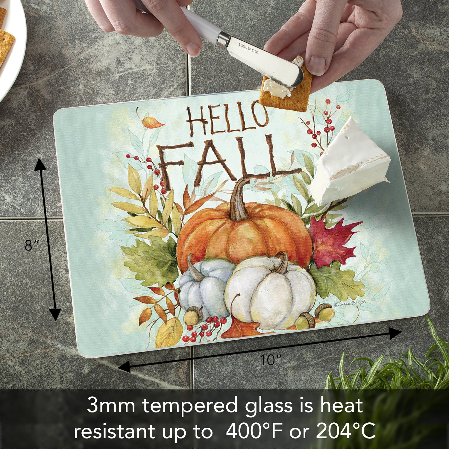 CounterArt Harvest Blessings 3mm Tempered Glass Cutting Board 10” x 8” Manufactured in the USA