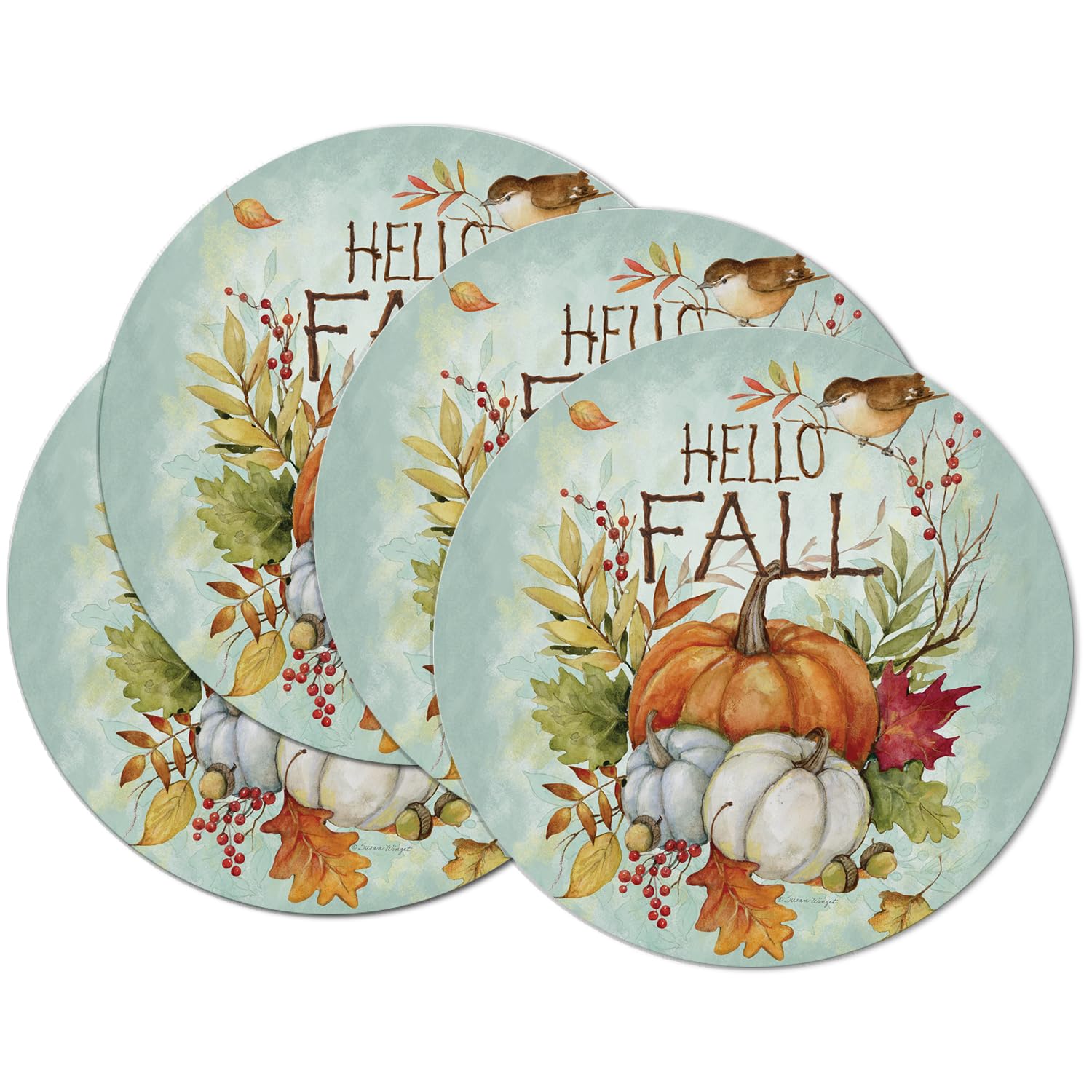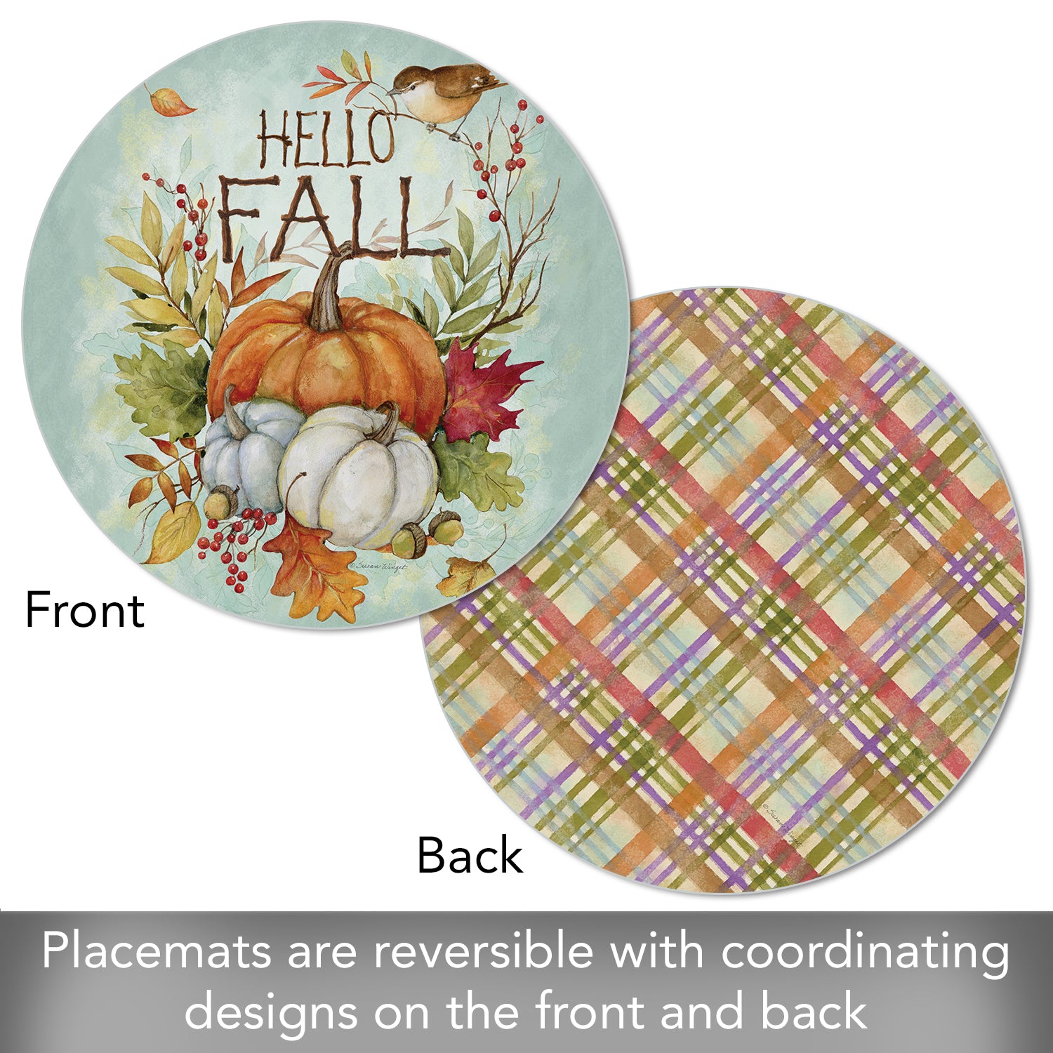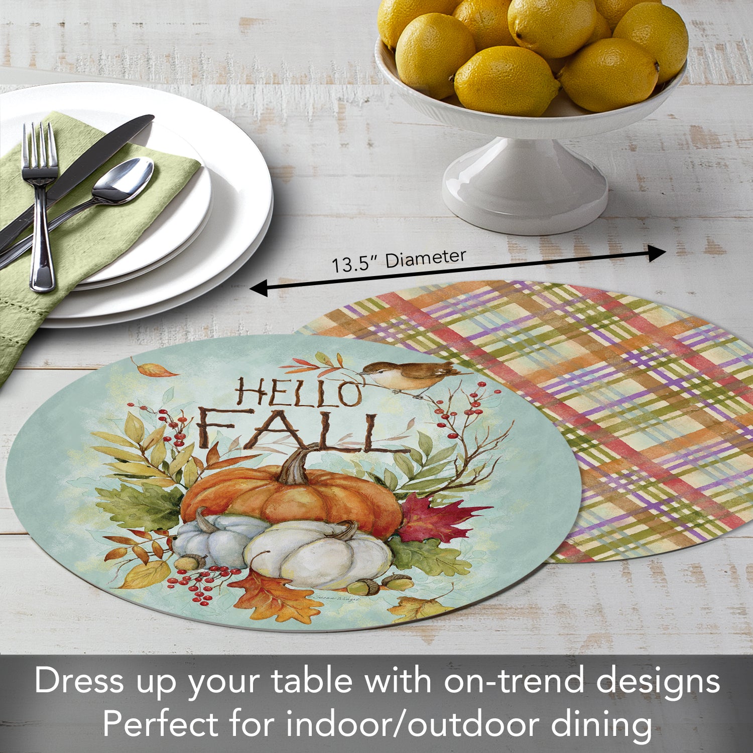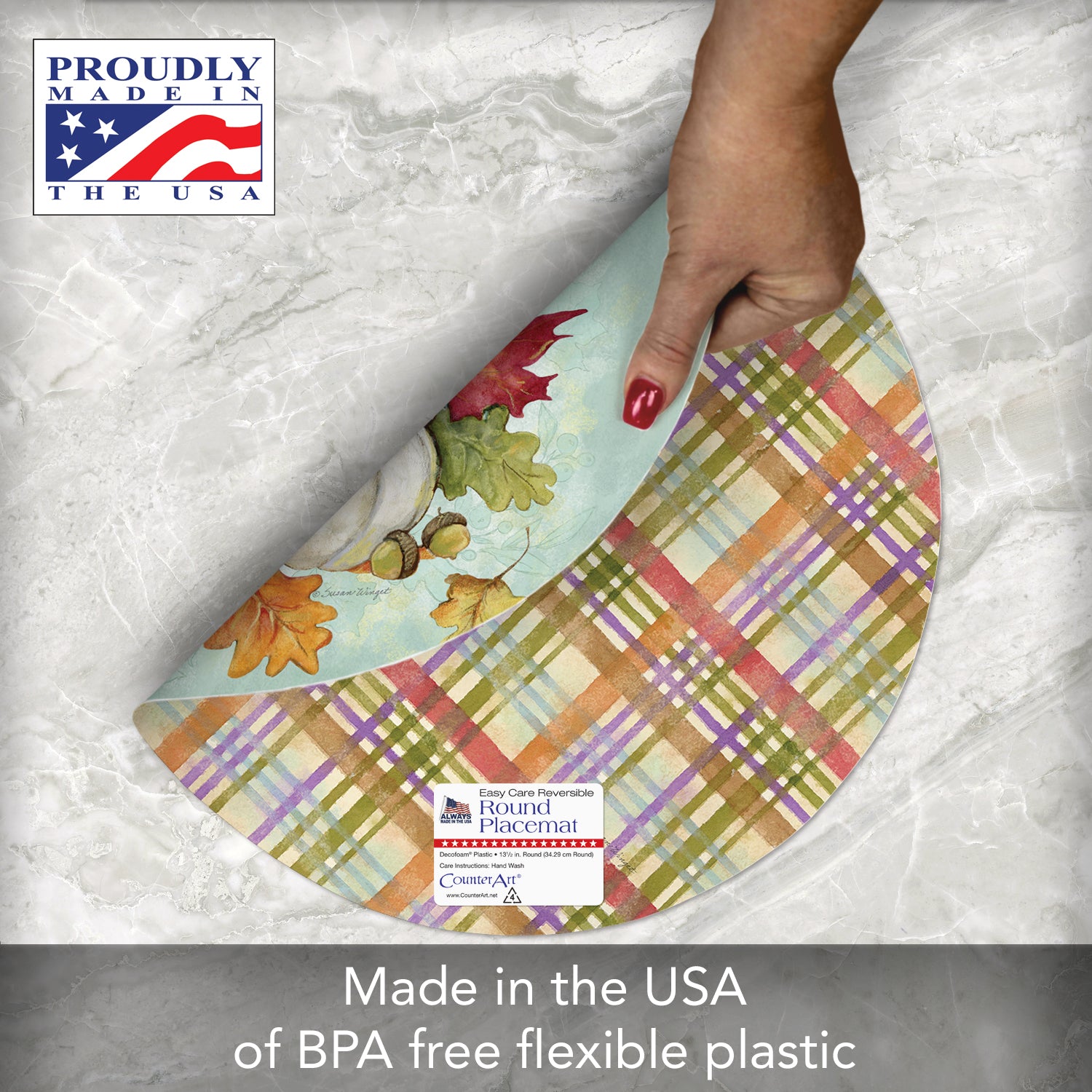 CounterArt Harvest Blessing 4 Pack Round Reversible Easy Care Flexible Placemats Made in the USA