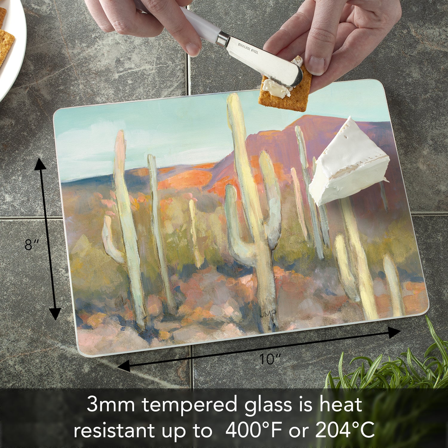 CounterArt High Desert 3mm Tempered Glass Cutting Board 10” x 8” Manufactured in the USA