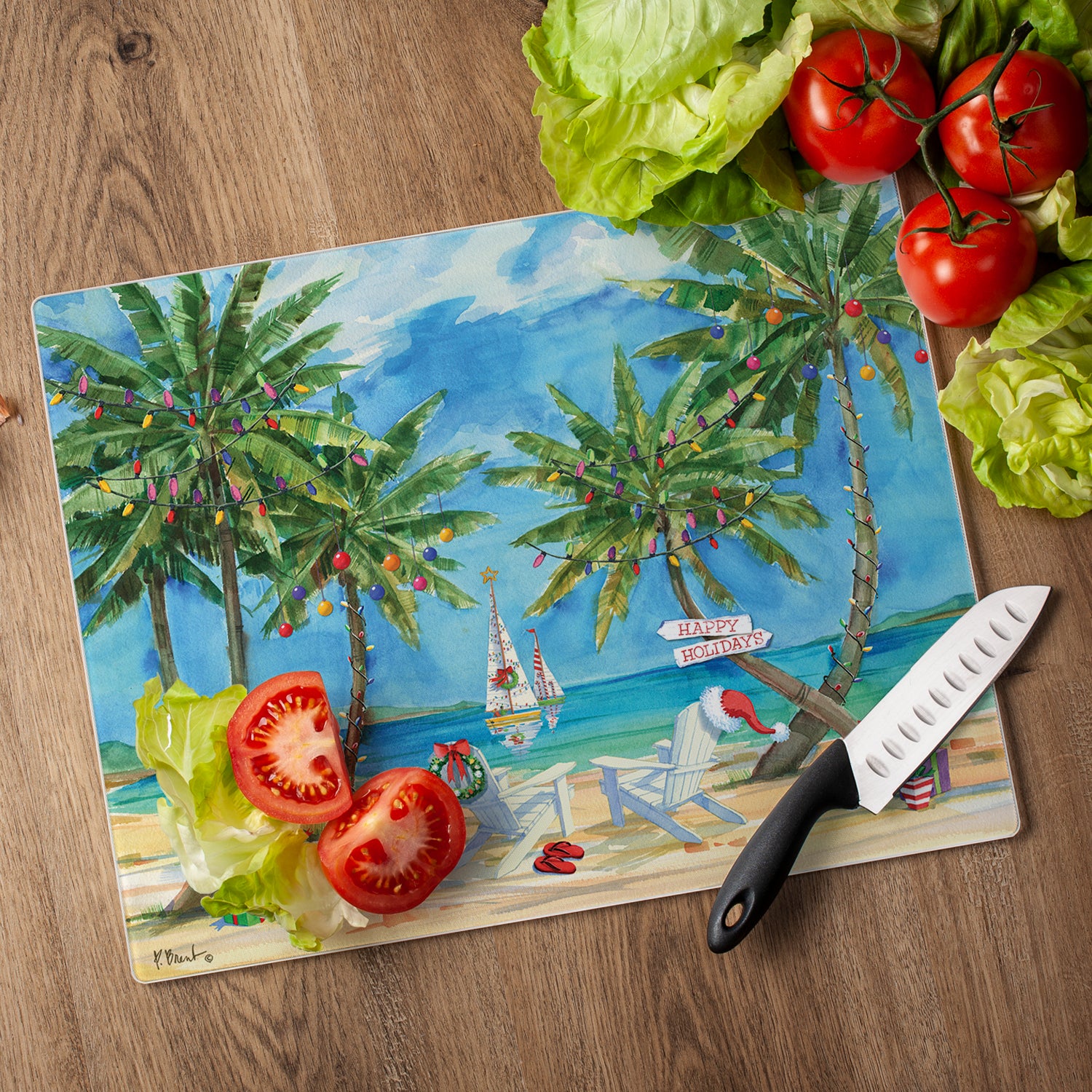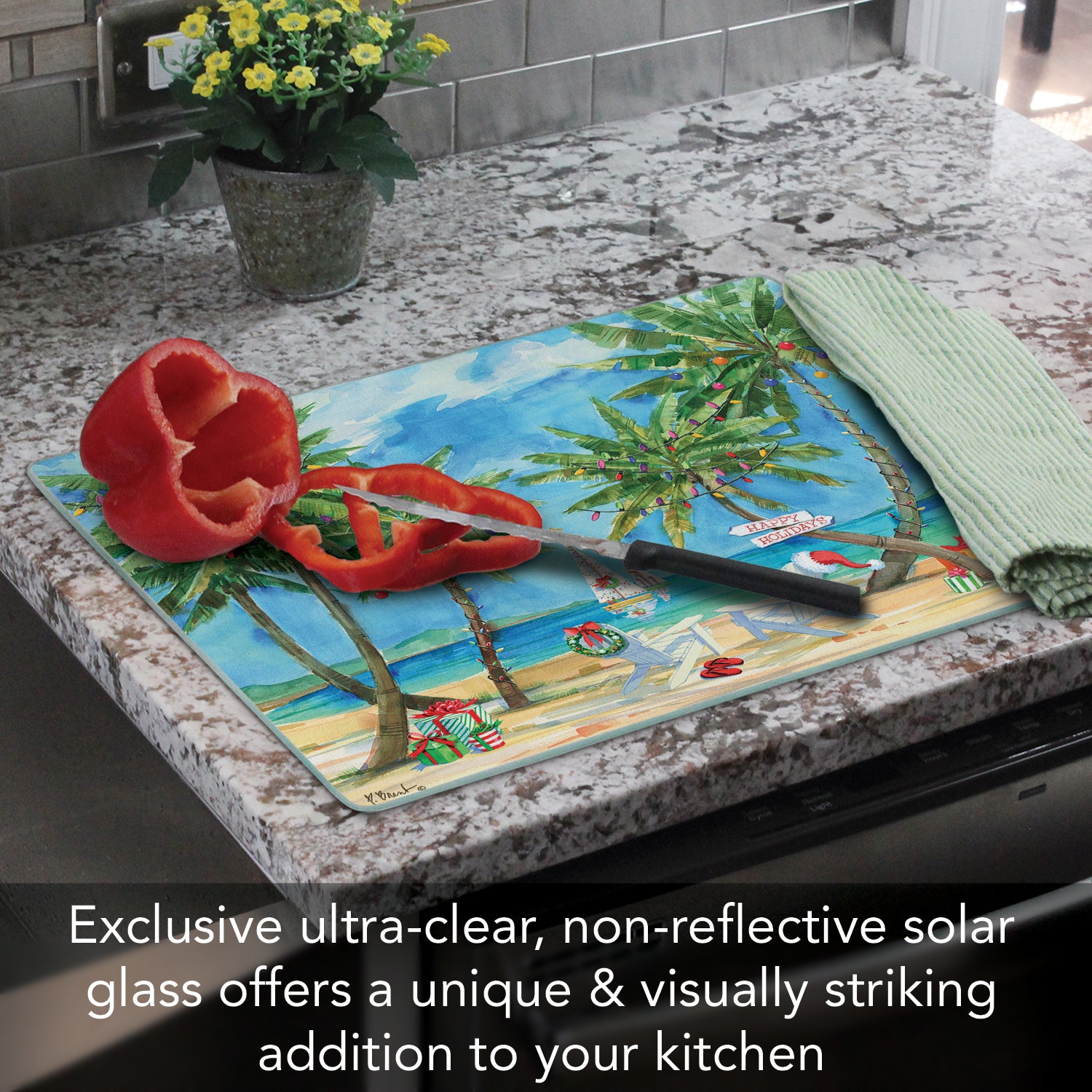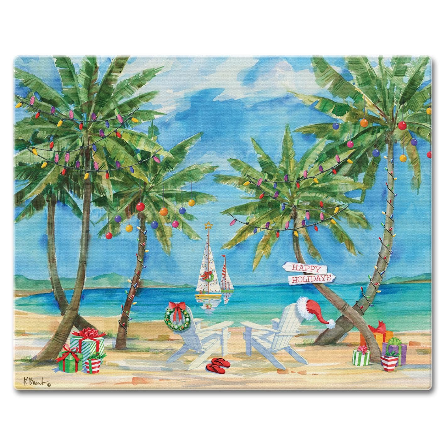 CounterArt Holiday Palms 3mm Tempered Glass Cutting Board 15" x 12" Manufactured in the USA
