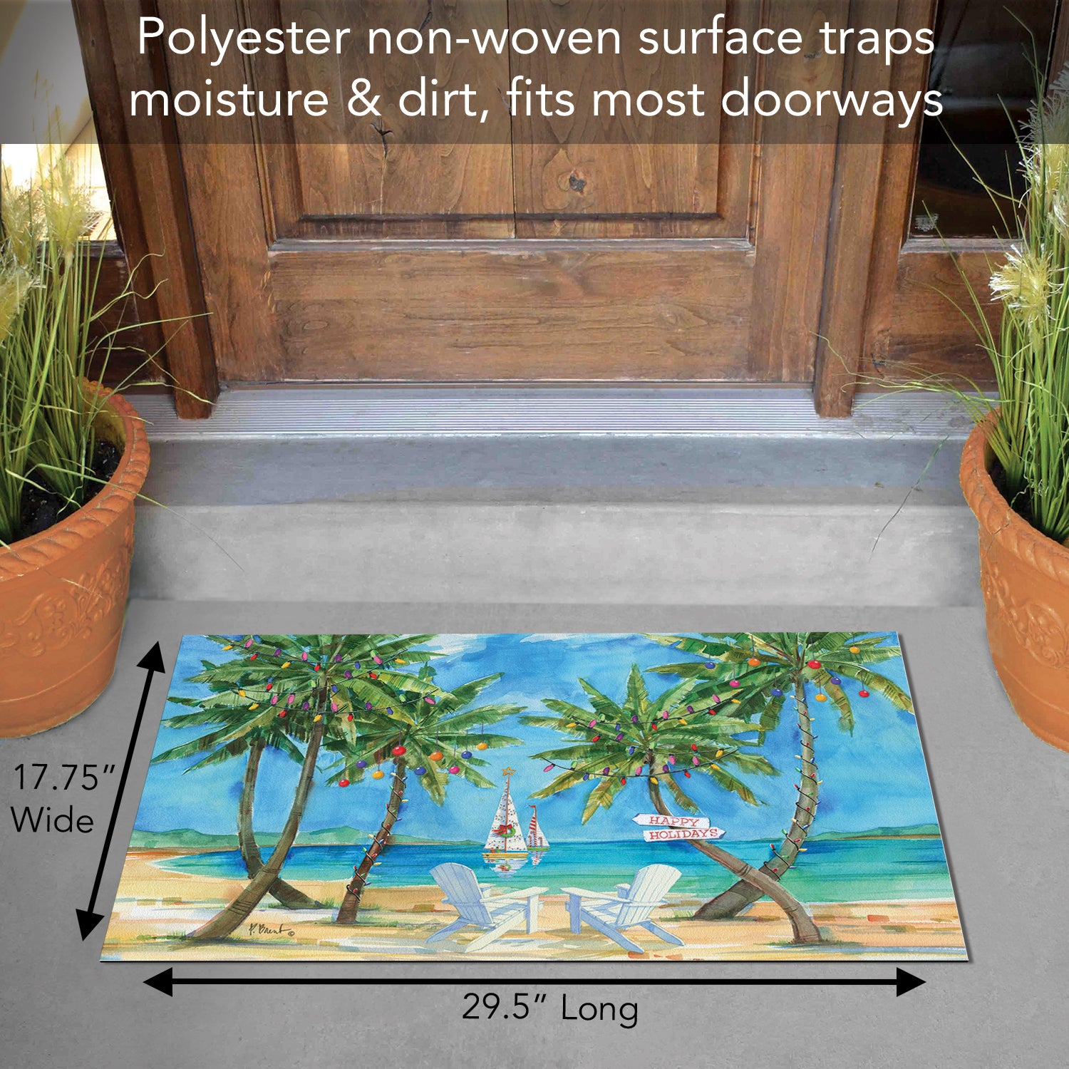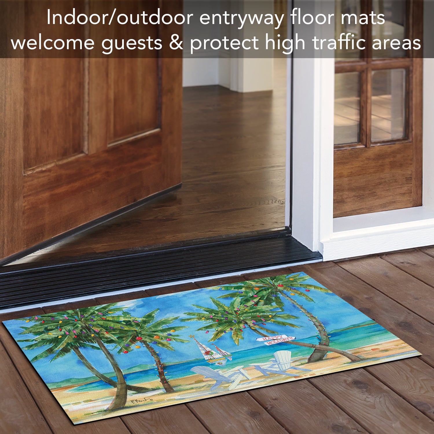 Counterart Holiday Palms Indoor/Outdoor Entryway Floor Mat Manufactured in the USA 29.5" by 17.75"