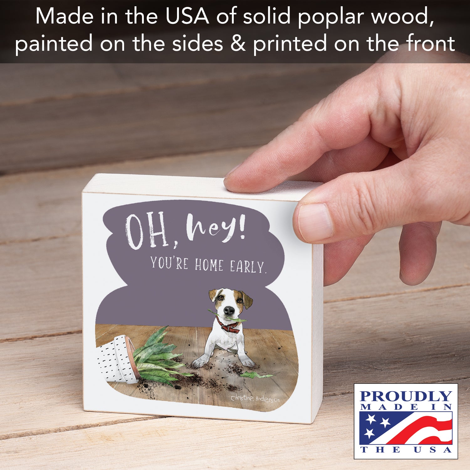 DURABLE-Our Wood Blocks are constructed of solid Poplar Wood. Artistic design and quotes are printed on the front with painted sides and a natural wood back.