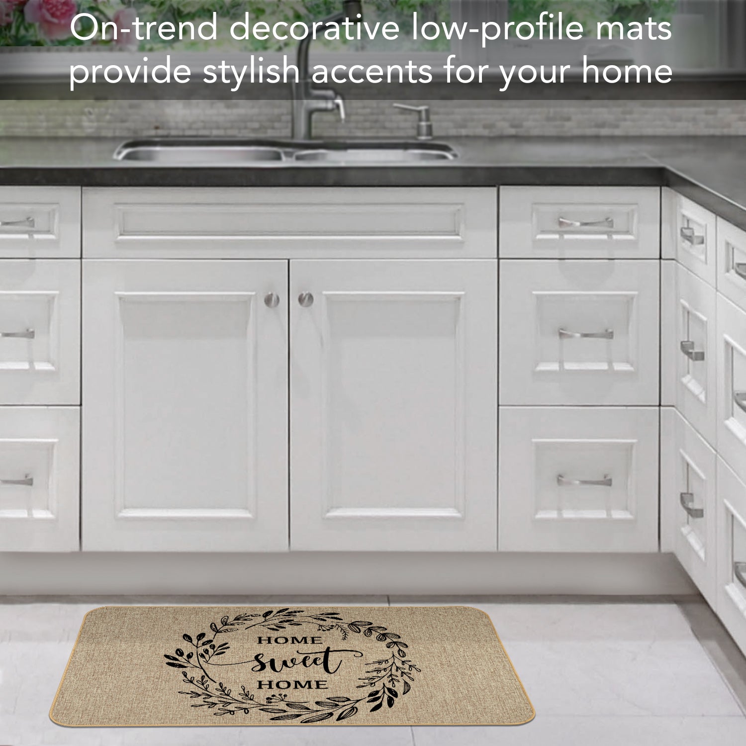 LOW PROFILE/ALL FLOOR TYPES- Textured Rubber backing allows the Floor Mat to be placed on any floor type whether it be tile, wood, or carpet. Low profile prevents tripping hazard. Rubber backing keeps the mat in place.