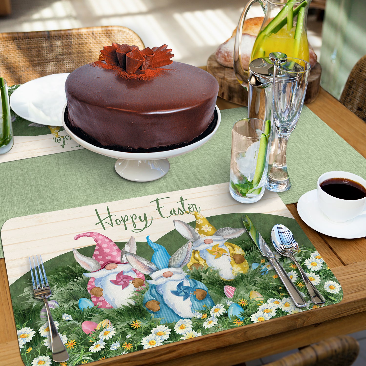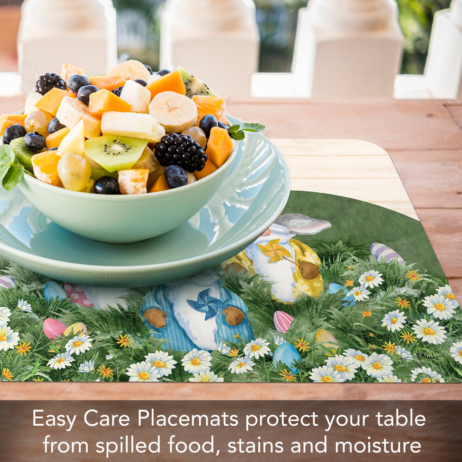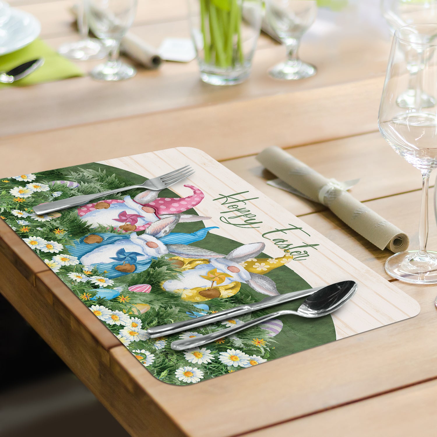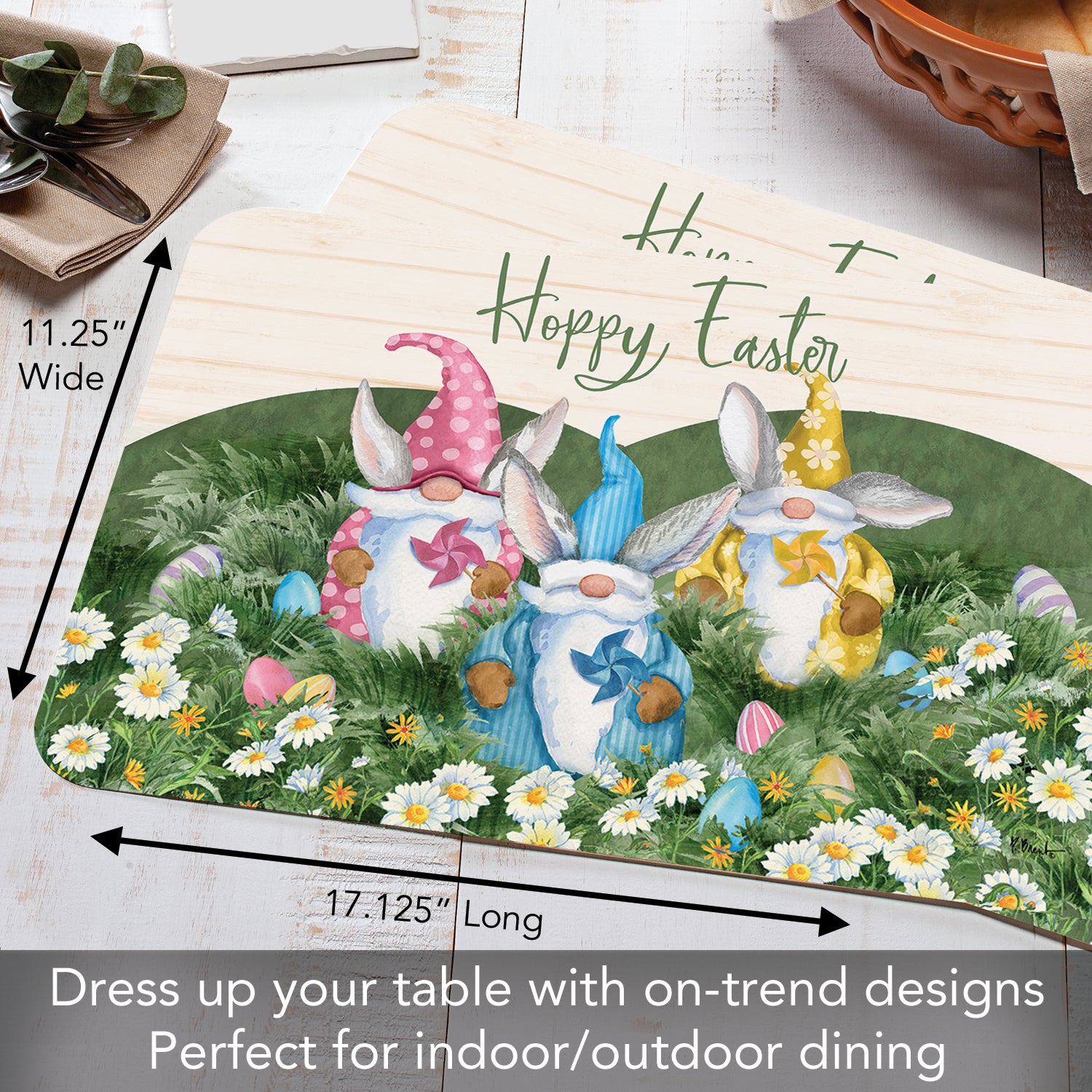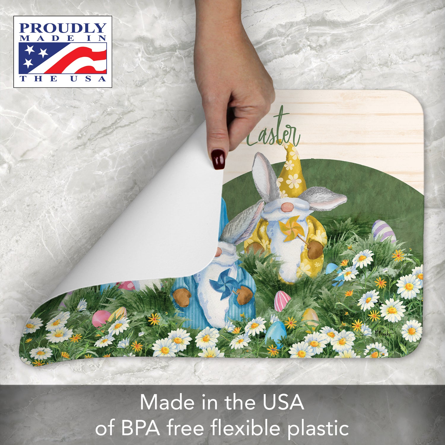CounterArt Hoppy Easter Gnomes 4 Pack Easy Care Flexible Plastic Placemat Made in The USA BPA Free, Easily Wipes Clean