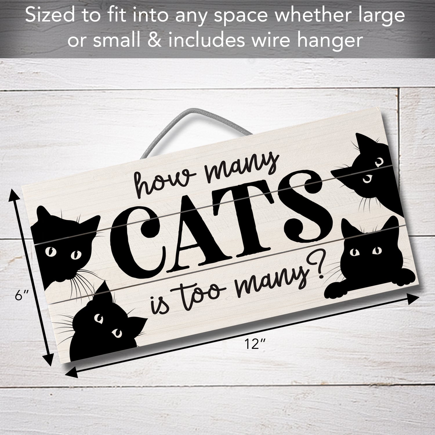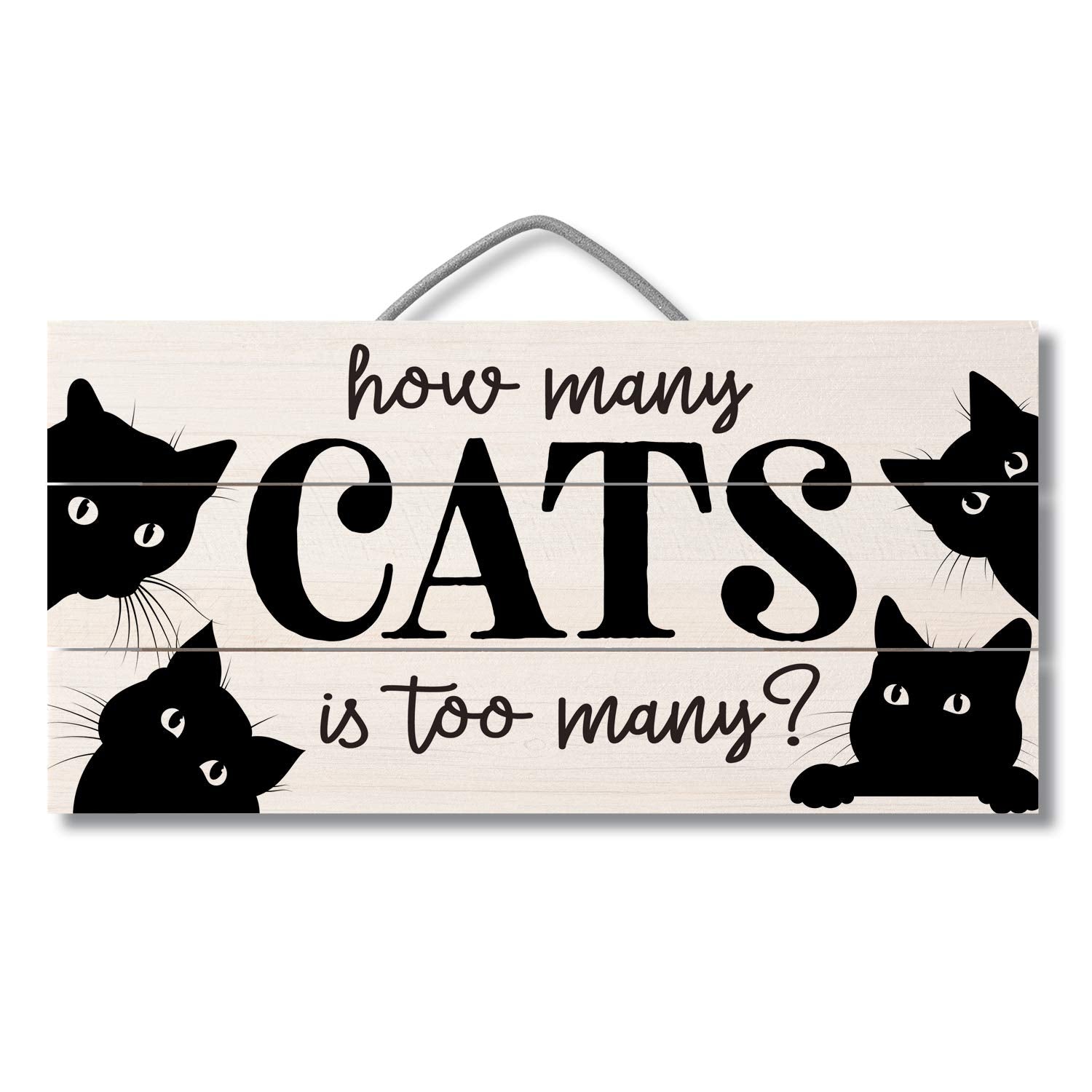 How Many Cats Decorative Slatted Pallet Wood Sign 12" x 6" Made in the USA Wire Hanger Doubles as an Easel