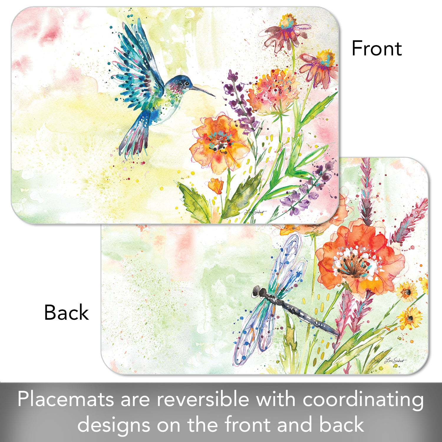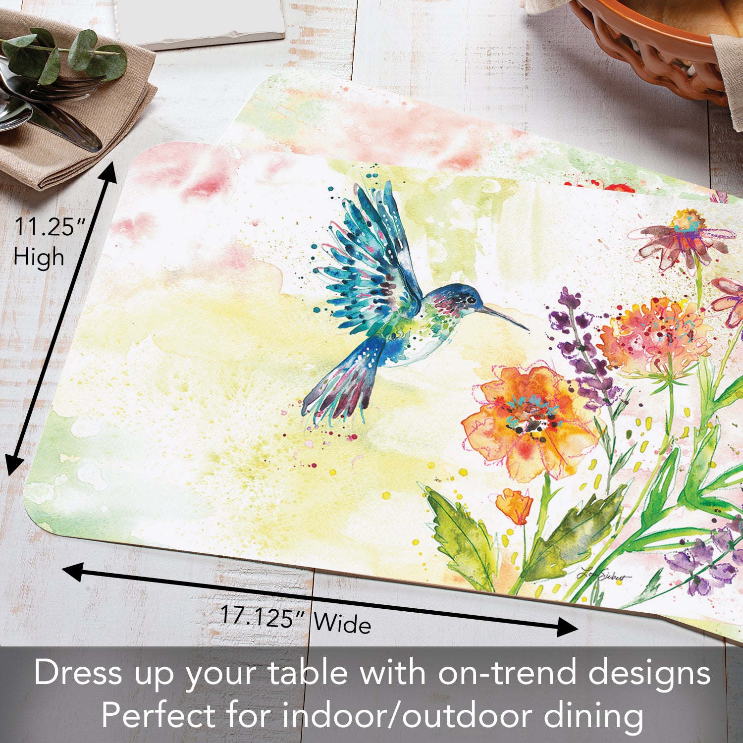 CounterArt Hummingbird Flight 4 Pack Reversible Easy Care Flexible Placemats Made in the USA