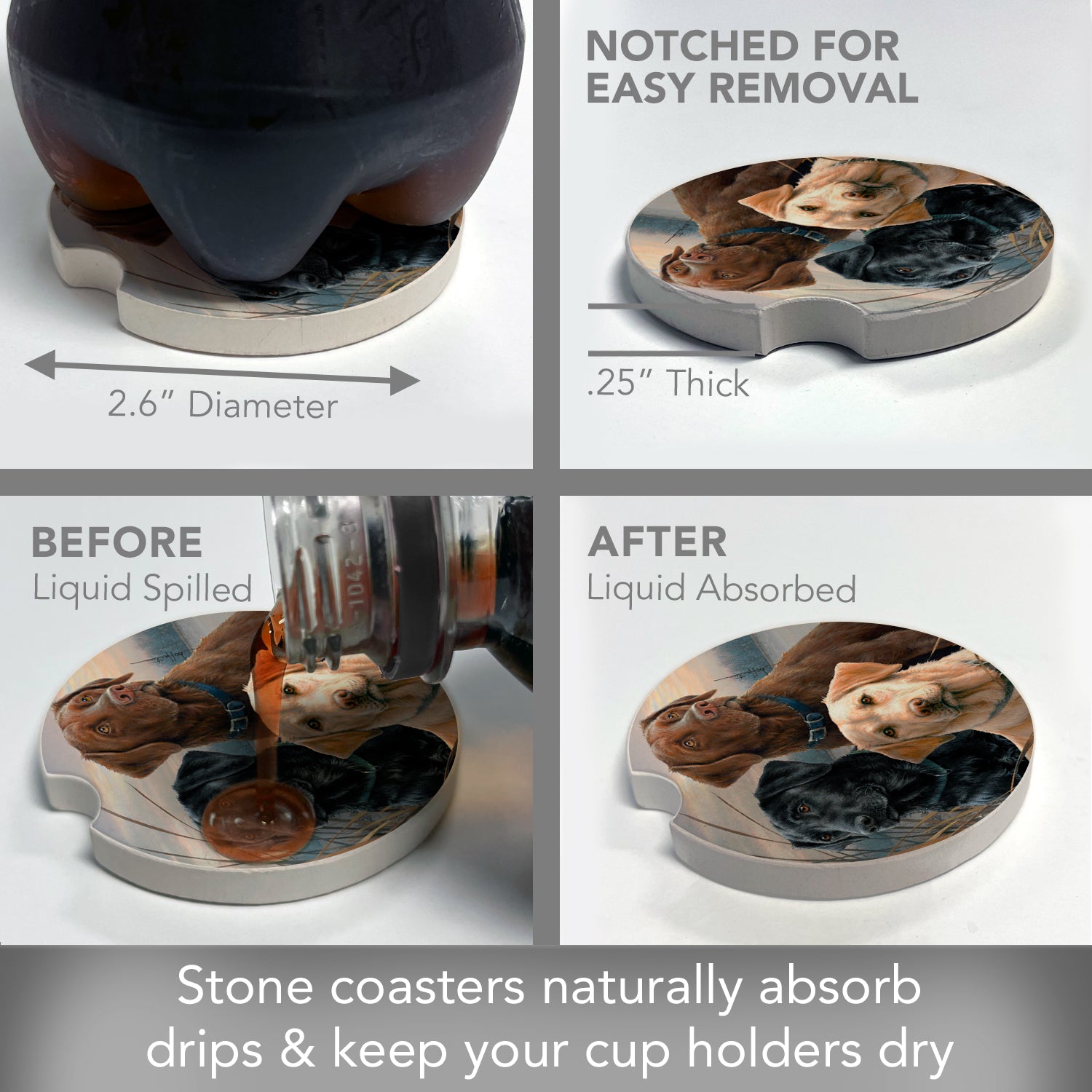 Hunting Dogs Single Absorbent Stone Car Coaster 2.6” Diameter Manufactured in the USA