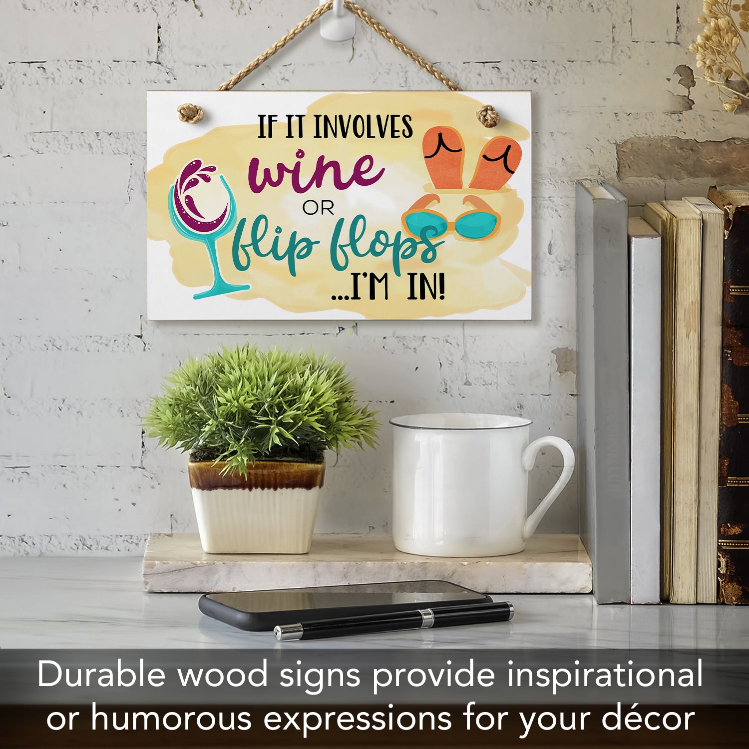 If it Involves Wine or Flip Flops I'm In Humorous Hanging Wood Wall Sign 9.5” x 5.75” Made in the USA