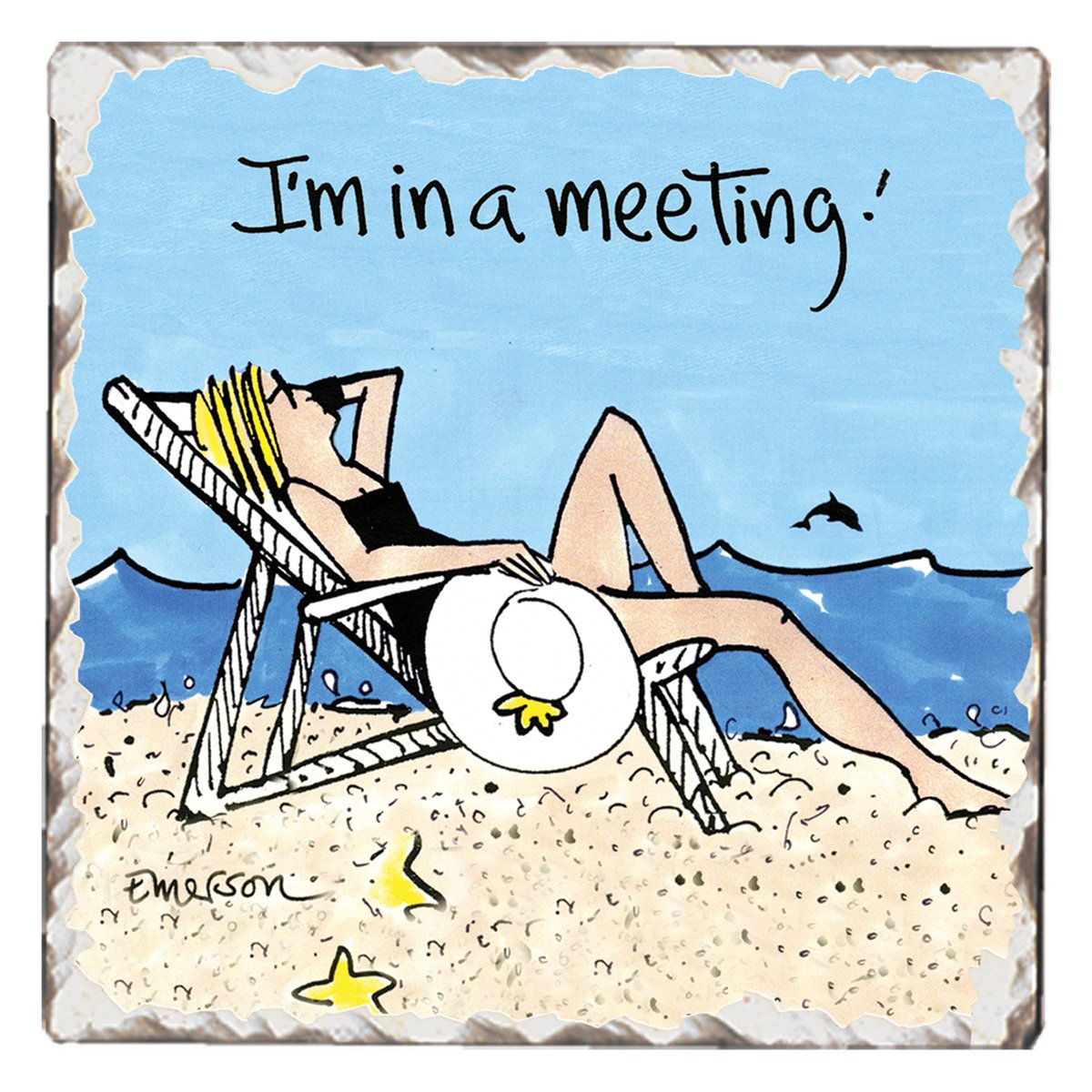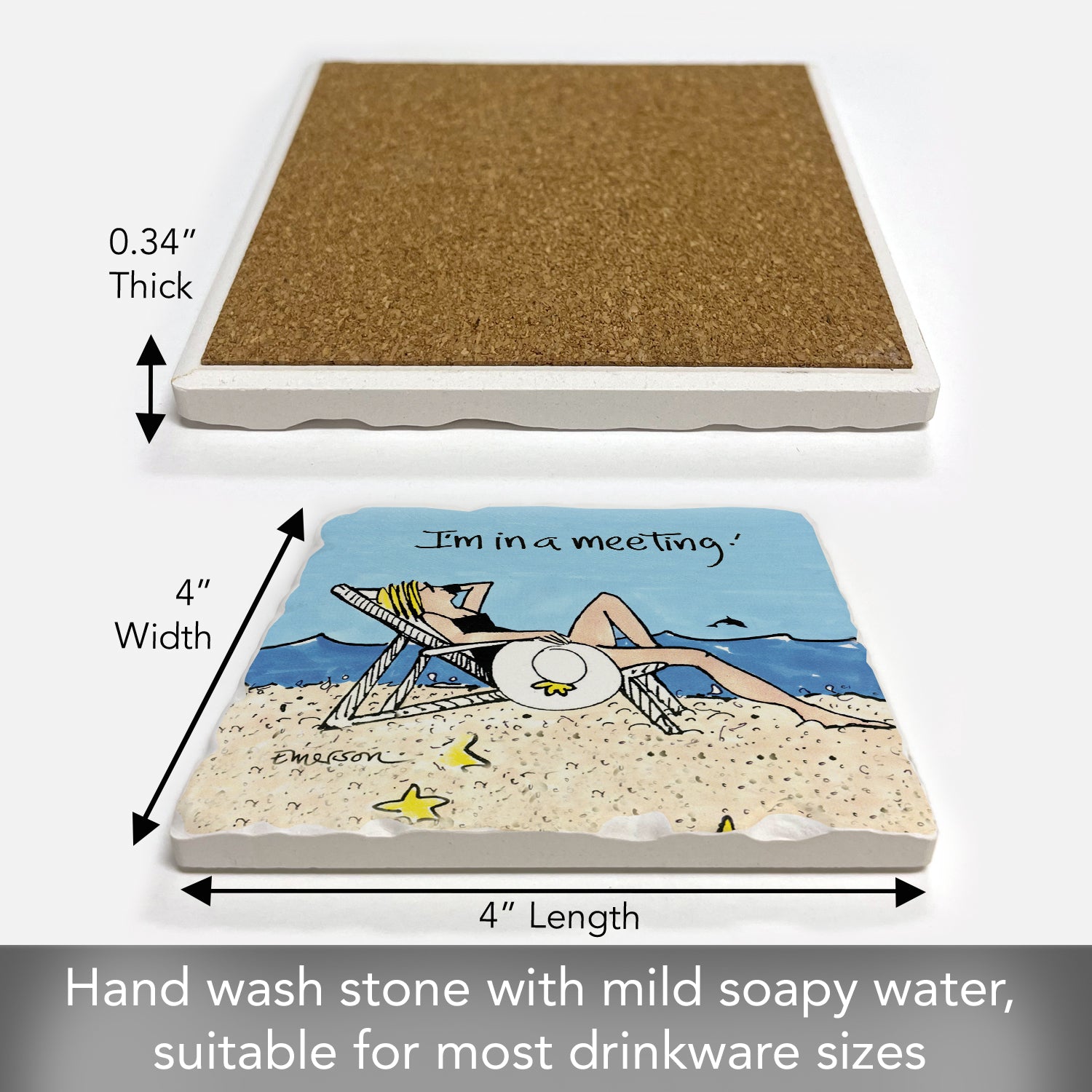 Thirstystone In a Meeting Single Tumbled Tile Stone Coaster with Protective Cork Backing Manufactured in The USA 4" Square, Colorful, Artistiic, Easily Wipes Clean