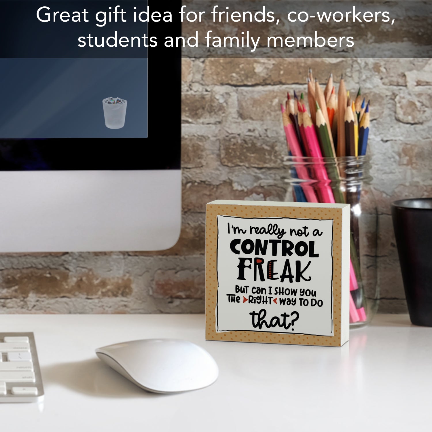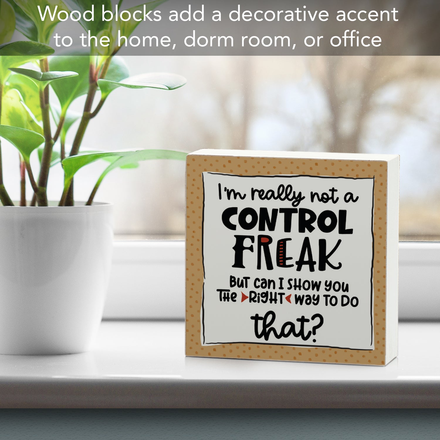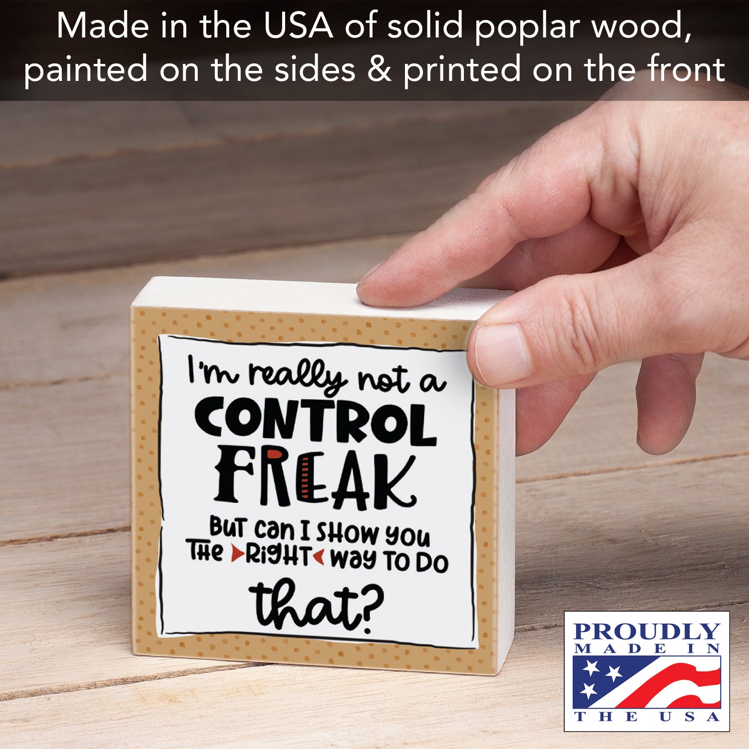 I'm Really Not A Control Freak Artistic Freestanding Solid Wood Block Sign Made in the USA 3.75” Square