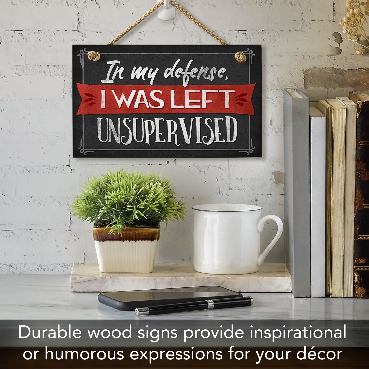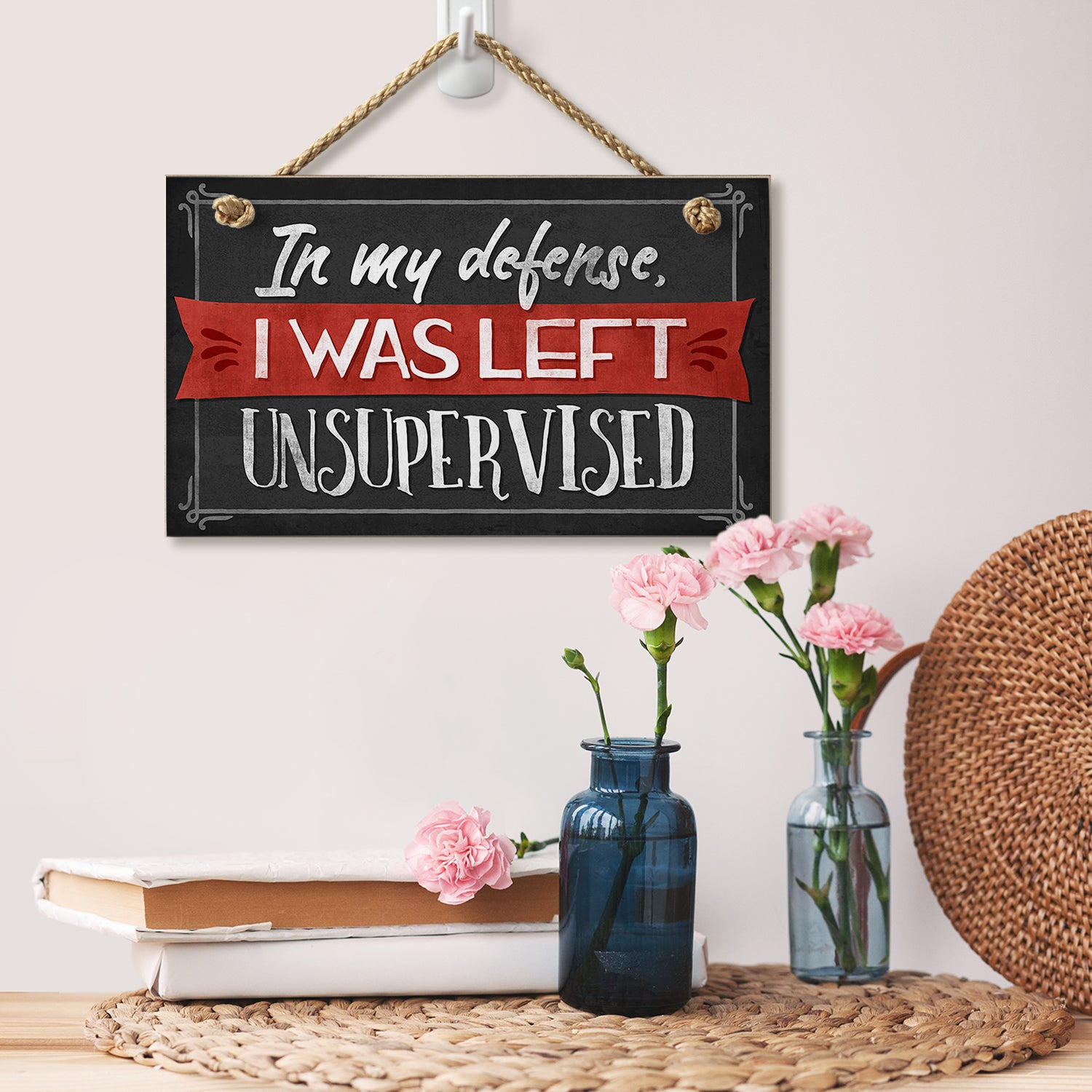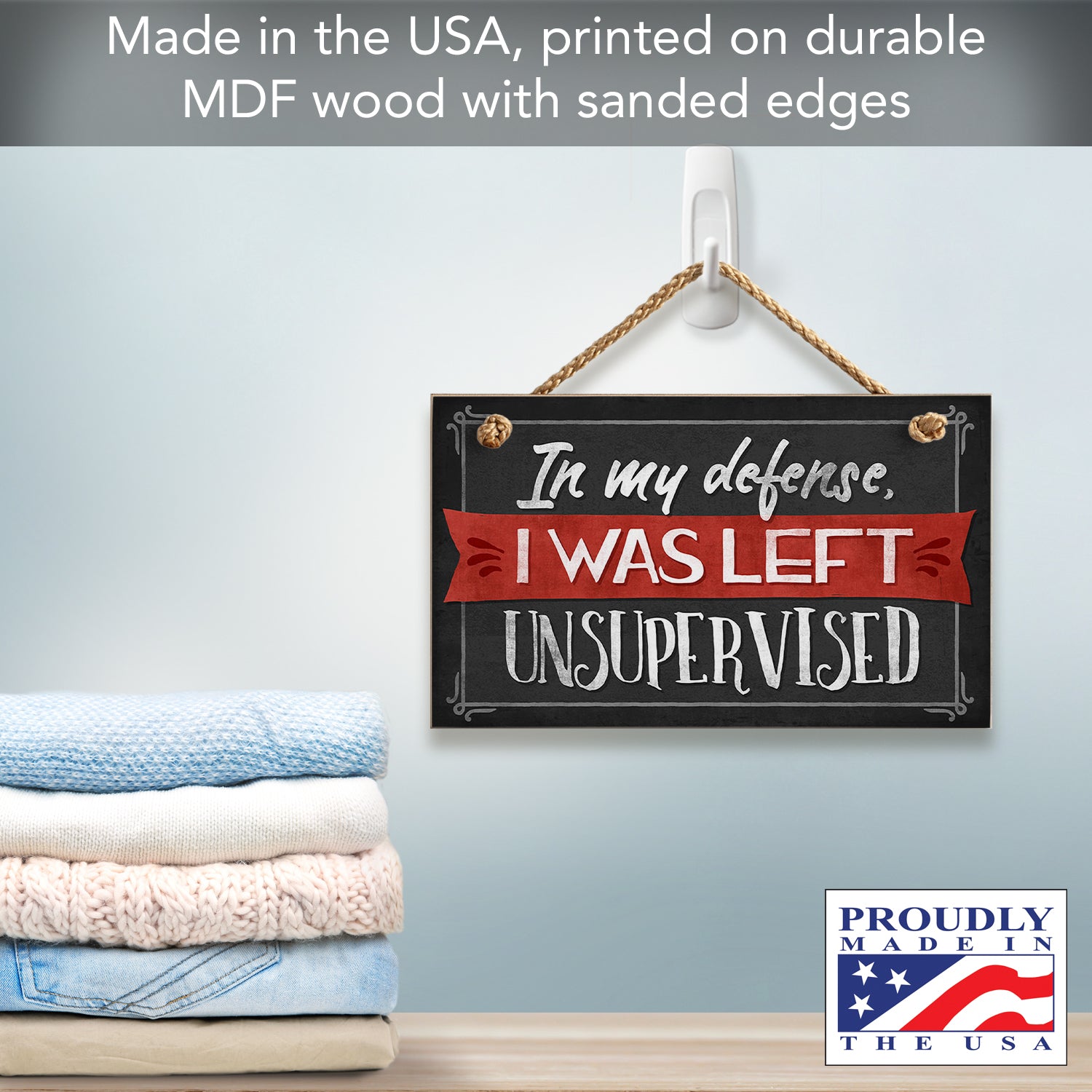 Unsupervised Decorative Hanging Wood Wall Sign 9.5” x 5.75” Made in the USA