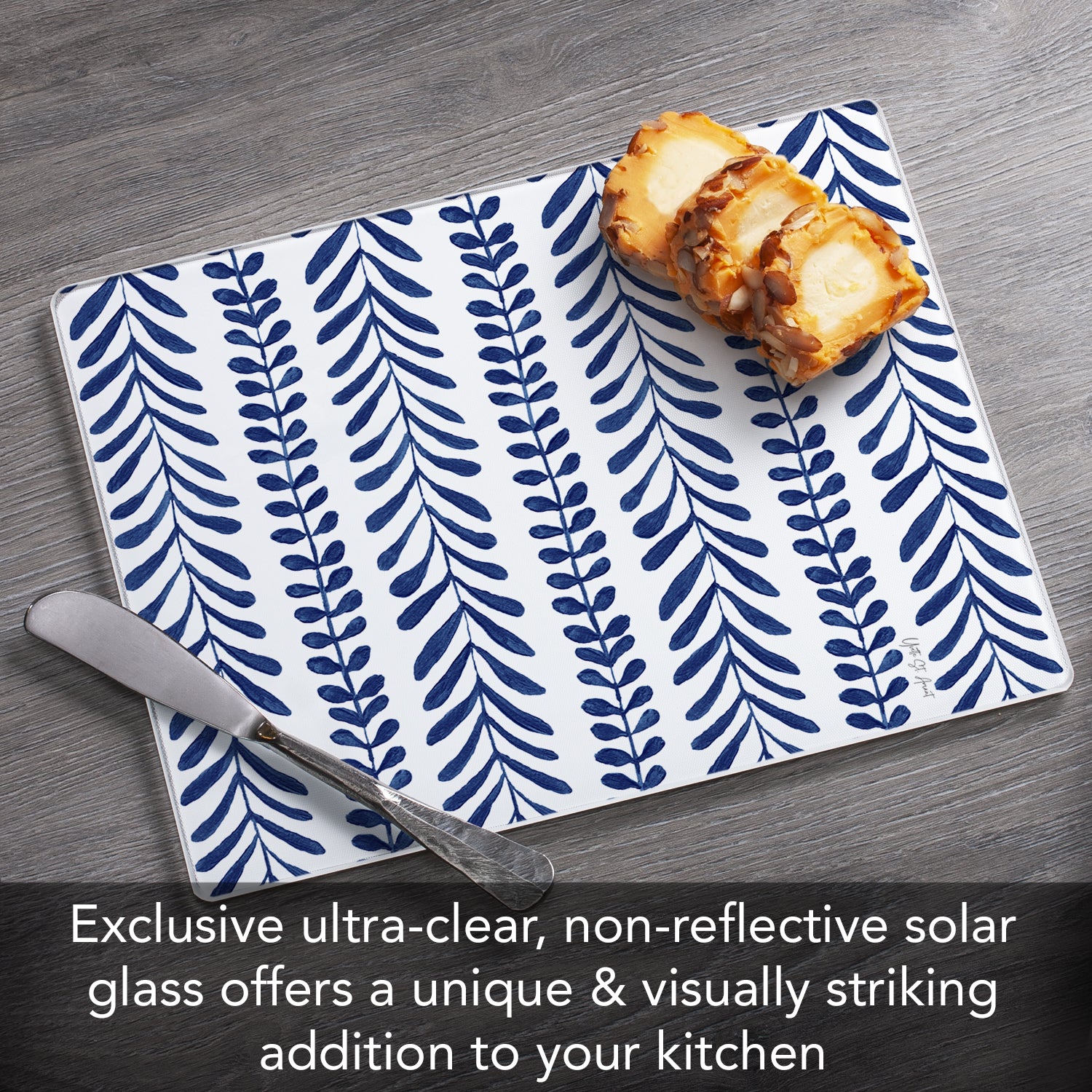 CounterArt Indigo Seaweed 3mm Tempered Glass Cutting Board 10” x 8” Manufactured in the USA