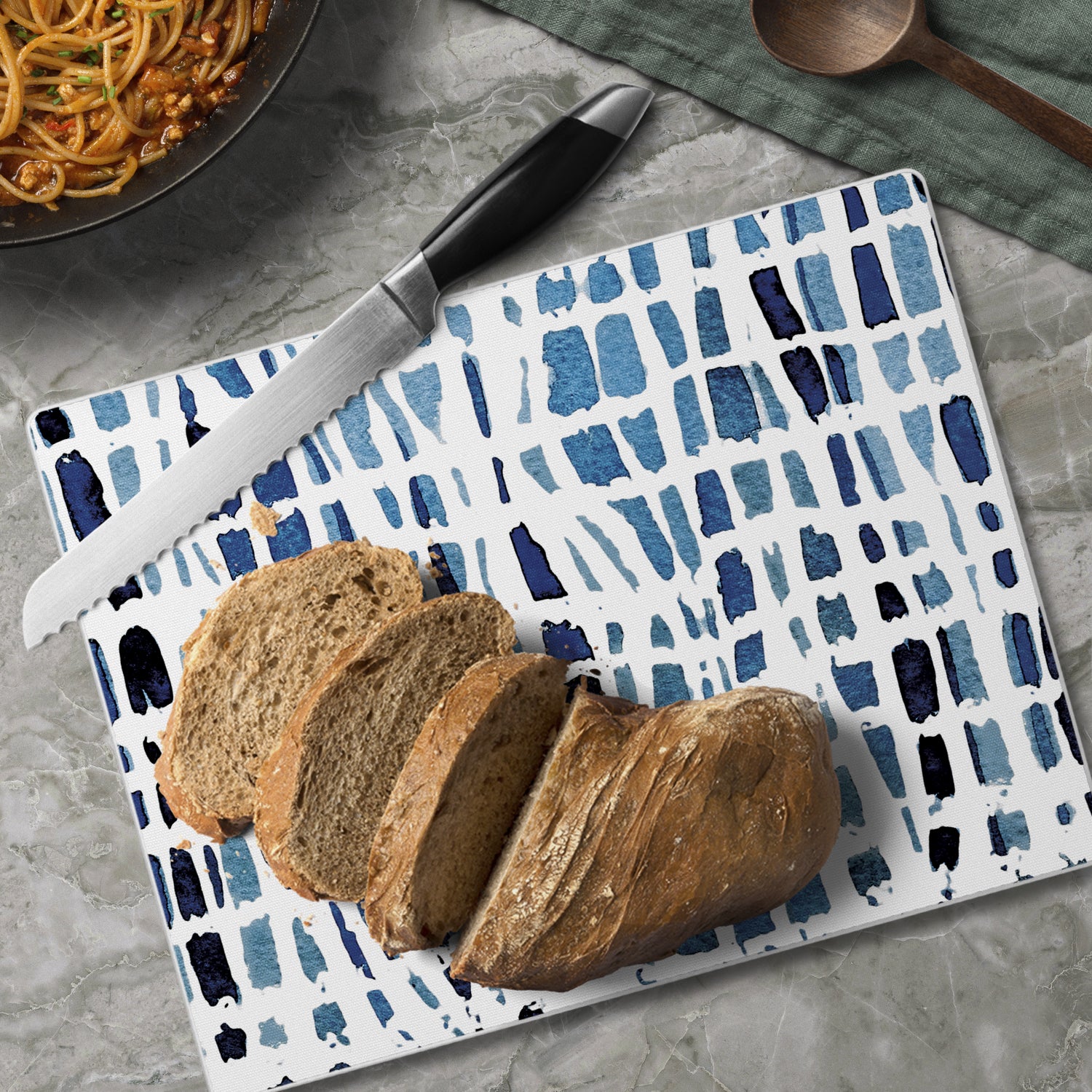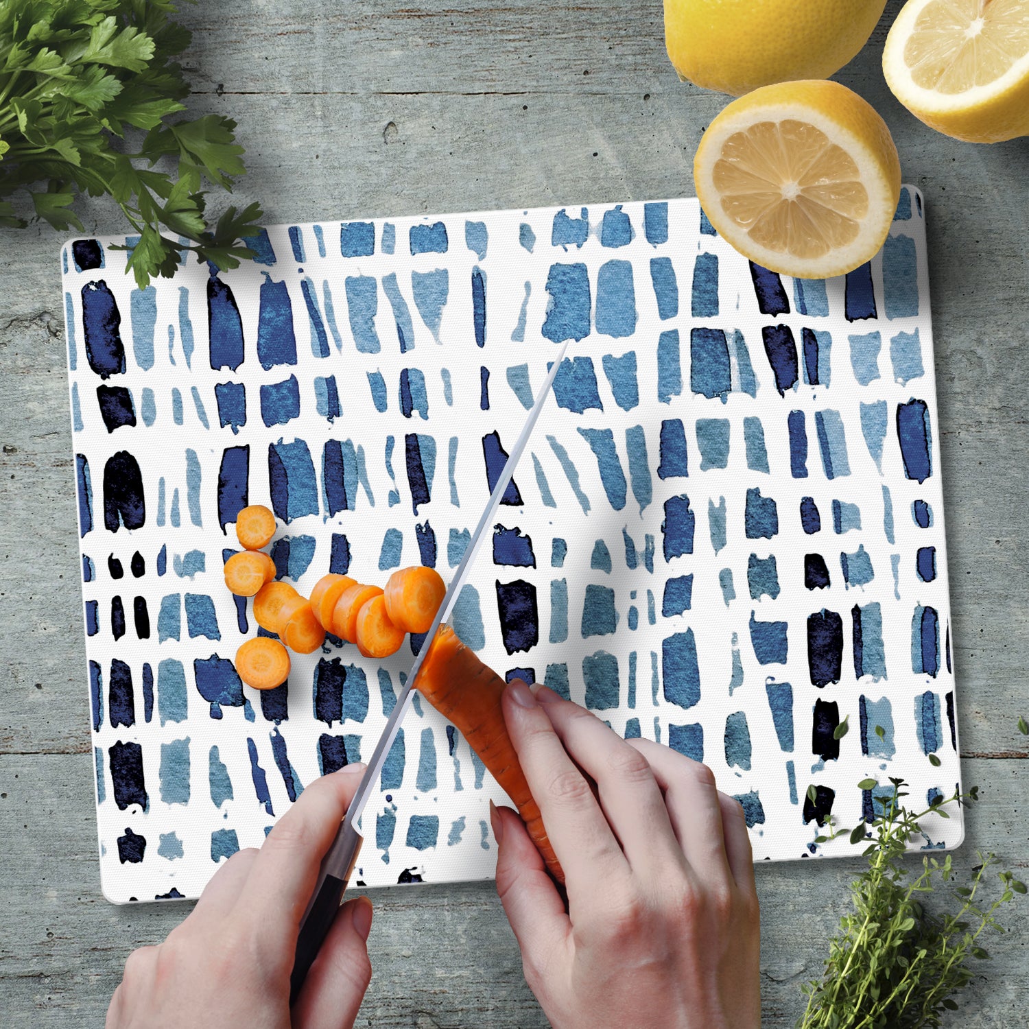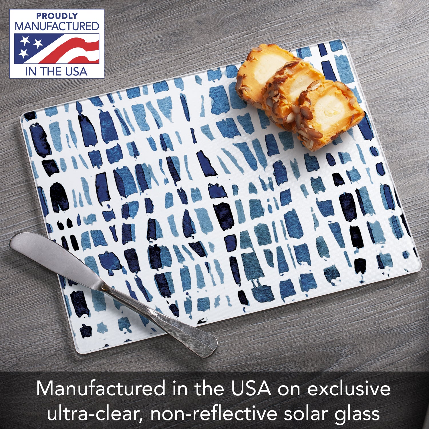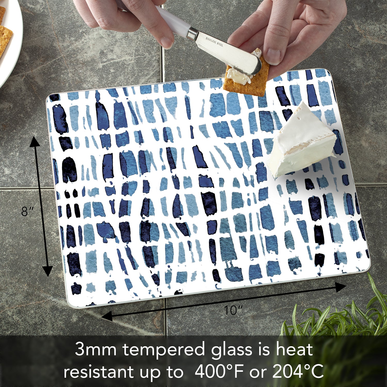 CounterArt Indigo Wavy Lines 3mm Tempered Glass Cutting Board 10” x 8” Manufactured in the USA