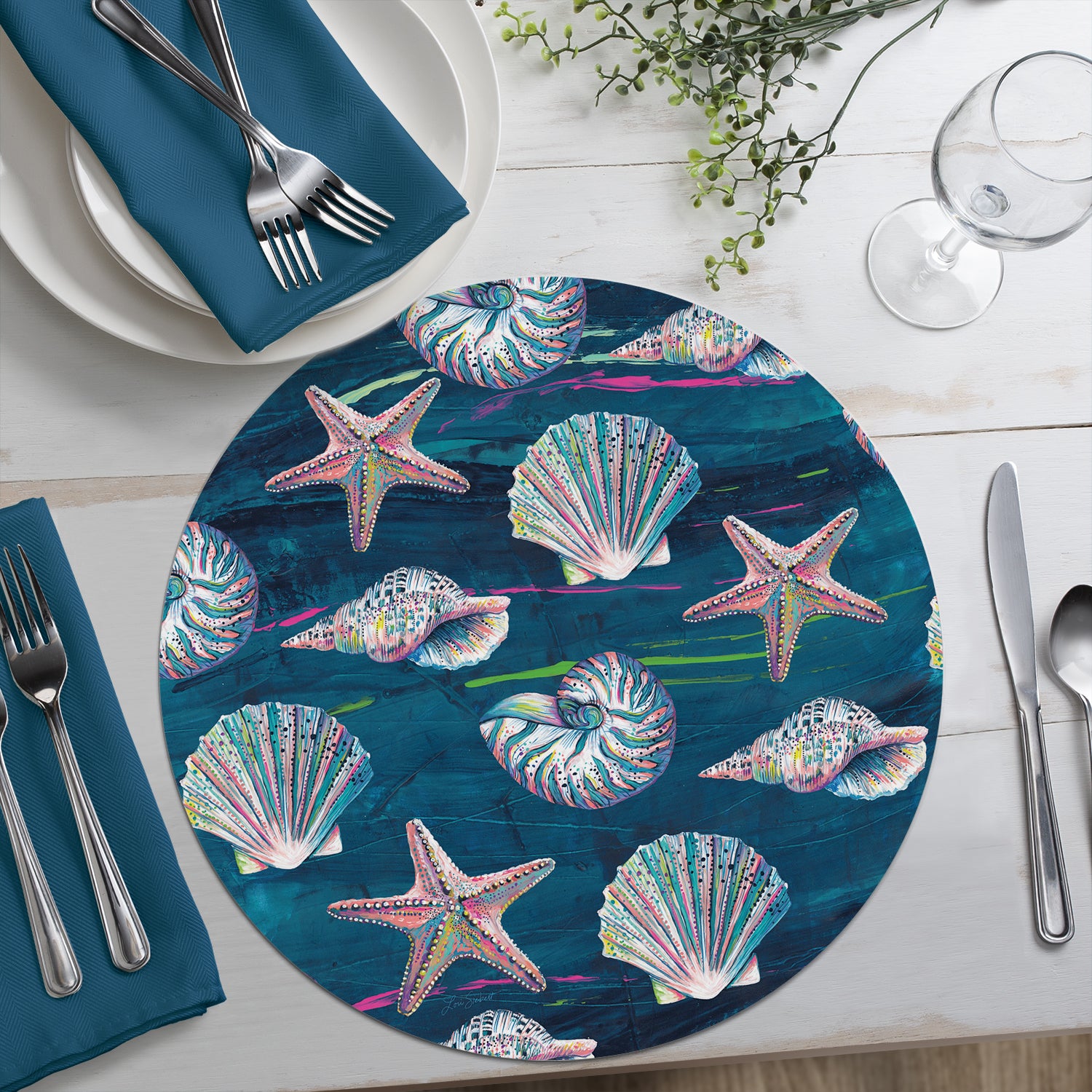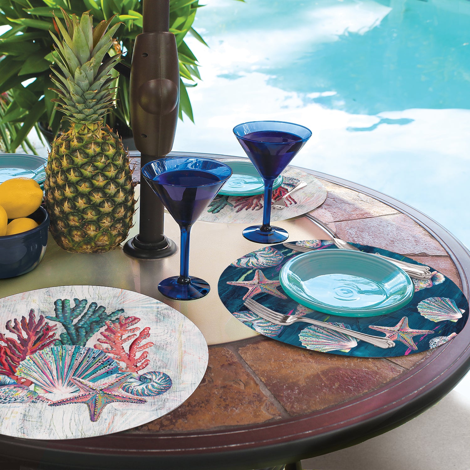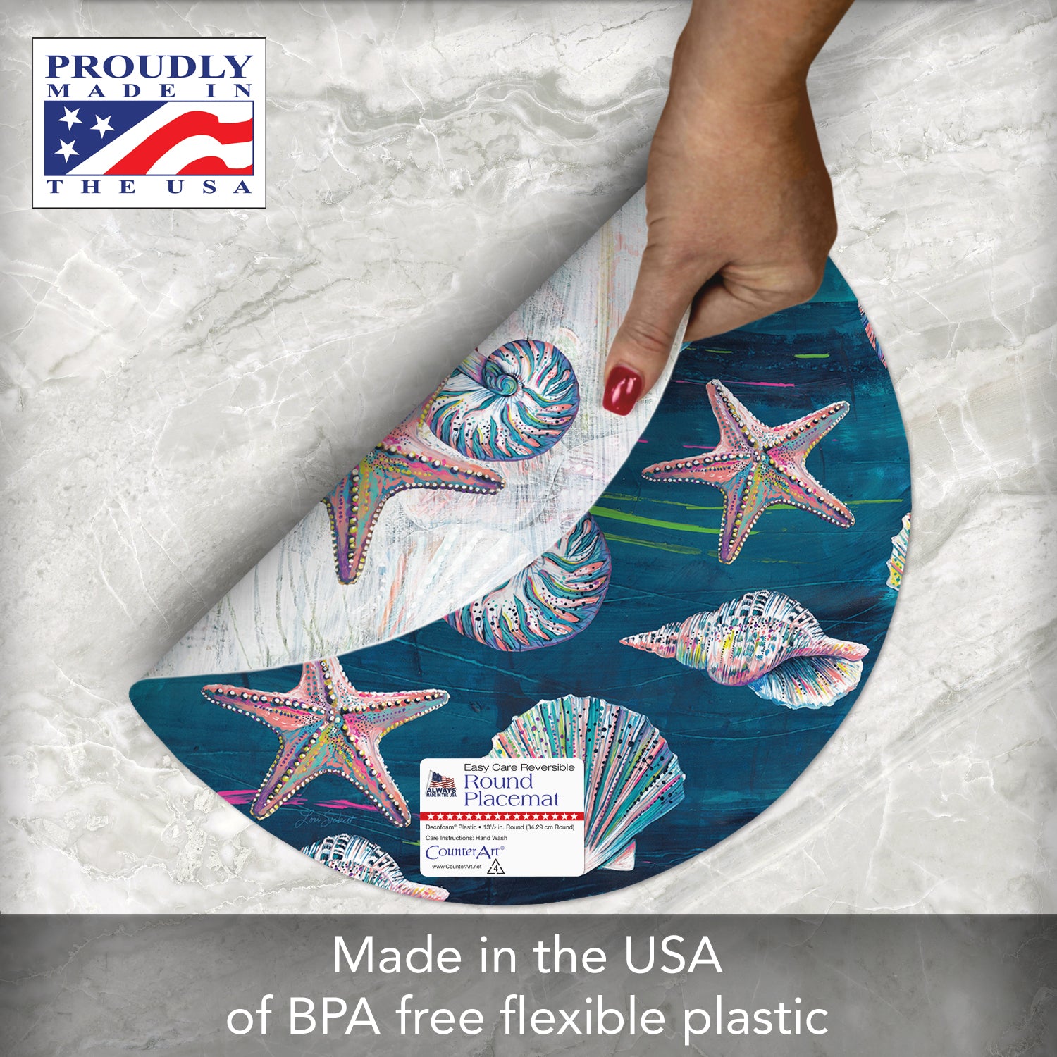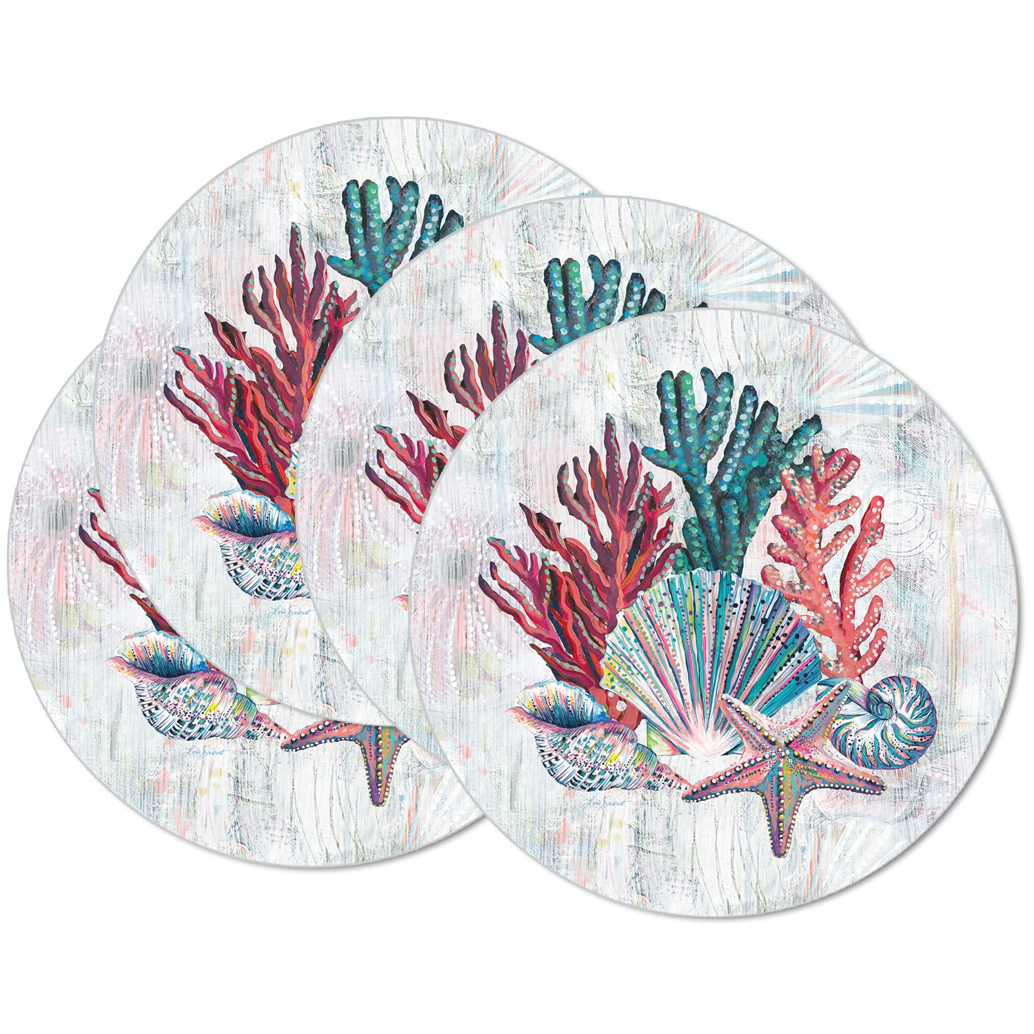 CounterArt Jewels of the Sea 4 Pack Round Reversible Easy Care Flexible Placemats Made in the USA