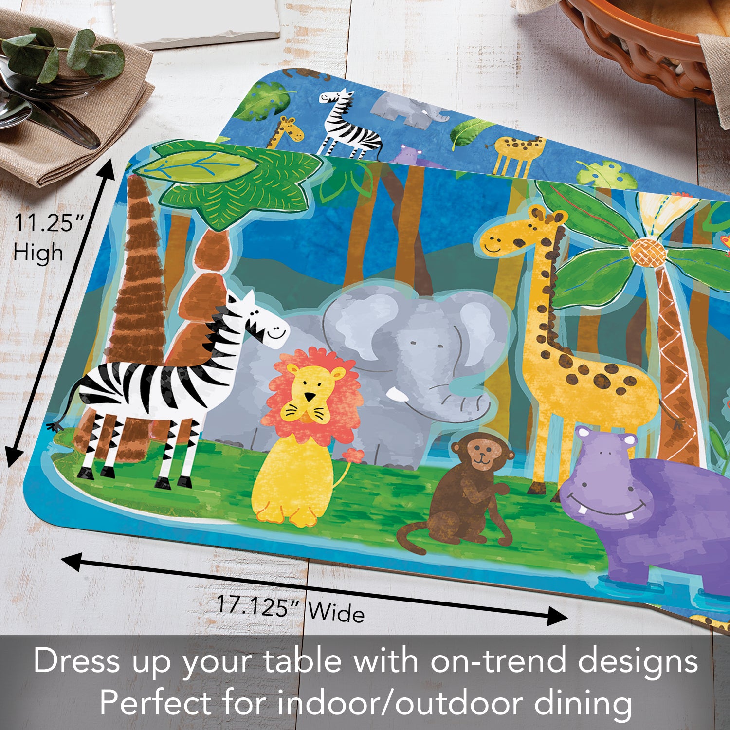 CounterArt Kids Jungle Friends 4 Pack Reversible Easy Care Flexible Placemats Made in the USA