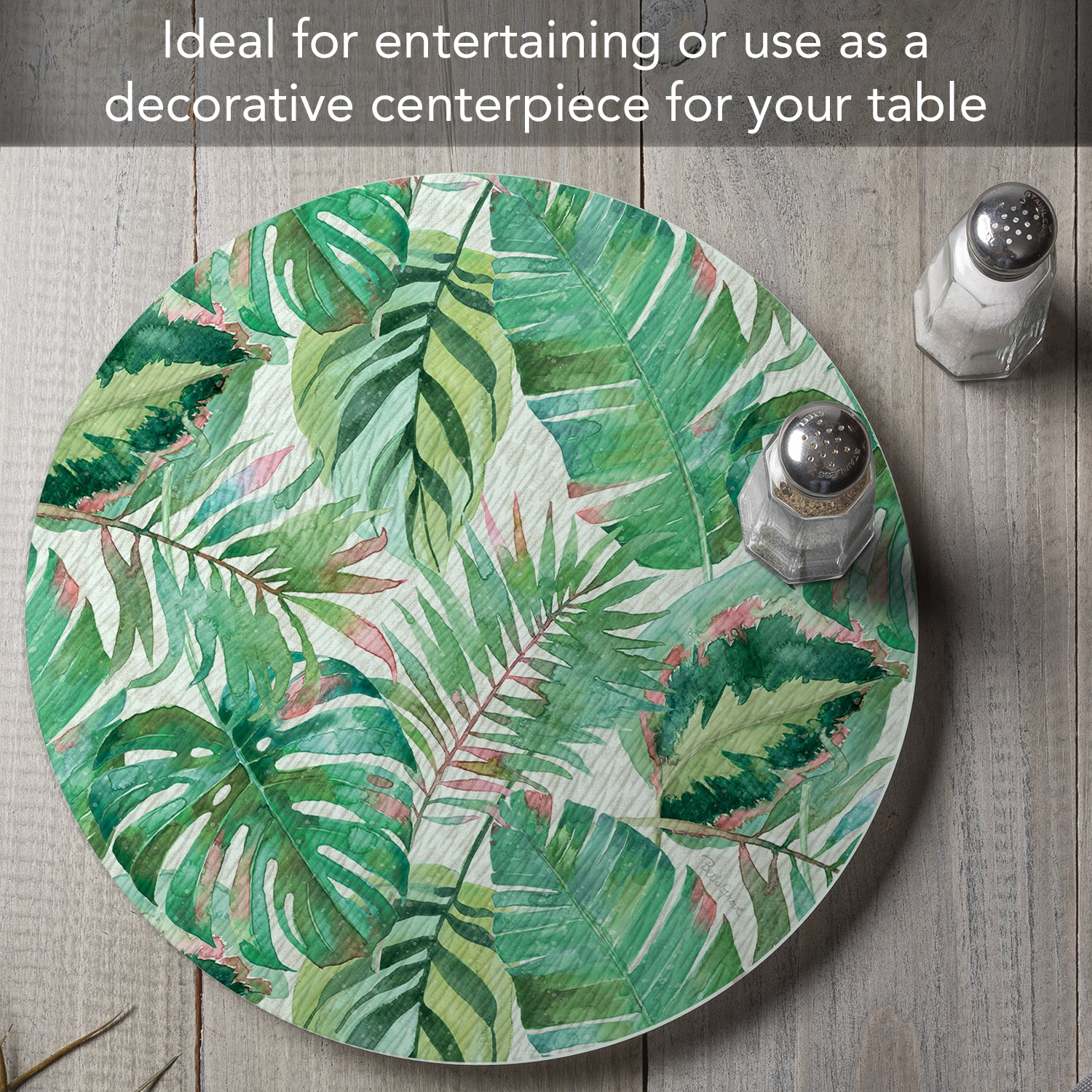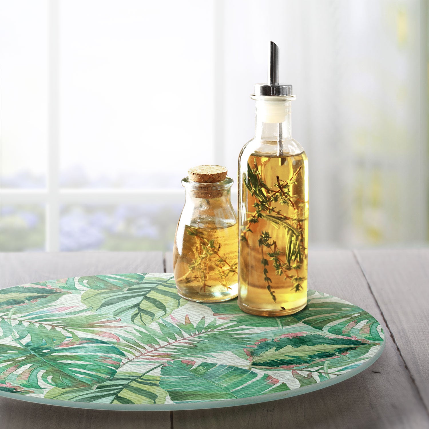 CounterArt Jungle Leaves 4mm Tempered Glass Lazy Susan Turntable 13" Round