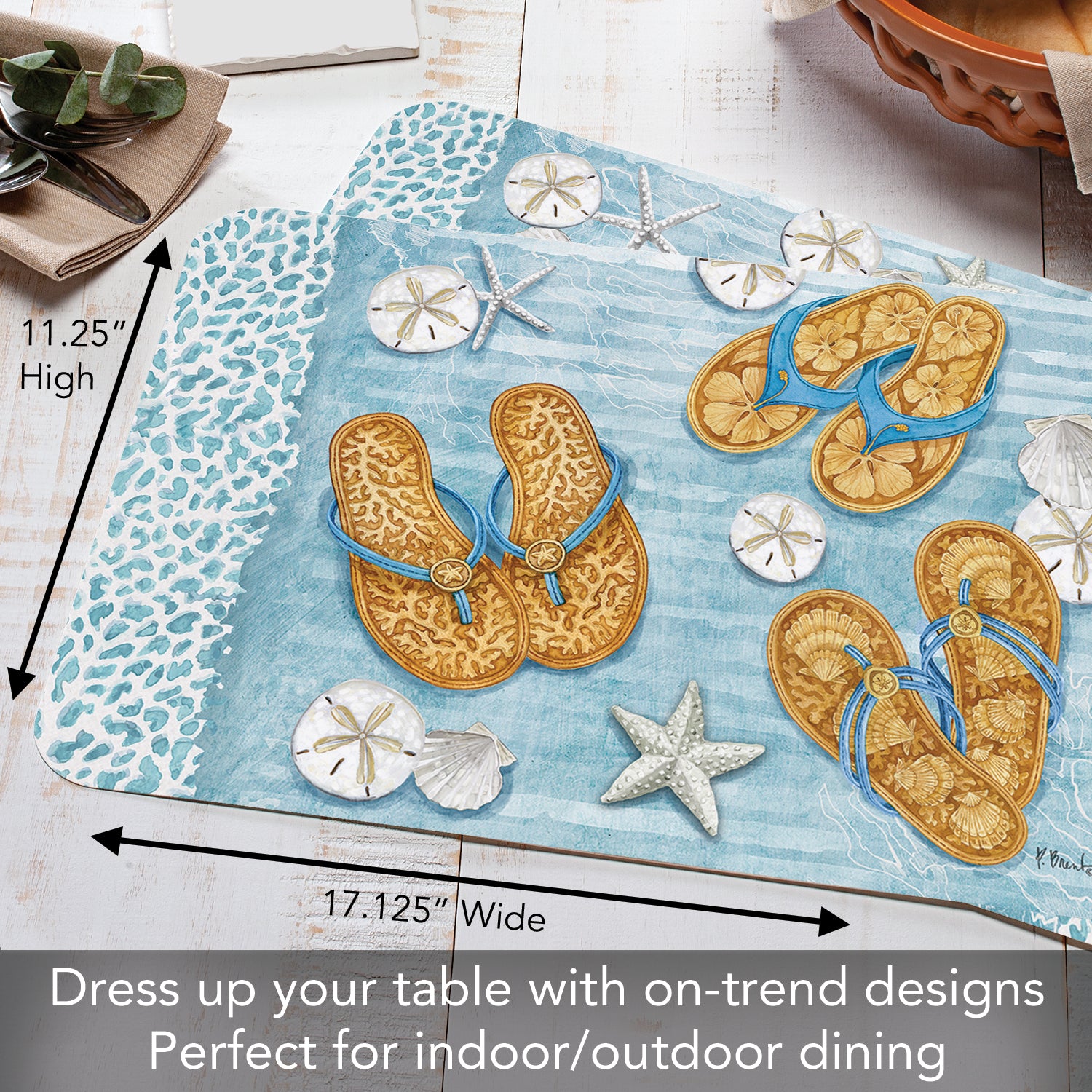 CounterArt Key Largo Sandals 4 Pack Reversible Easy Care Flexible Placemats Made in the USA