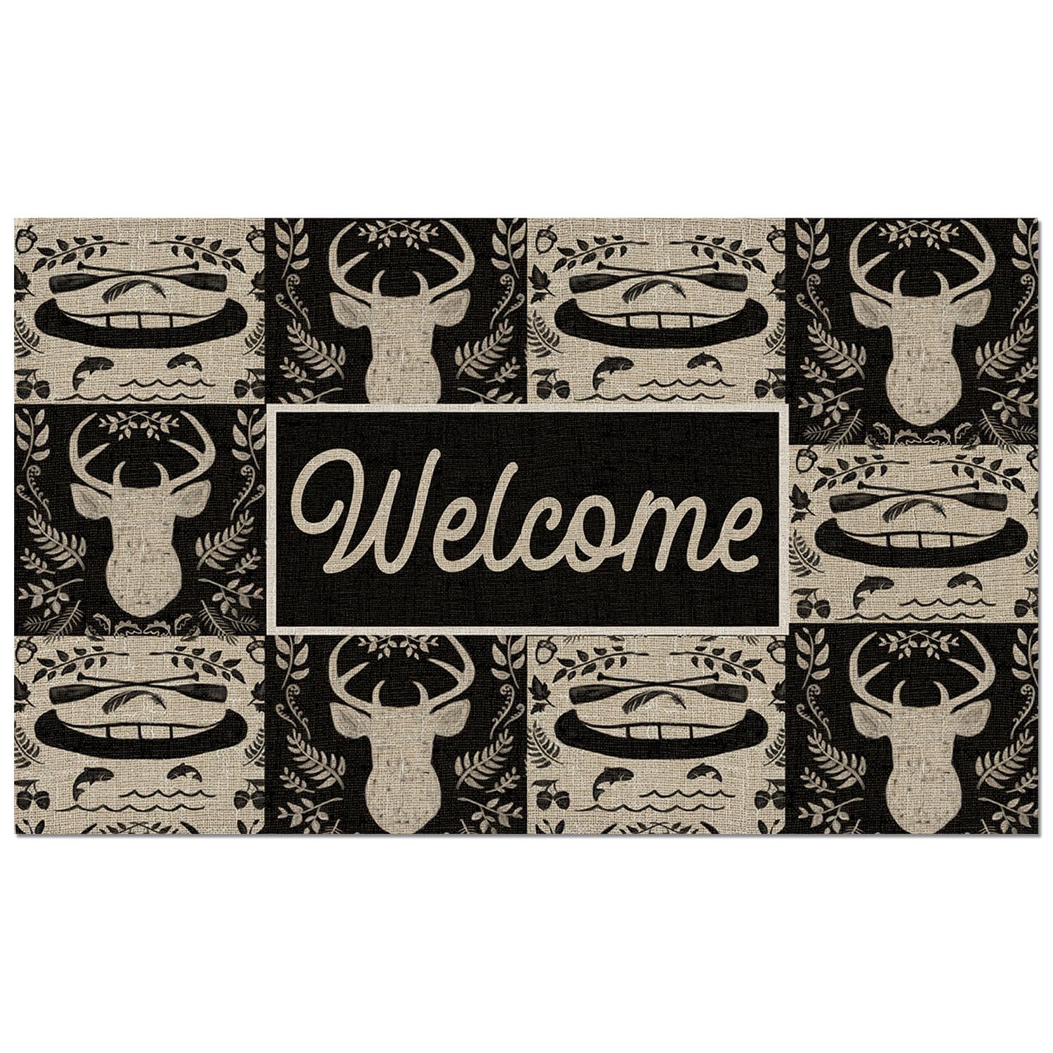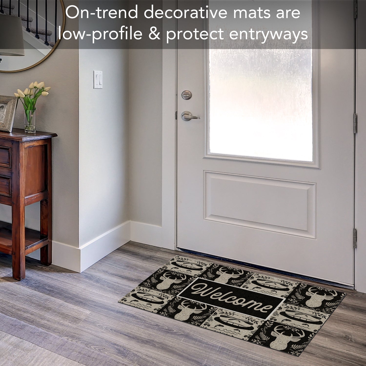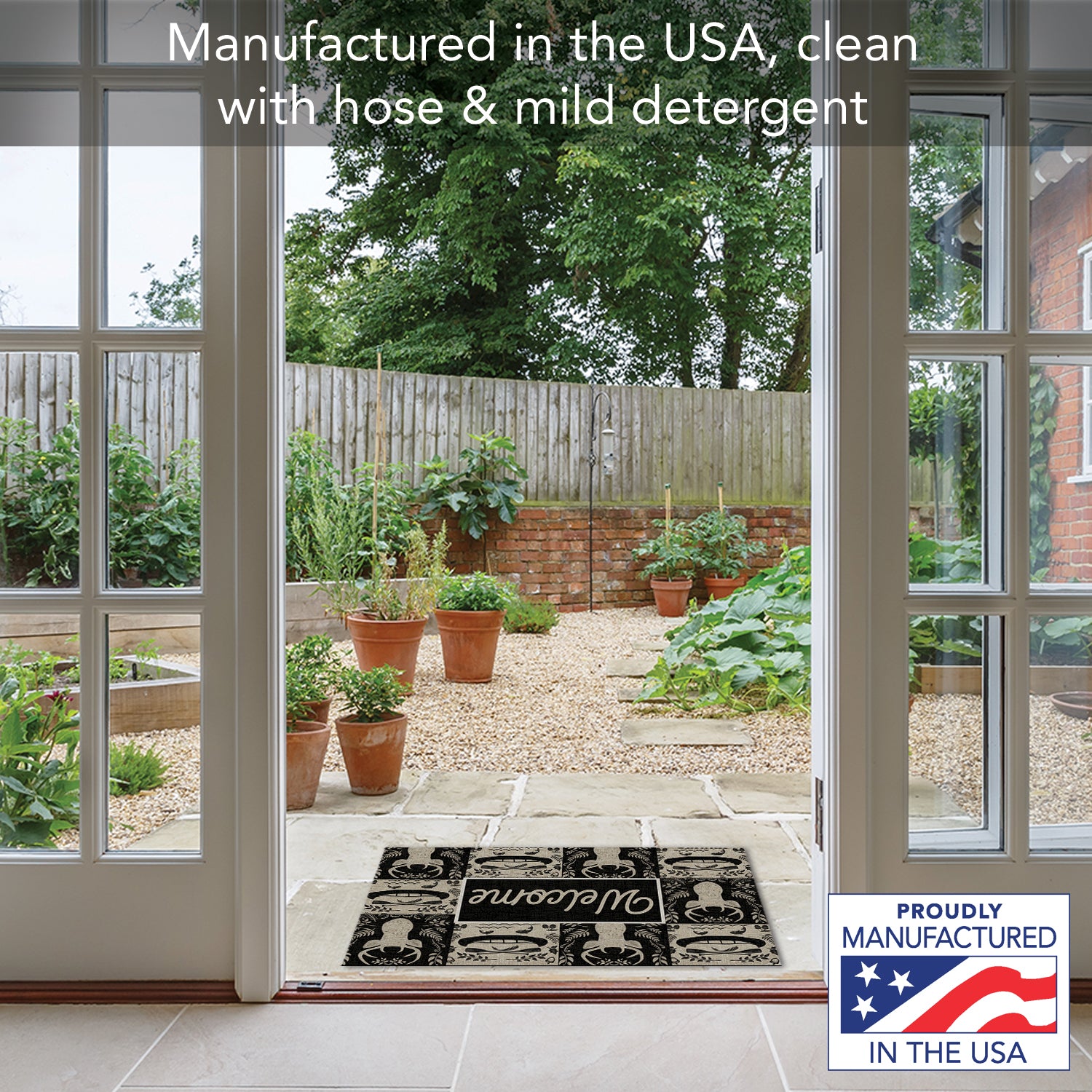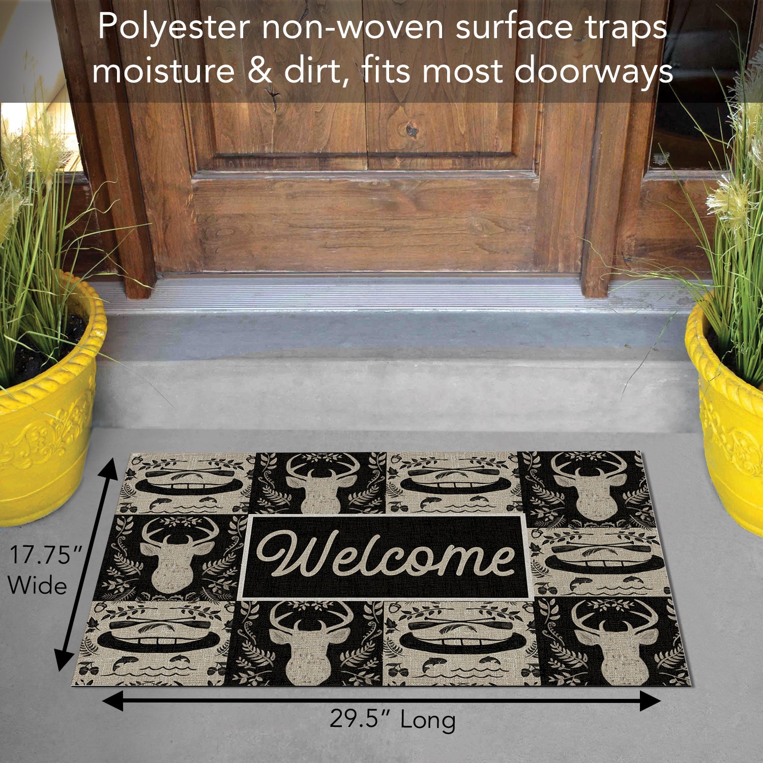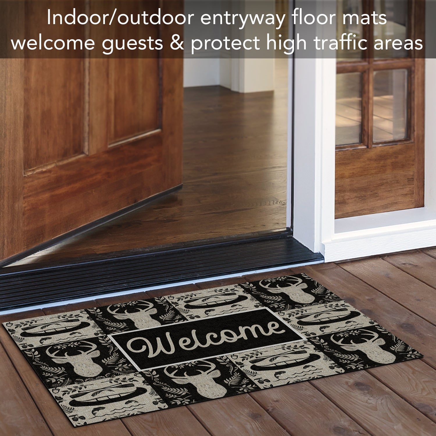 INDOOR/OUTDOOR- Entryway Floor Mat is perfect to welcome guests at the front door as well as protecting high traffic areas inside your home. Constructed of a non-woven polyester blend and rubber backing. Material holds color and vibrancy longer than usual mats.